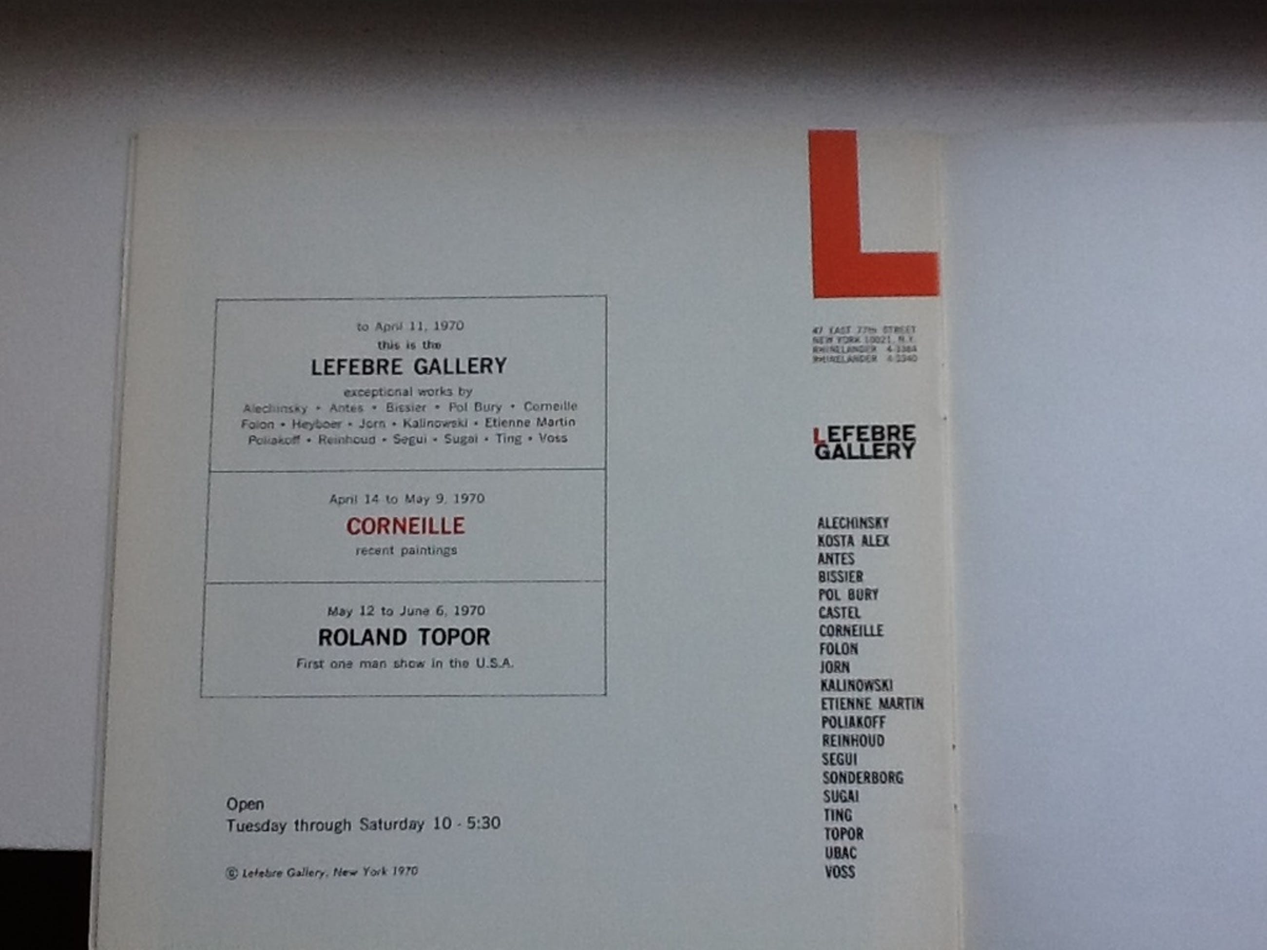 Dit is een complete catalogus van de expositie die CORNEILLE in de LEFEBRE GALLERY in NEW YORK hield in 1970.