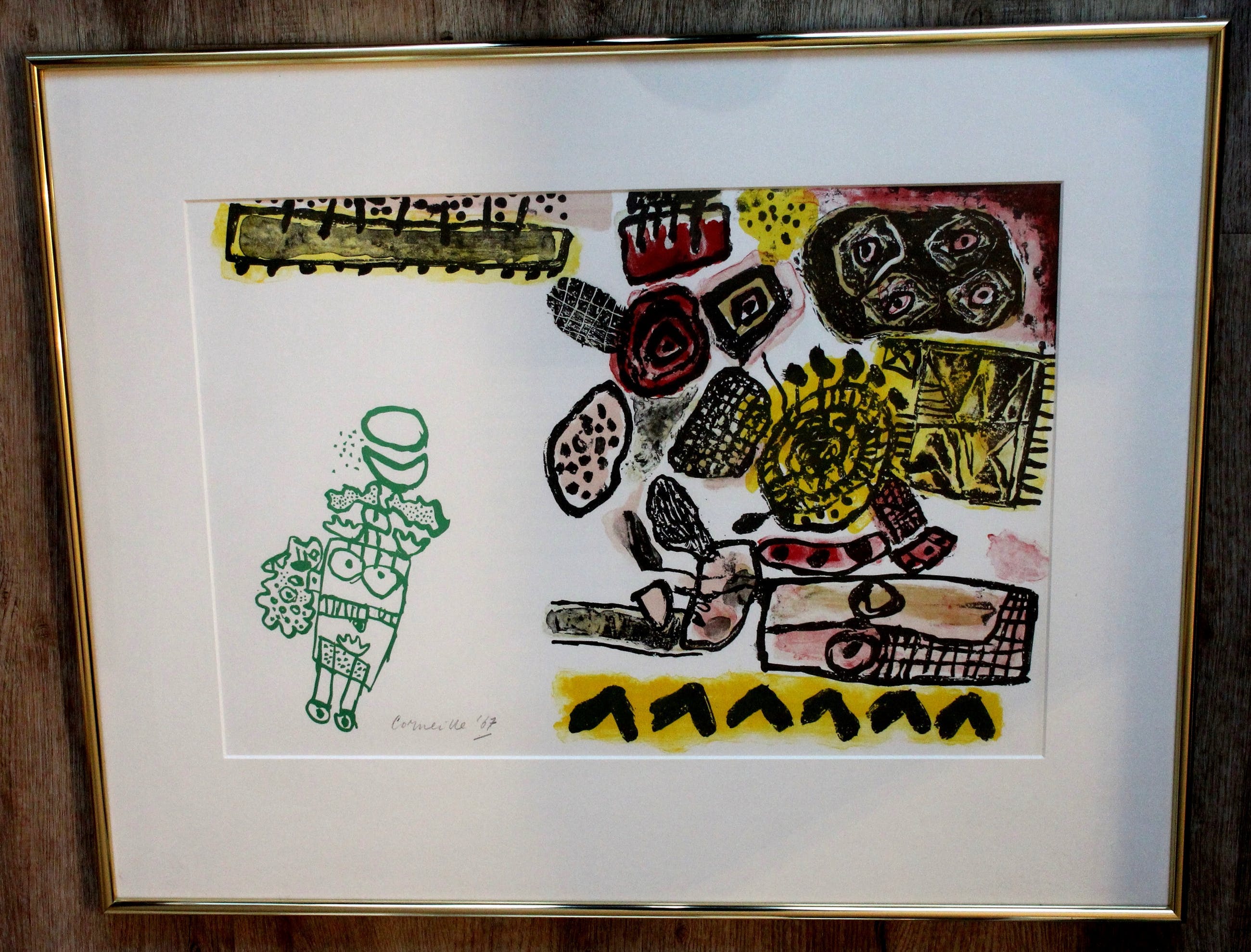 Litho van Corneille. Titel: Femme de Nuit et D'Aube . In 1967 bracht Corneille samen met Max - Pol Fouchet een map uit met lithografieën en gedichten/poezie uit. Die map heet: "Femme de Nuit et D'Aube". De editeur was : Georges Fall.