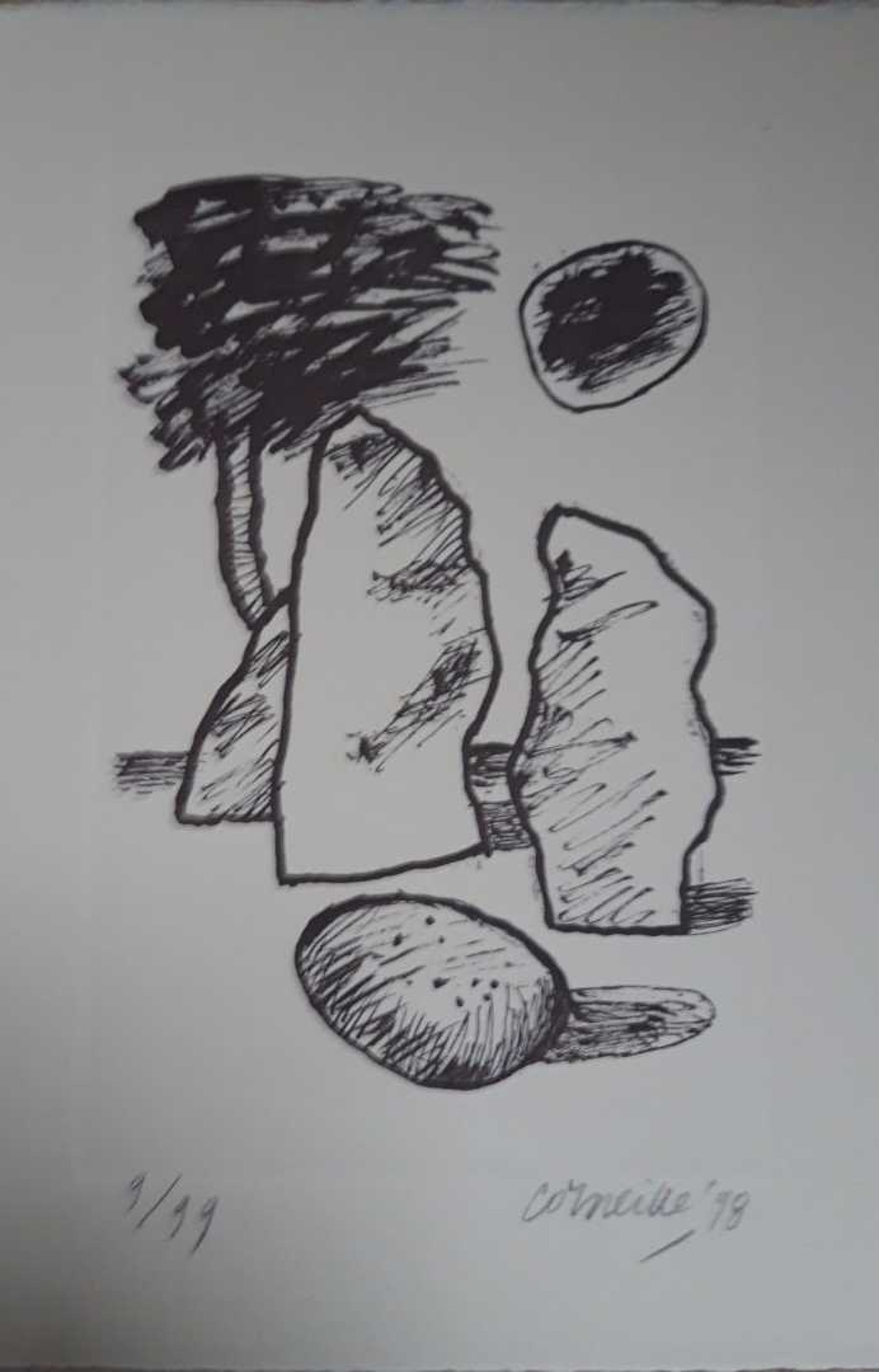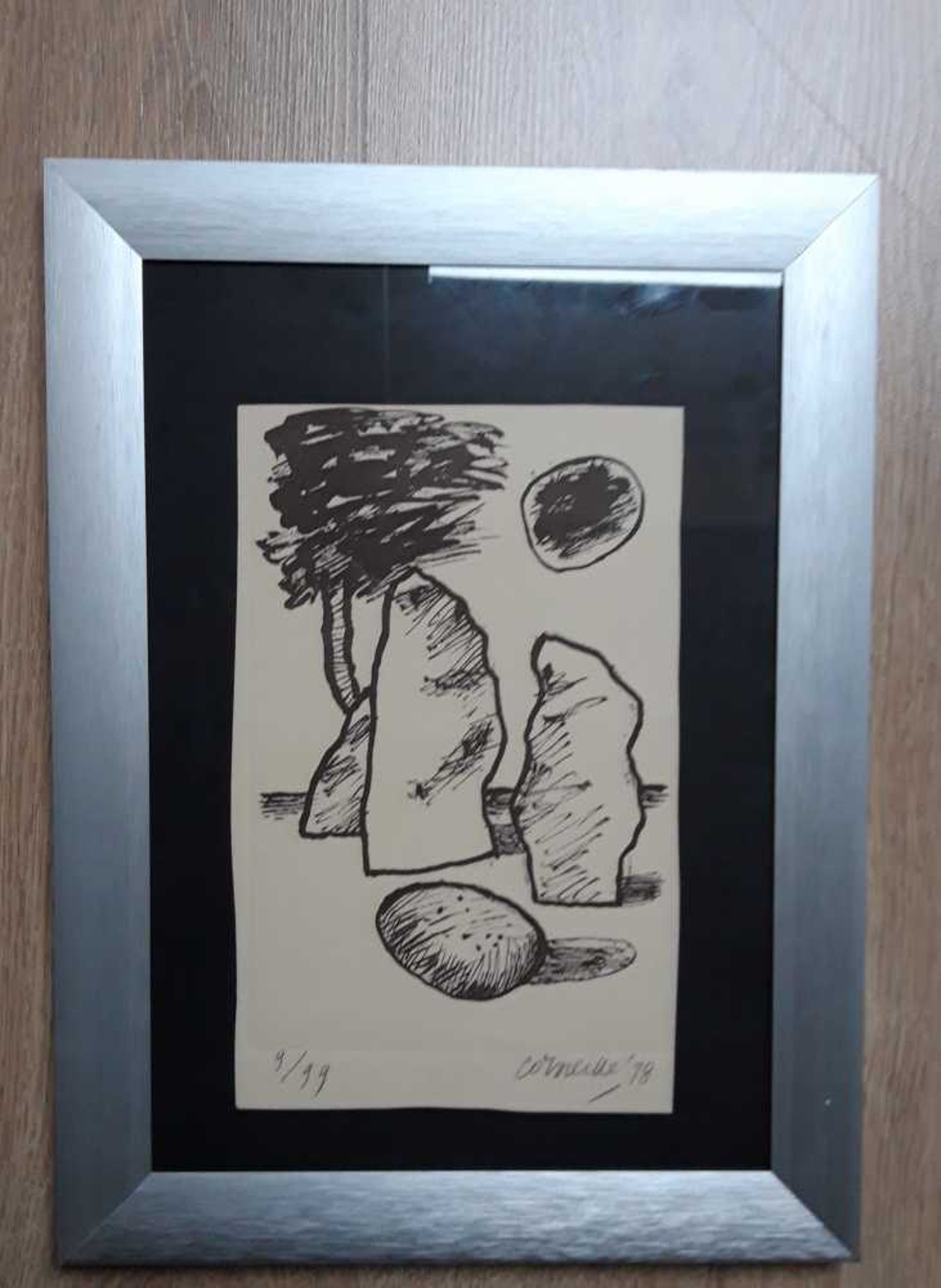 Litho van Corneille Handgesigneerd en genummerd 9/ 99 Gedateerd '98 (1998) Litho bevat aluminium lijst die op de foto is weergegeven