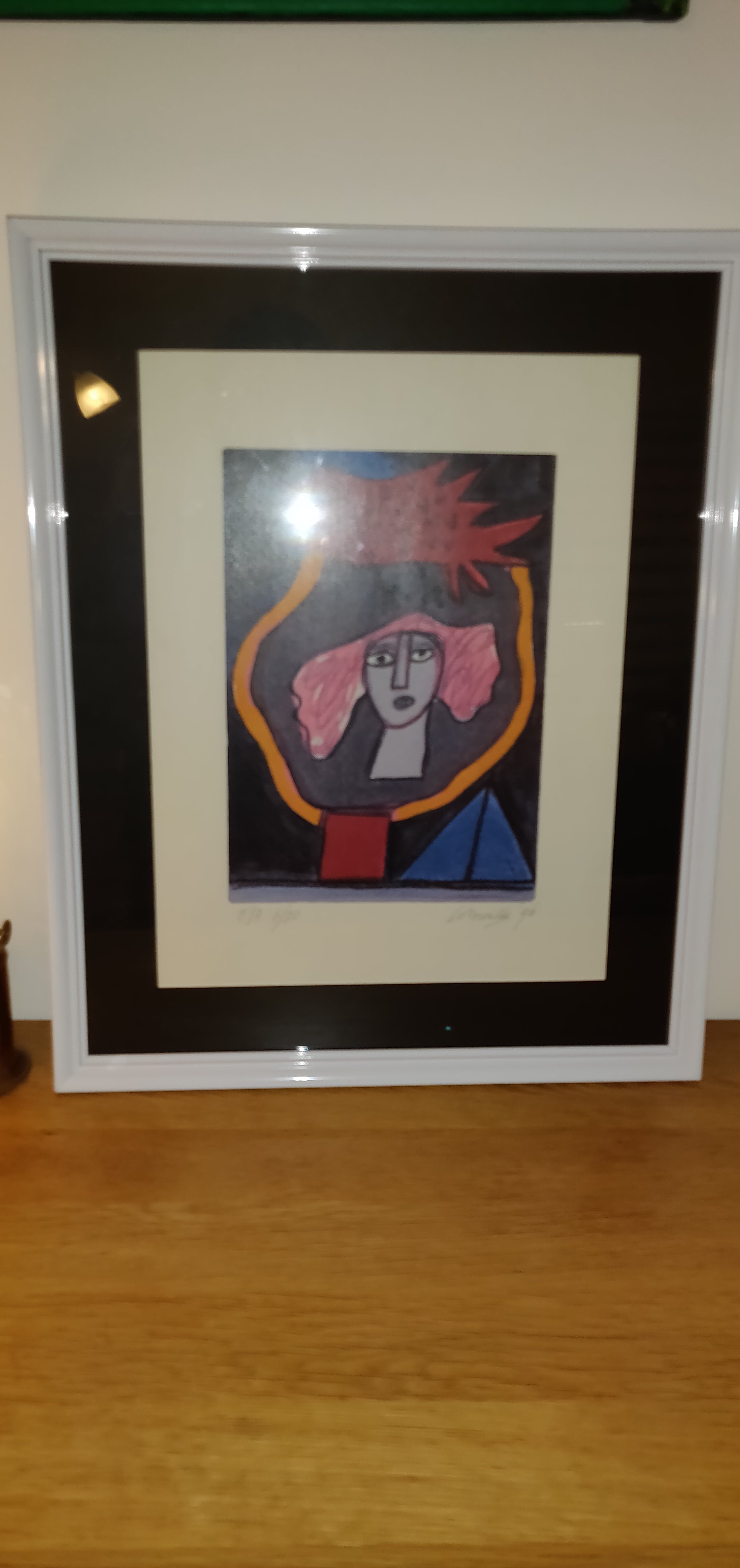 Litho Corneille titel Les cheveux roses met lijst in prima staat. Beperkte oplage E/A 6/20 1996. Handgesigneerd en gedateerd.