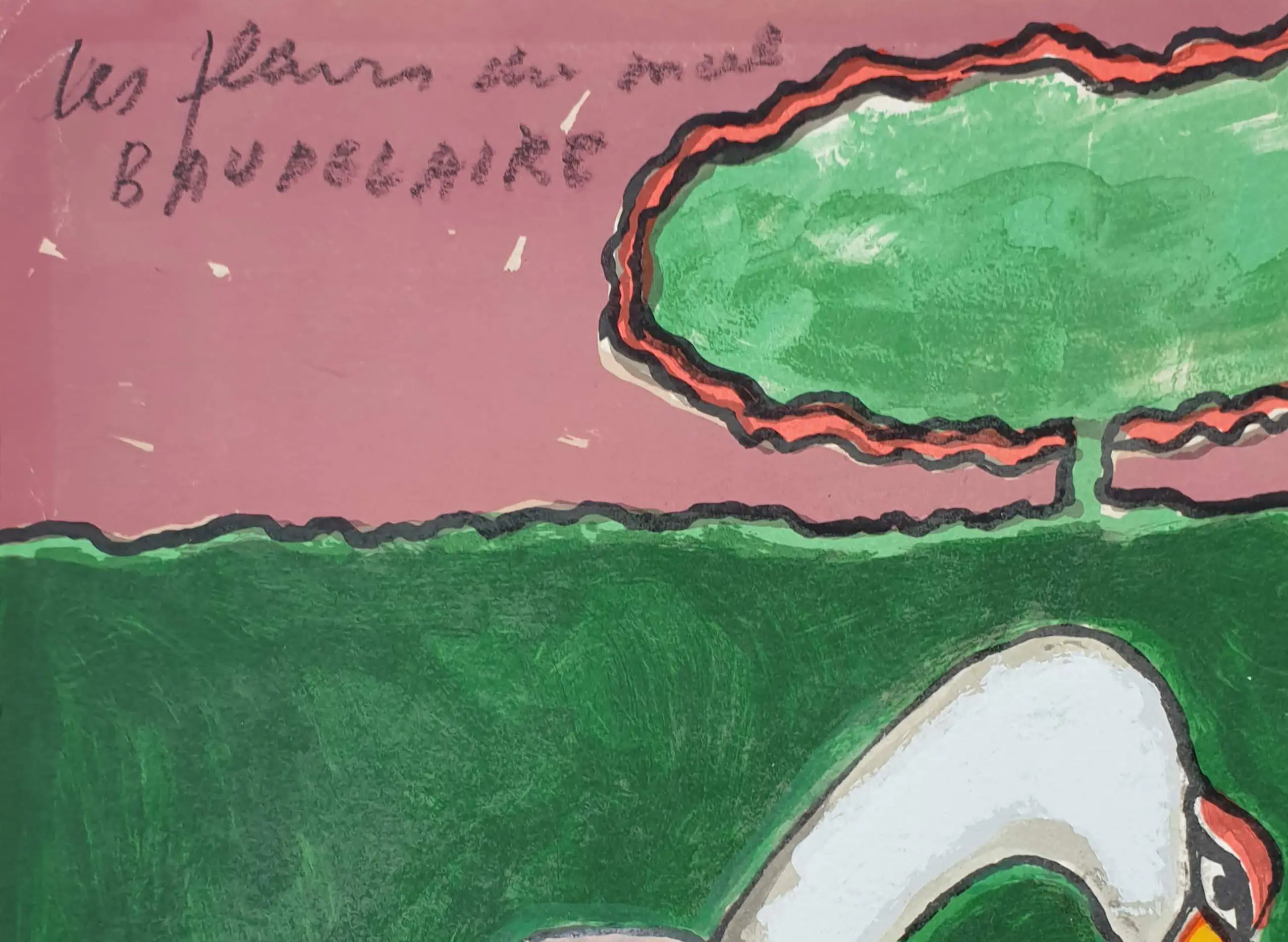 Litho van Corneille met de titel: 'Les fleurs du mal (Baudelaire)' uit 1973. Het werk is rechtsonder met de hand gesigneerd door de kunstenaar.