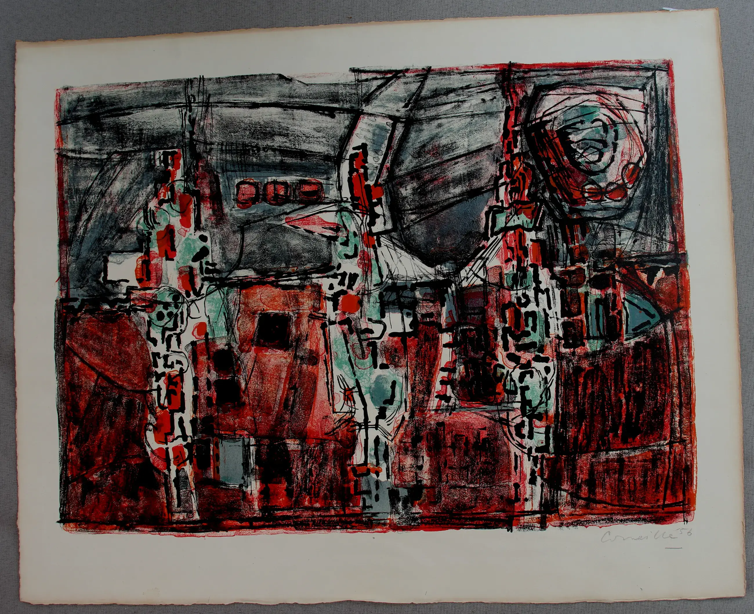 Litho van Corneille. Titel: Nuit d'ete. Jaar: 1956. Afmetingen blad: H37 x b47cm. Afmetingen voorstelling: H35 x b27cm. Het werk is rechts onderaan, gesigneerd door de kunstenaar. De authenticiteit van het aangeboden werk wordt volledig gegarandeerd. Een certificaat van echtheid kan, op aanvraag, worden gemaild.