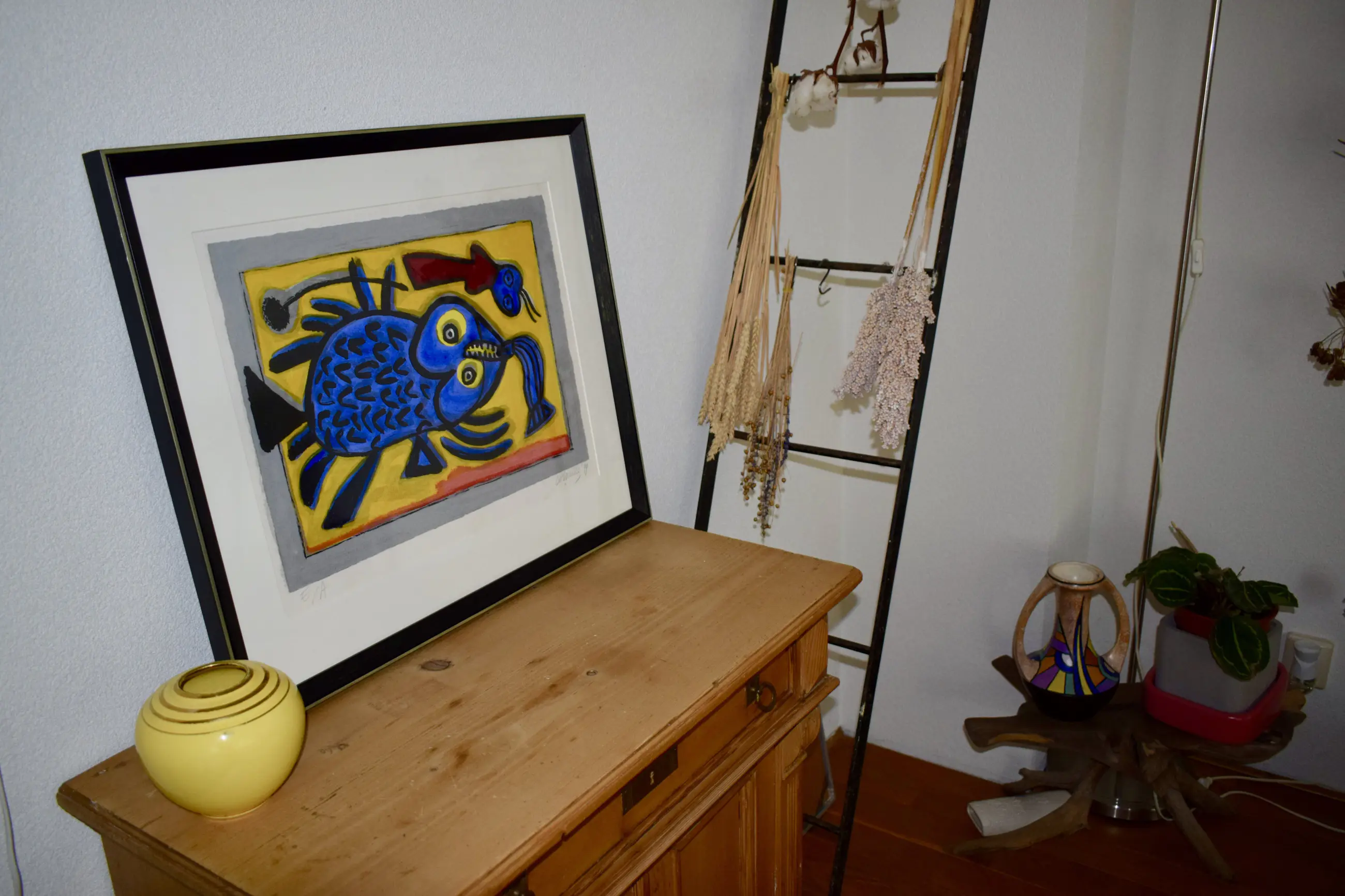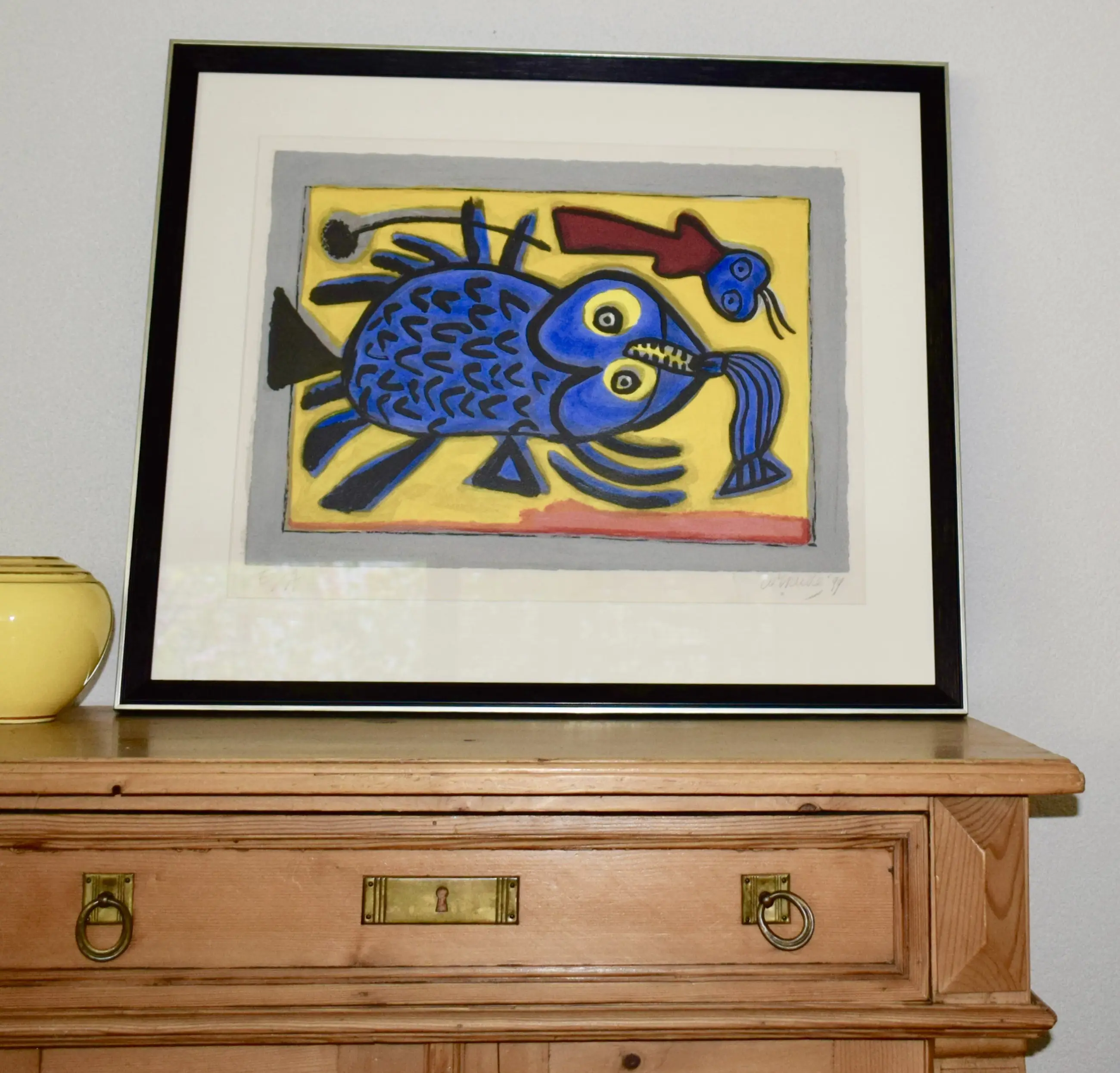 Dit werk maakte eerder deel uit van de eigen Kunstveiling collectie. En is geheel nieuw ingelijst met extra bies door lijstenmakerij Daleman uit Leiden.