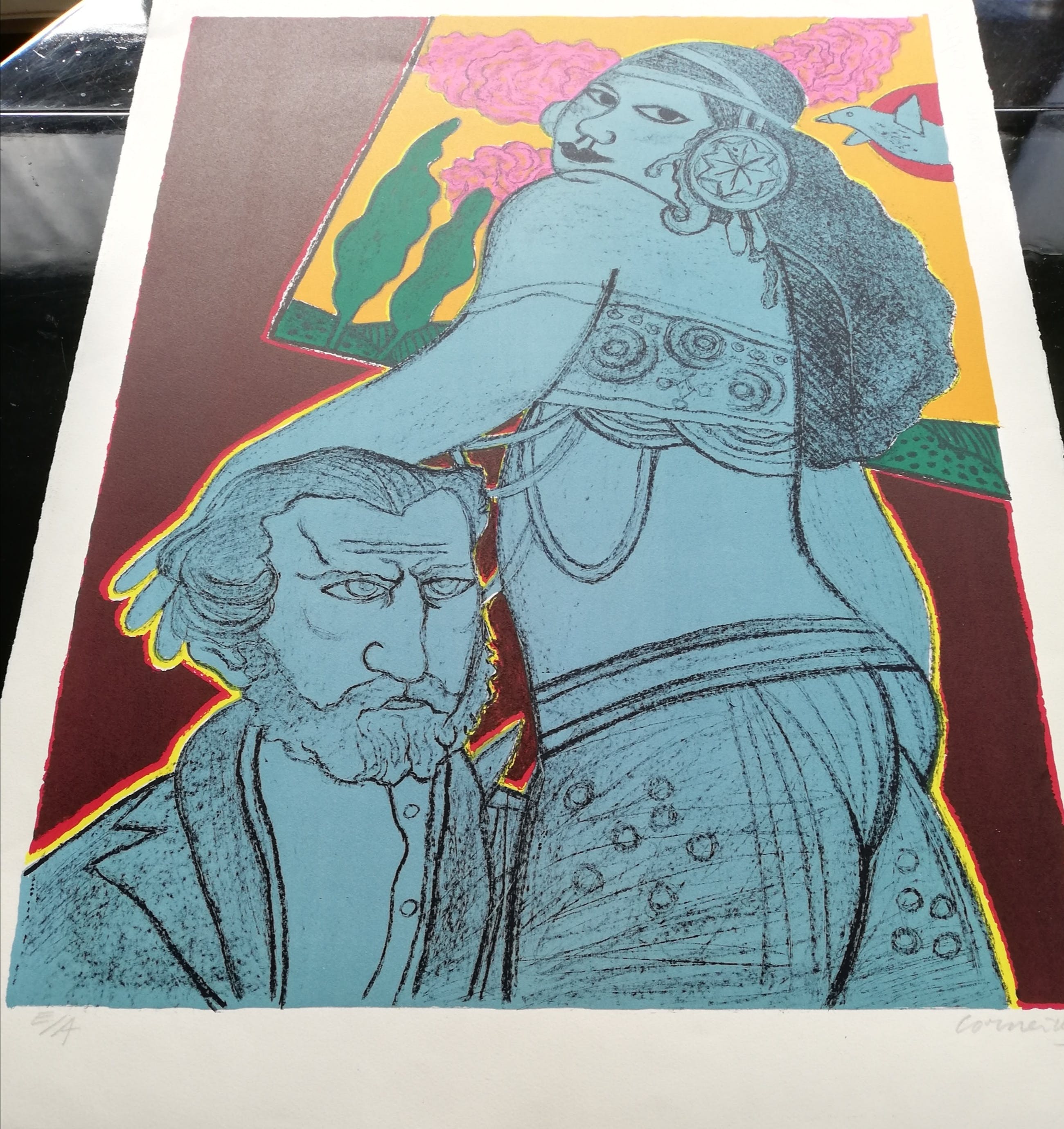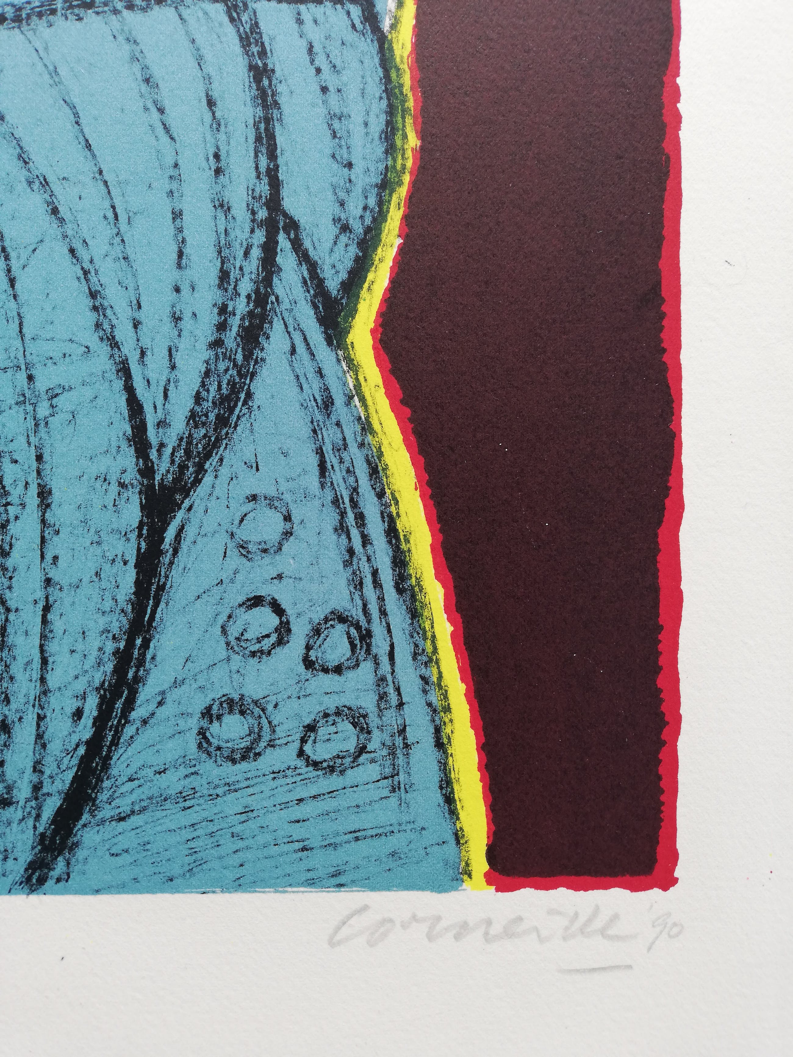 Zeer grote lithografie van Cobra kunstenaar Corneille in goede staat. Schaars Epreuve d'artiste exemplaar. Op dik papier gedrukt. Handgesigneerd in potlood.