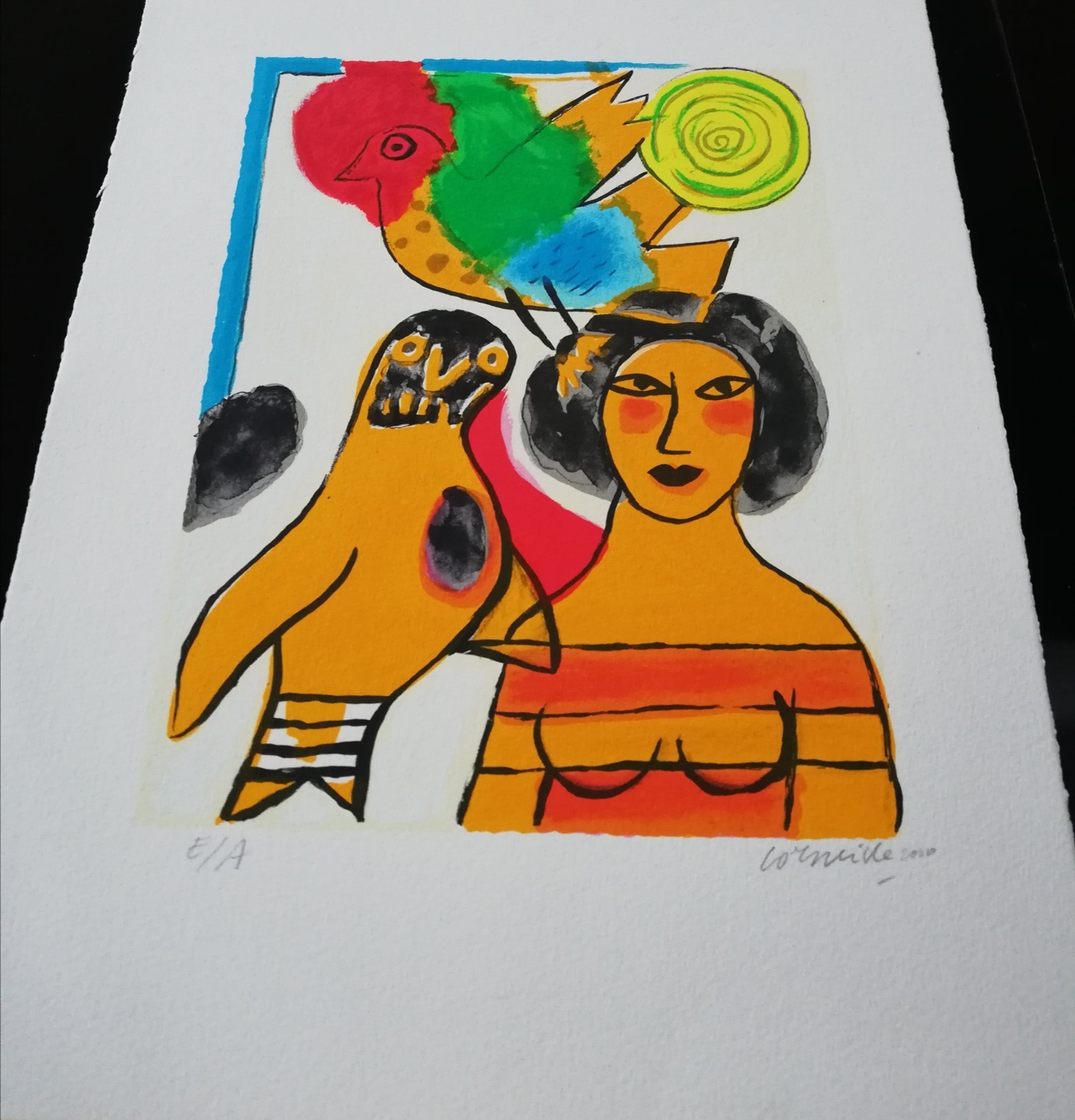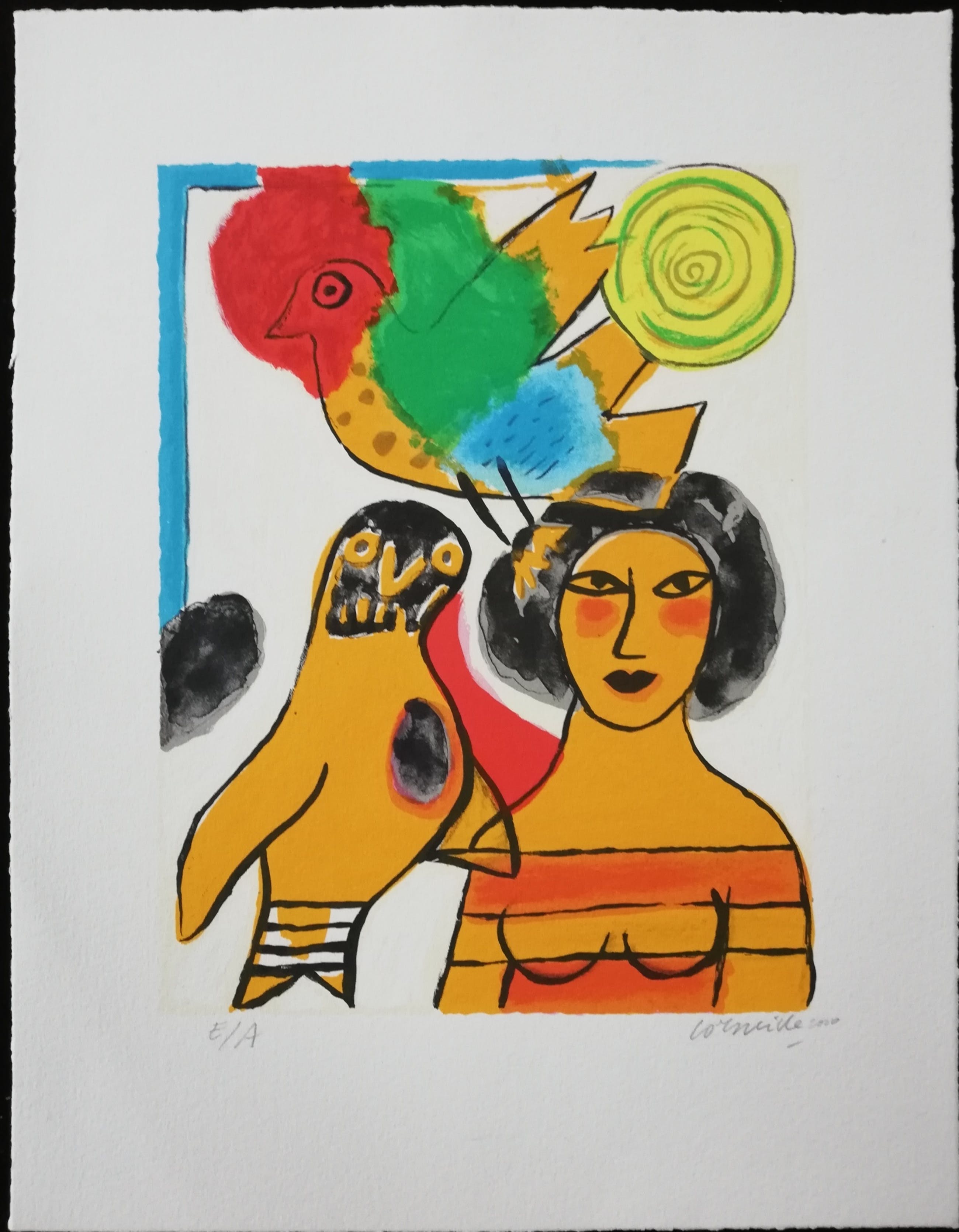 Schaarse epreuve d'artiste lithografie van de beroemde Cobra kunstenaar Guillaume Corneille. Mooi van kleur en in zeer goede staat. Handgesigneerd in potlood.