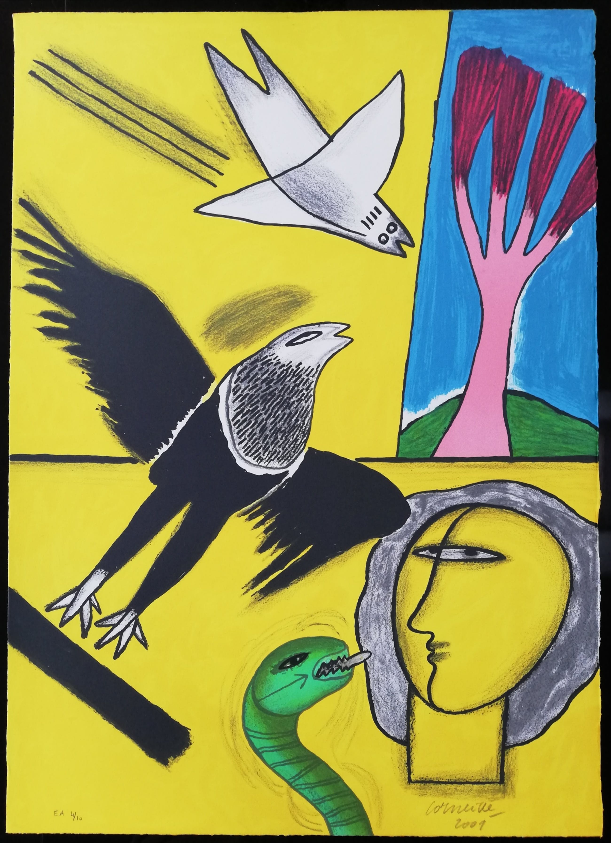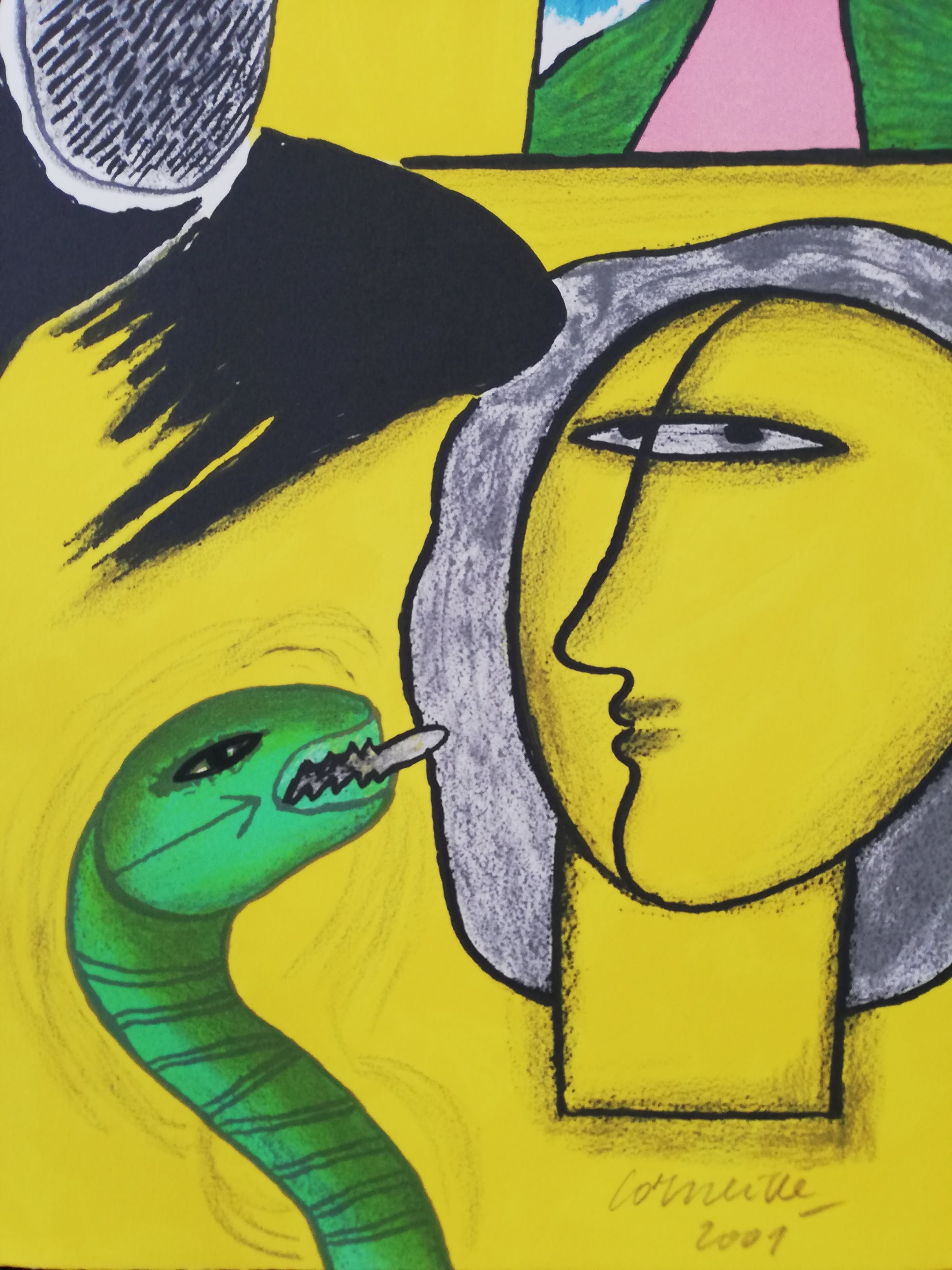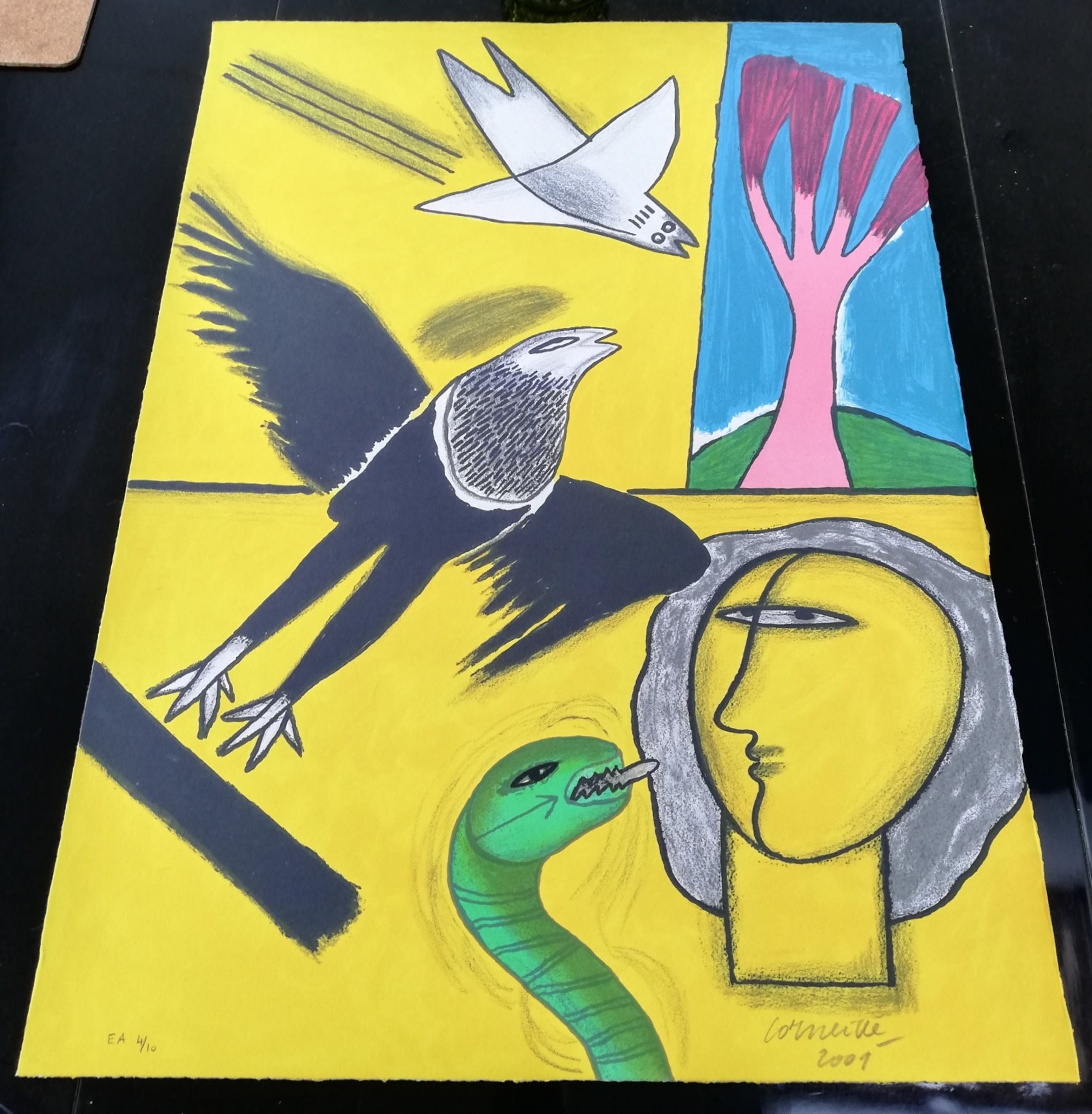 Groot formaat litho van de bekende Cobra kunstenaar Guillaume Corneille uit 2001. In zeer goede staat en mooi van kleur. Betreft een schaars E. A. Exemplaar, nummer 4 uit een oplage van 10 stuks.