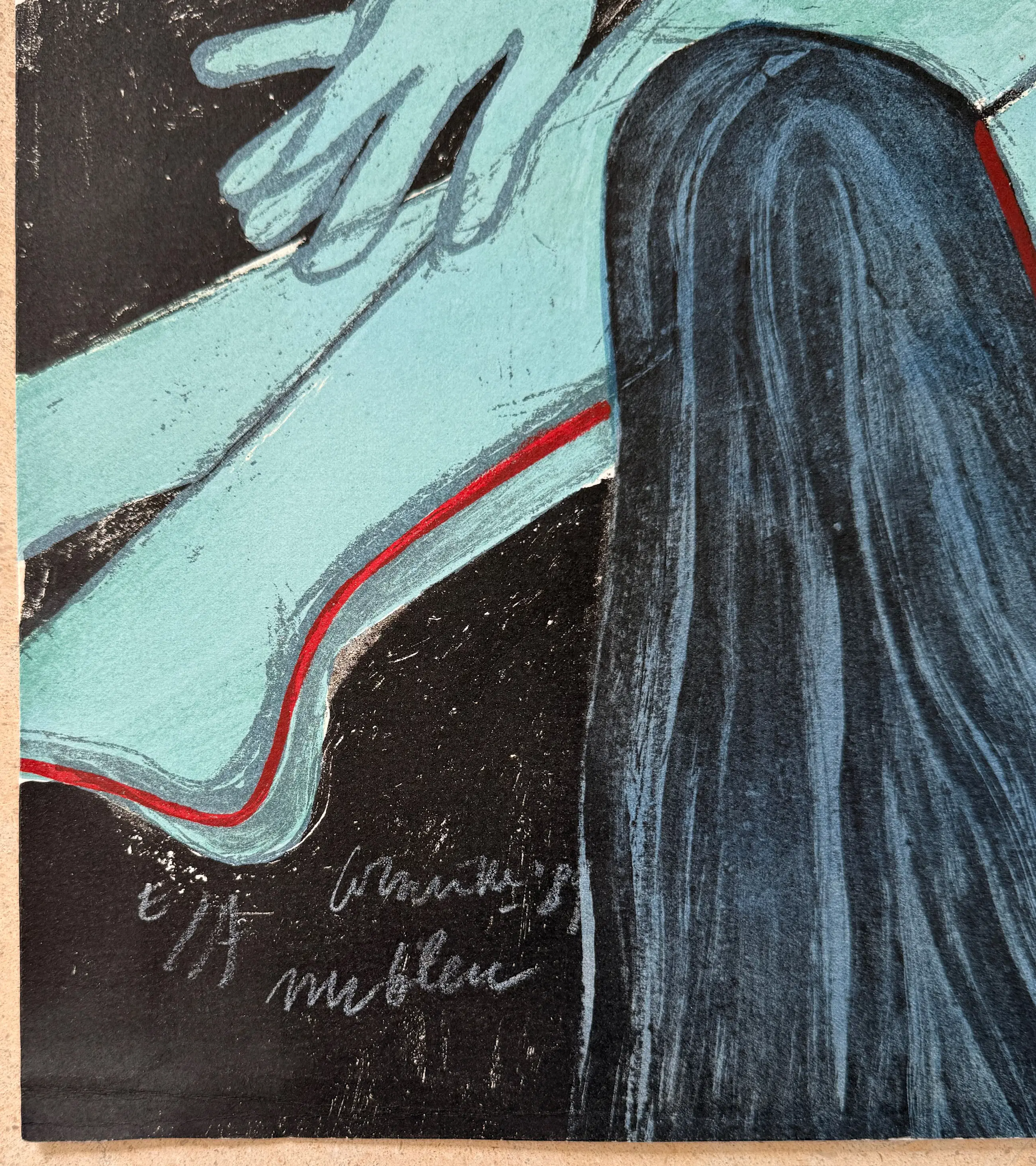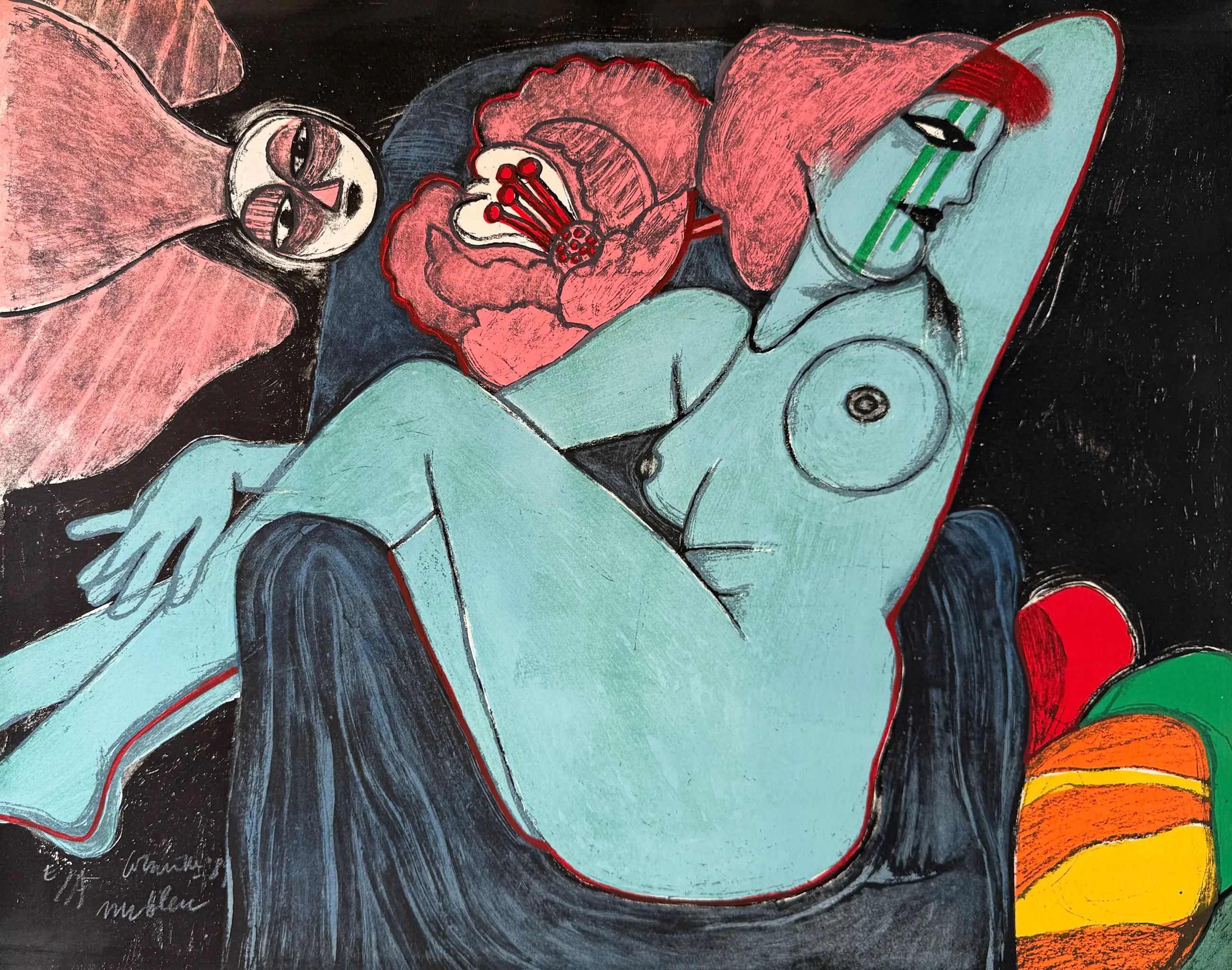 Lithograph van Corneille met de titel: 'Nu blue' uit 1998. Het werk is linksonder met de hand gesigneerd door de kunstenaar.