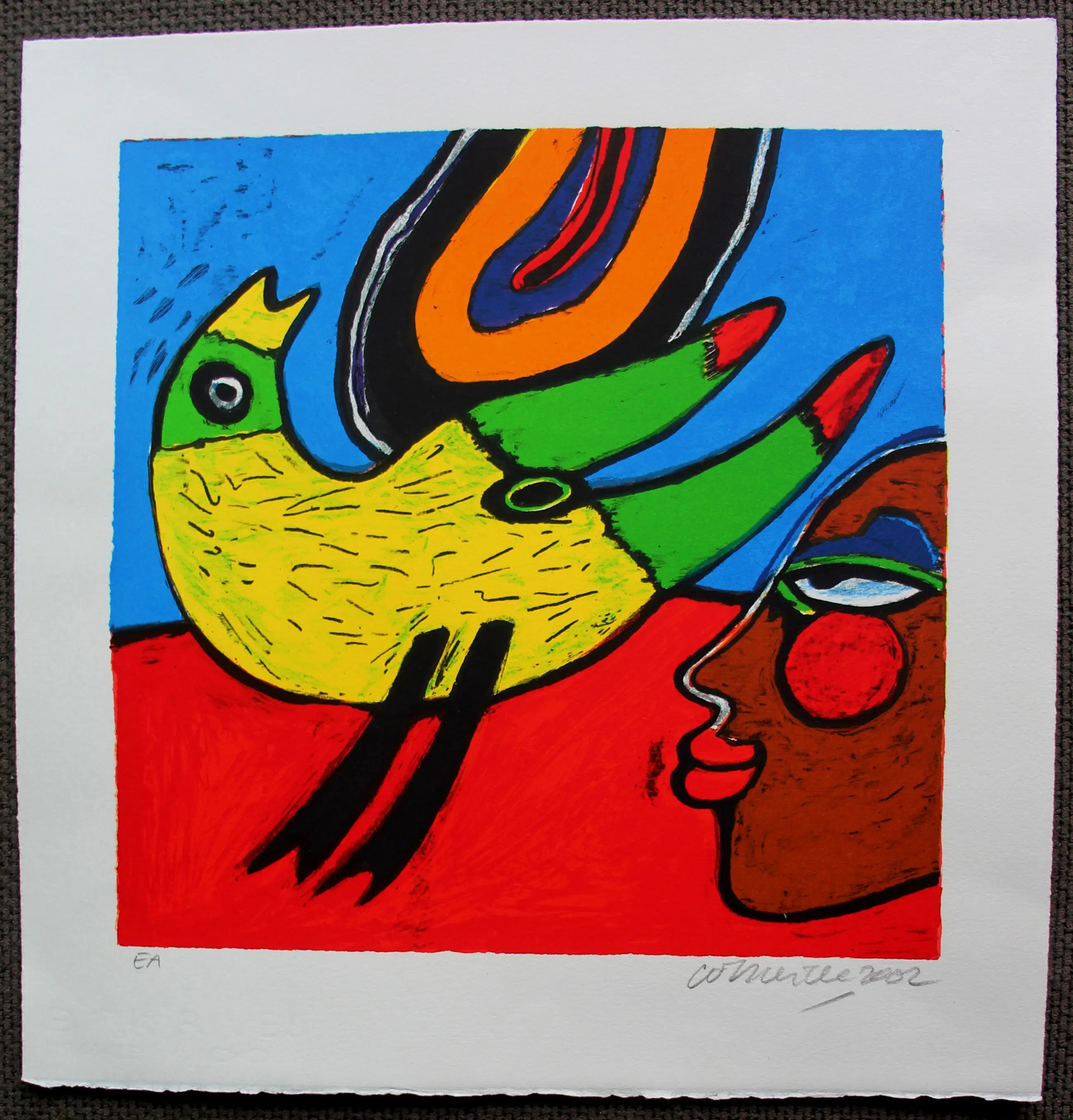 Litho van Corneille. Titel: La femme et l'oiseau(dame en een vogel). Jaar: 2002. Oplage: E.A. Afmetingen blad: H39.5 x b38cm. Afmetingen voorstelling: H30 x b30cm. Het werk is rechts onderaan, gesigneerd door de kunstenaar. De authenticiteit van het aangeboden werk wordt volledig gegarandeerd. Een certificaat van echtheid kan, op aanvraag, worden gemaild.