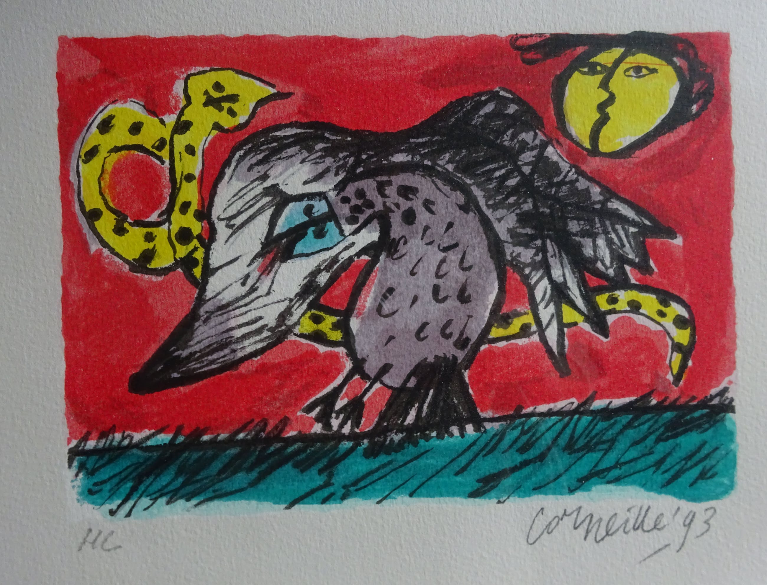 Titel: Mémoire de Bali - 7 Beeldend Kunstenaar: Corneille 1922-2010 Productnaam: kleurenlitho zeefdruk Gesigneerd: rechtsonder Gedateerd: ' 93 Techniek: kleuren zeefdruk Oplage: Linksonder oplage H C (Hors Commerce) = Zeldzaam Ingelijst: ja Afmeting: 15 x 21 cm Afmeting met lijst: 41 x 47 cm Galerie: Eduard van Hulsen Amsterdam Conditie: prachtige staat