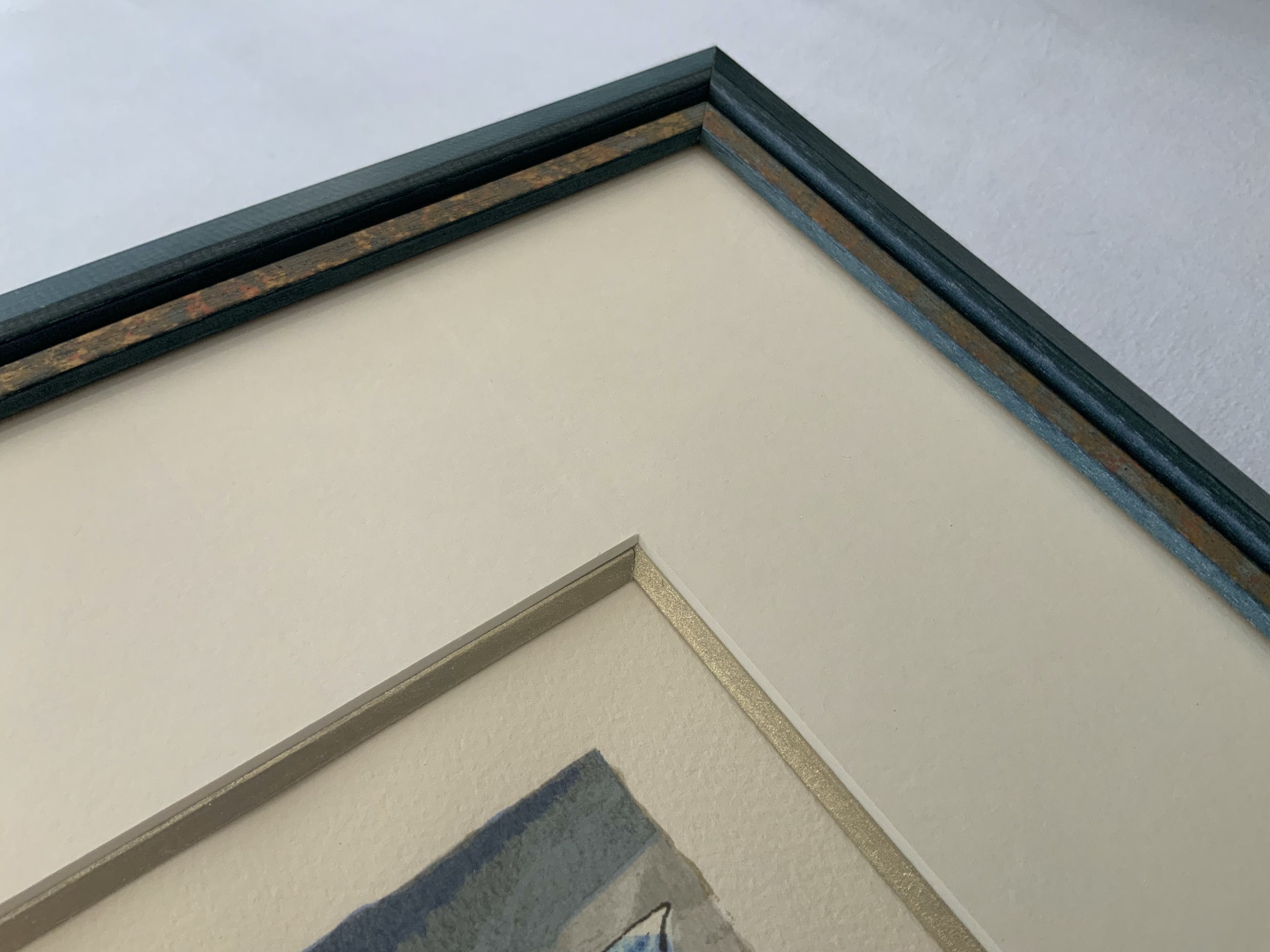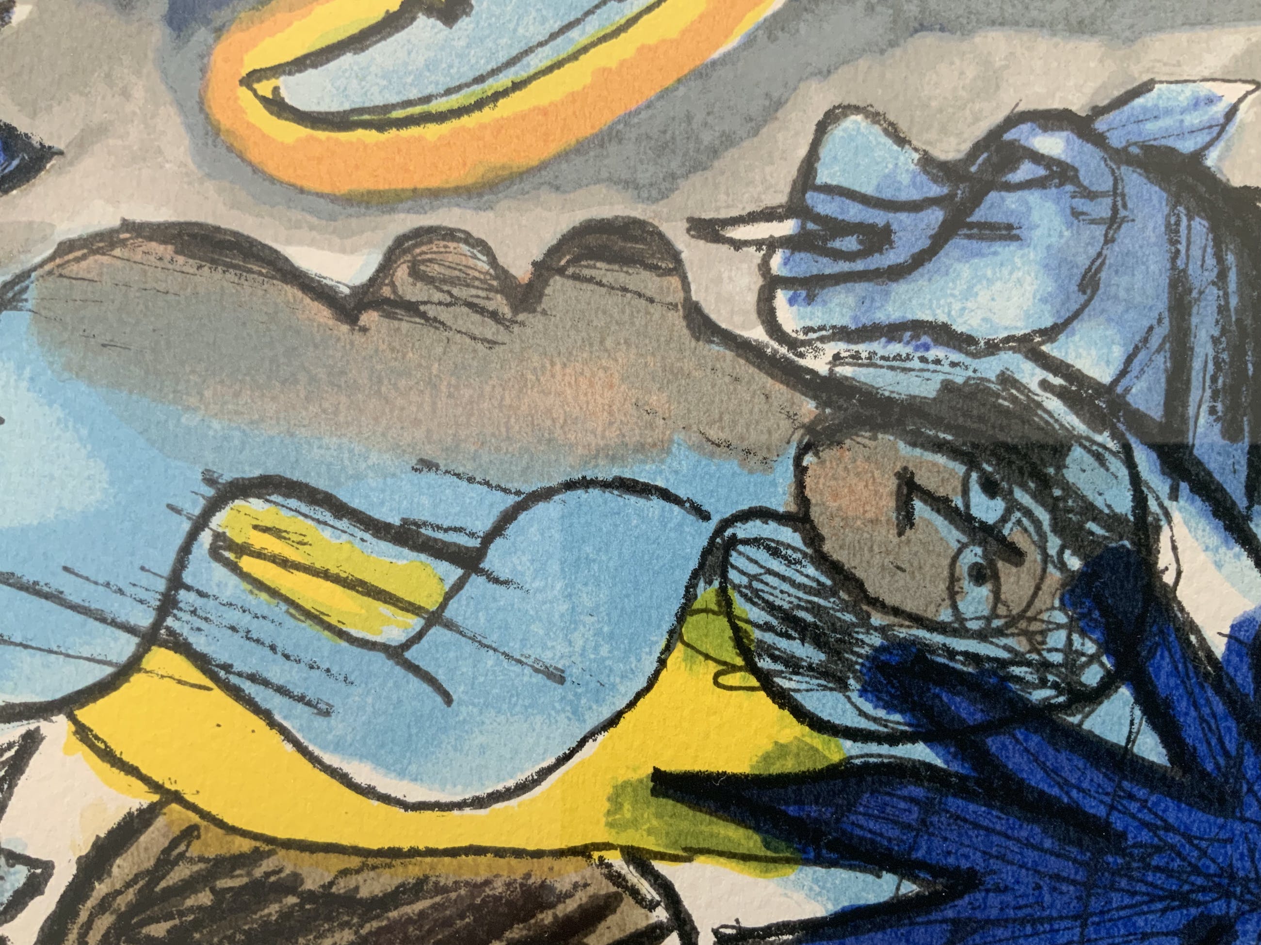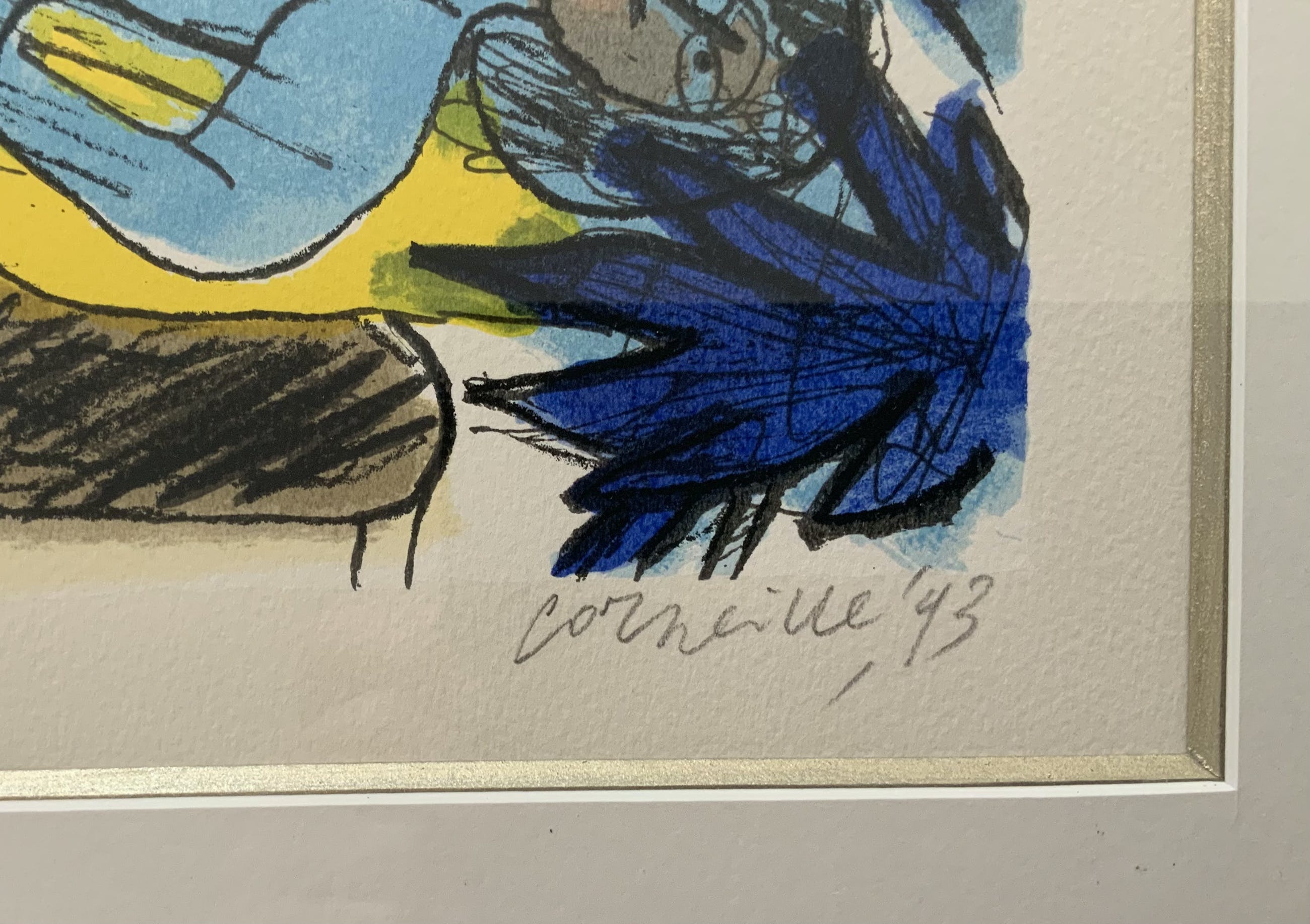 Aangeboden met lijst: Ja, in houten lijst, in kleuren die volledig zijn afgestemd op de kleuren van de zeefdruk. Professioneel ingelijst, In wit passe partout met goudkleurige rand. In uitstekende staat kan zo aan de muur.