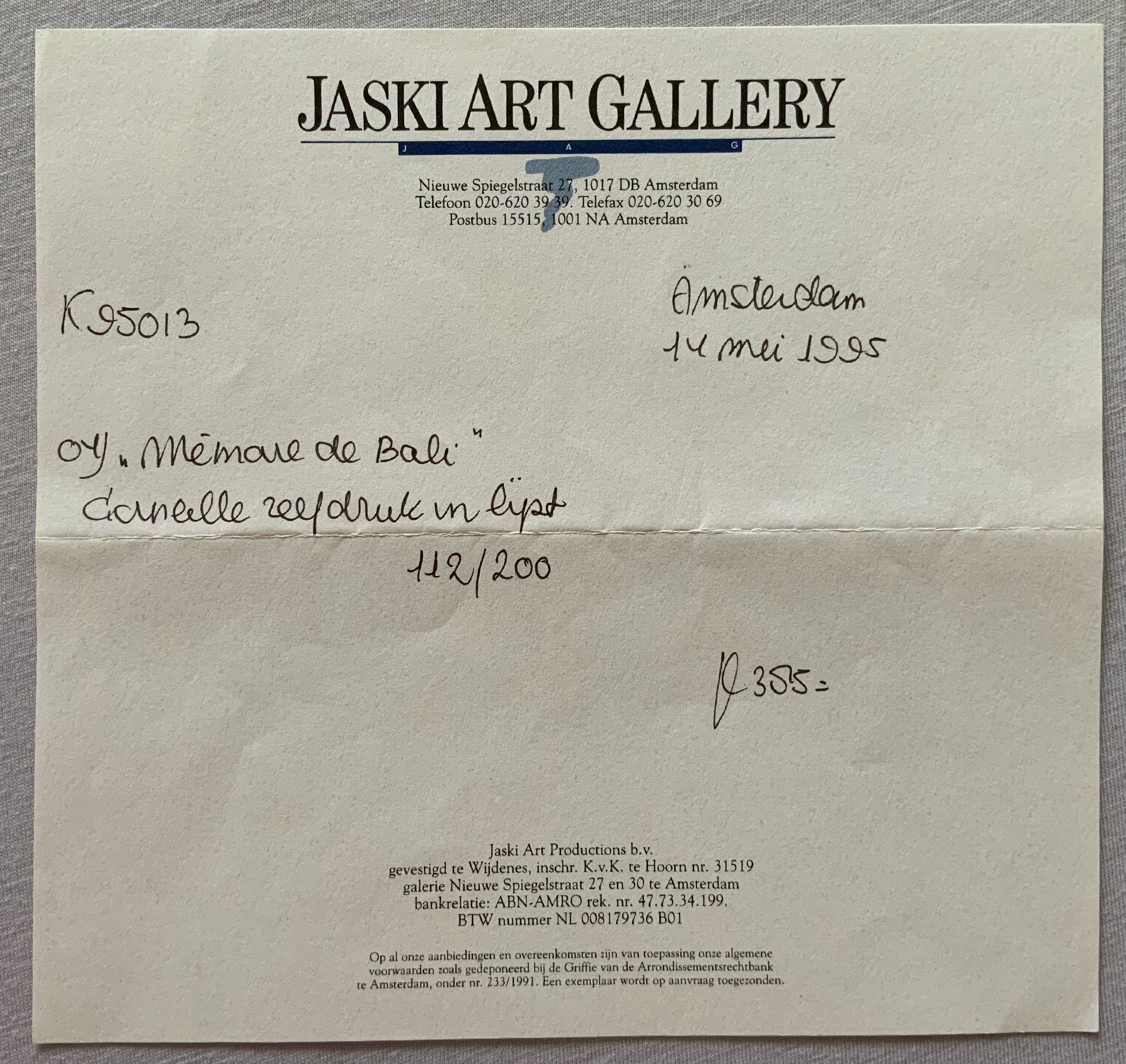 Zeefdruk wordt geleverd met de officiële aankoopnota van Jaski Art Gallery uit 1995.