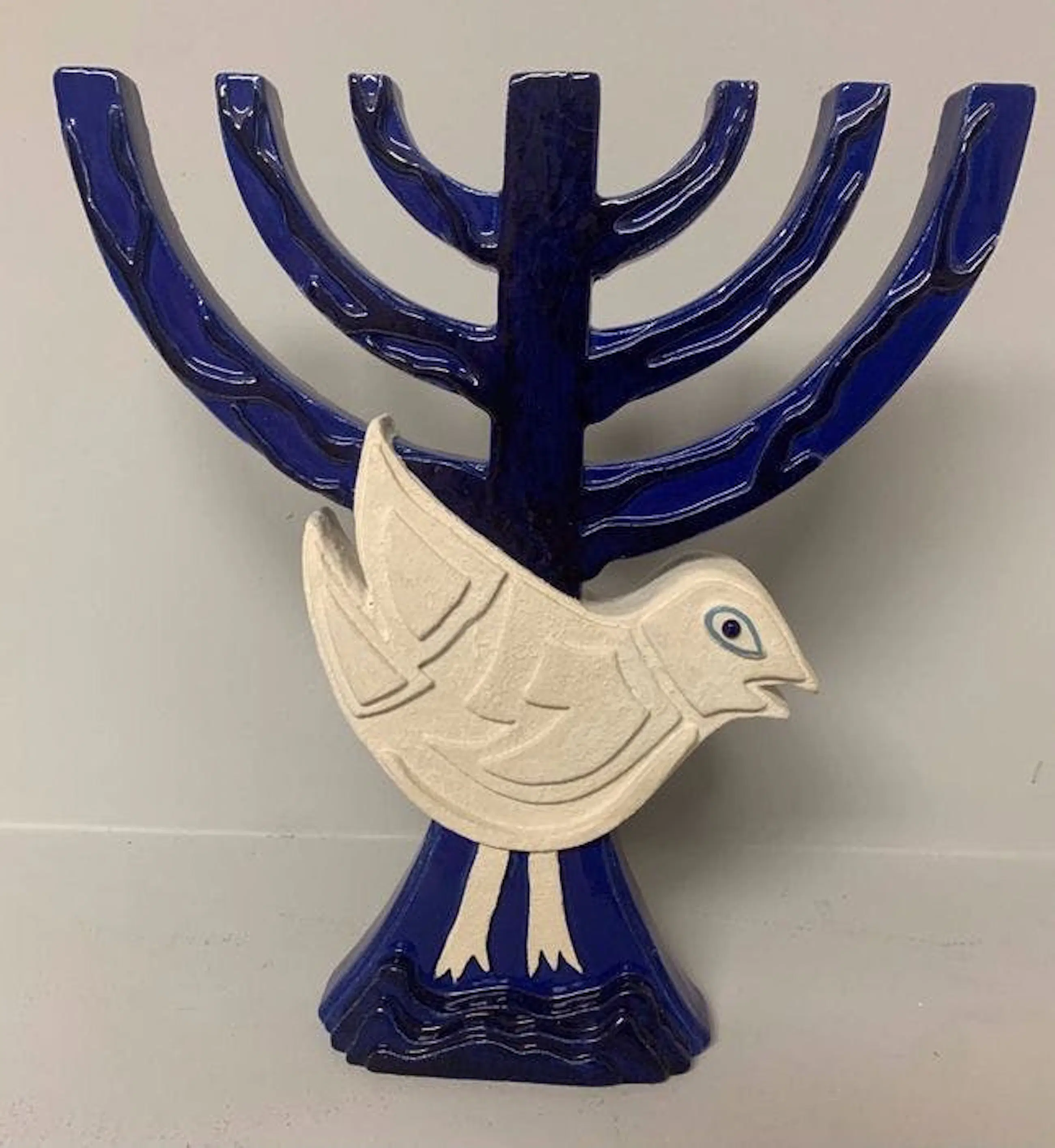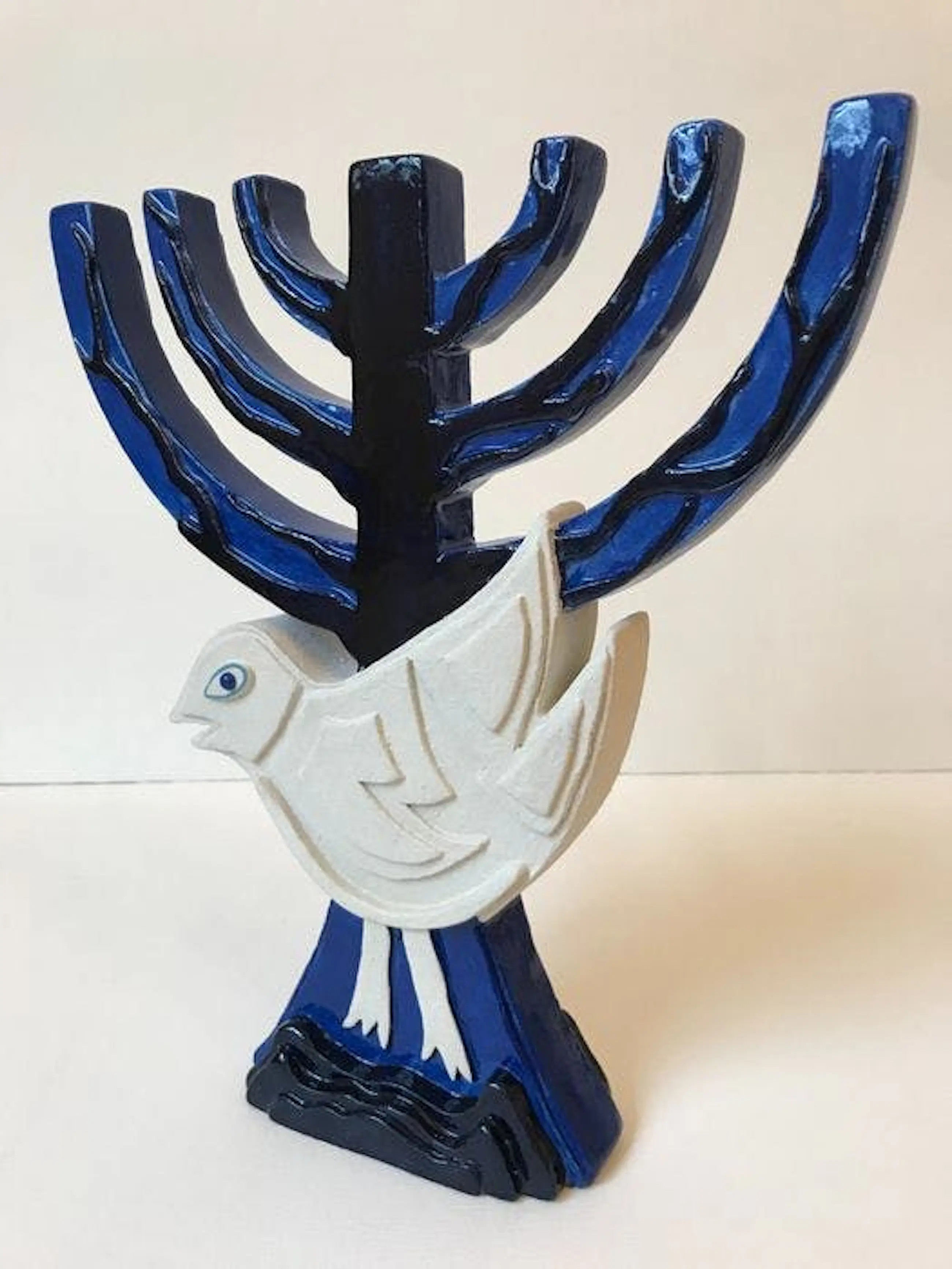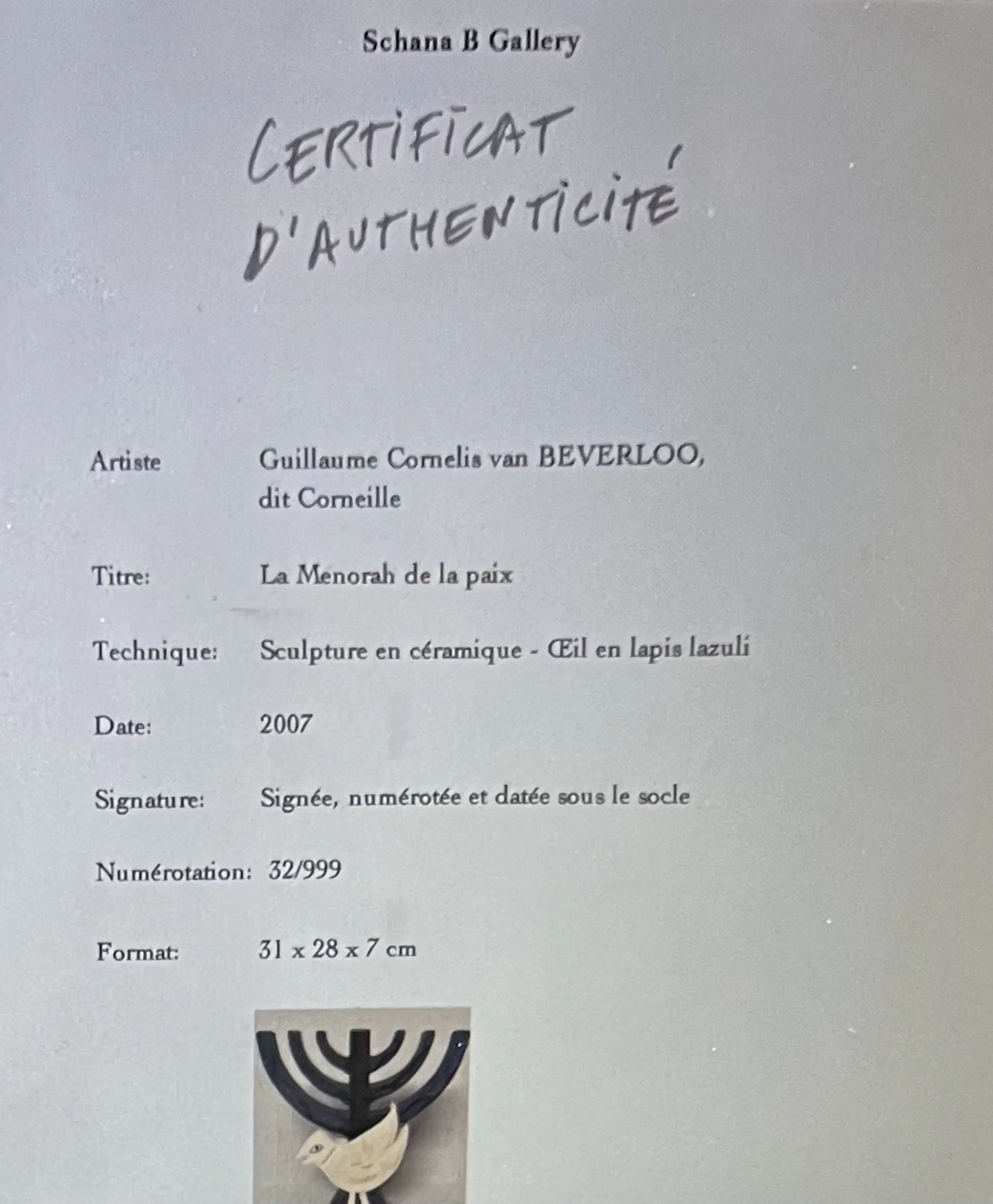 Keramische Menora van de schilder Guillaume Corneille, geboren in Luik uit Nederlandse ouders, stichtend lid van de Cobra-groep met o.a. Asger Jorn, Karel Appel, Constant, Dotremont, Alechinsky en Jacques Doucet