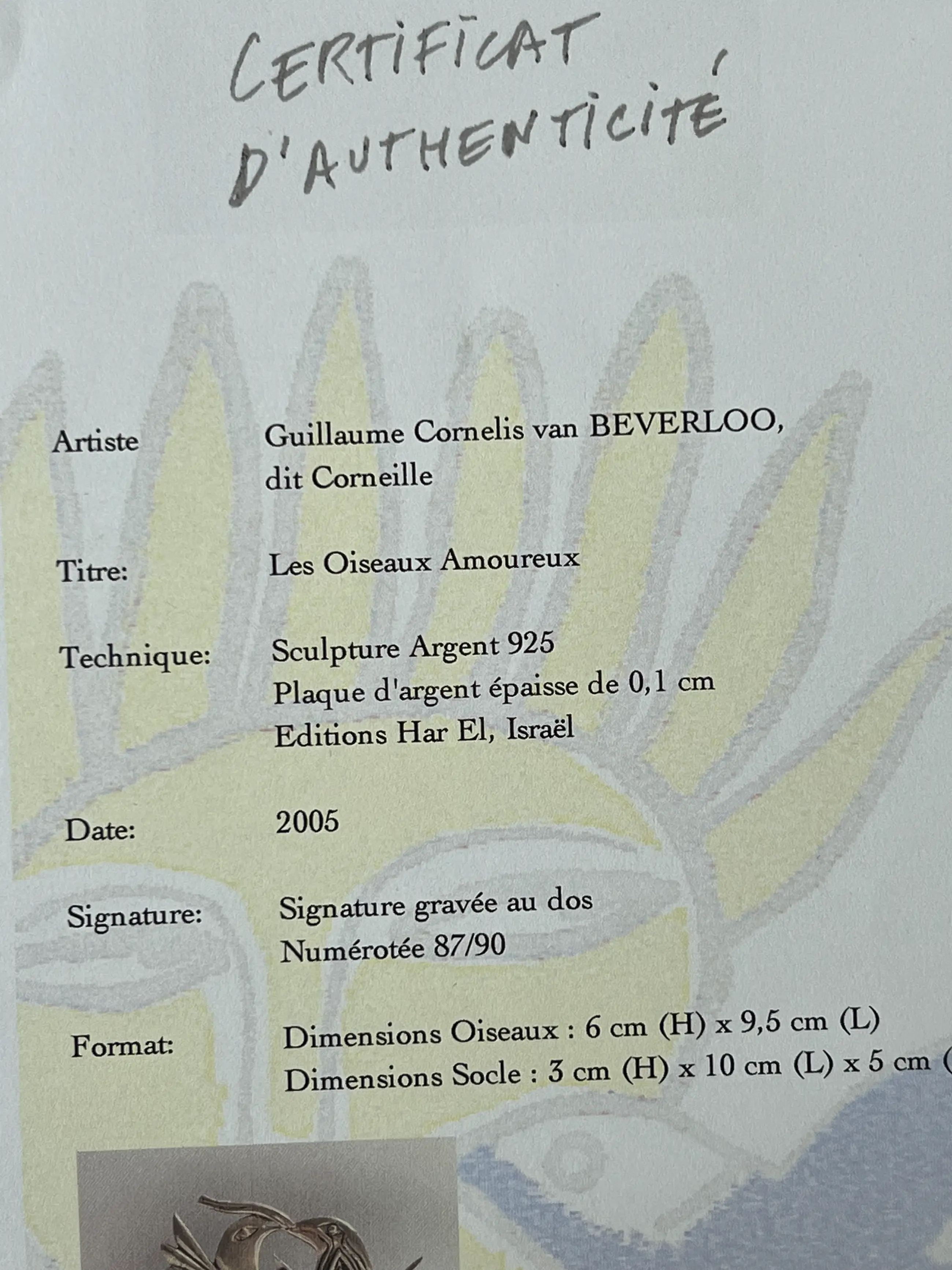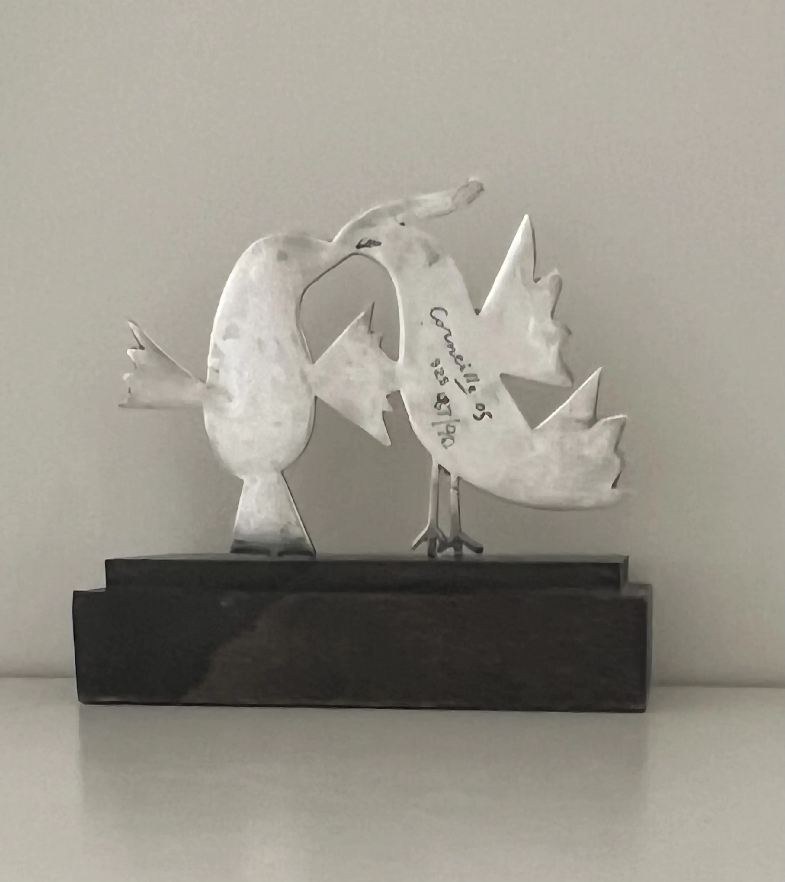 Prachtige sculptuur van 925 zilver. Gegraveerde handtekening van de schilder op de achterkant Genummerd 87/90. Uitgegeven met een certificaat van echtheid. Ideaal in een vitrine of op een boekenkast. Afmetingen vogel: 6 cm (hoogte) x 9,5 cm (breedte) Afmetingen sokkel: 3 cm (hoogte) x 10 cm (breedte) x 5 cm (diepte)