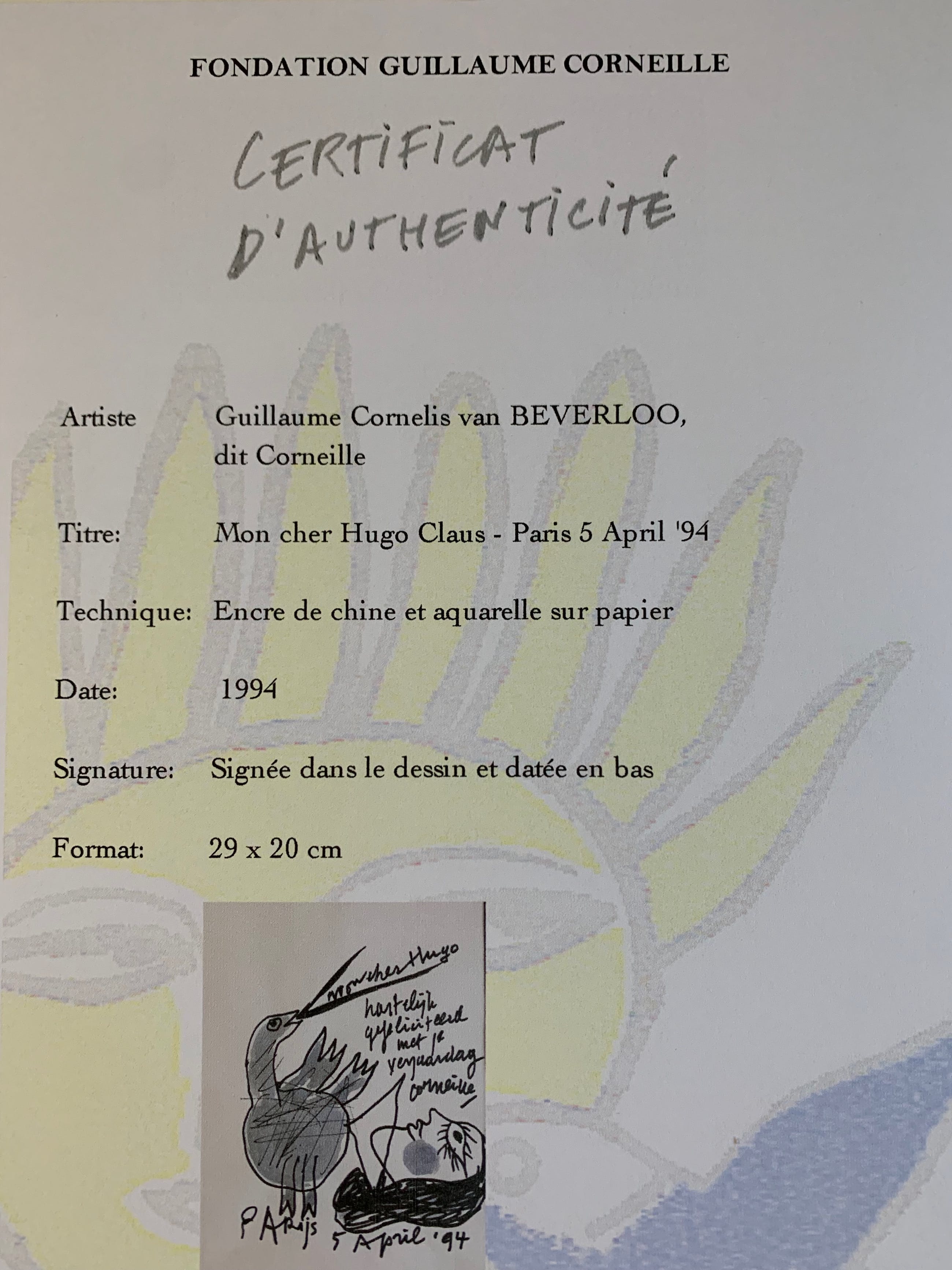 "Mon cher Hugo Claus - Paris 5 April '94 "