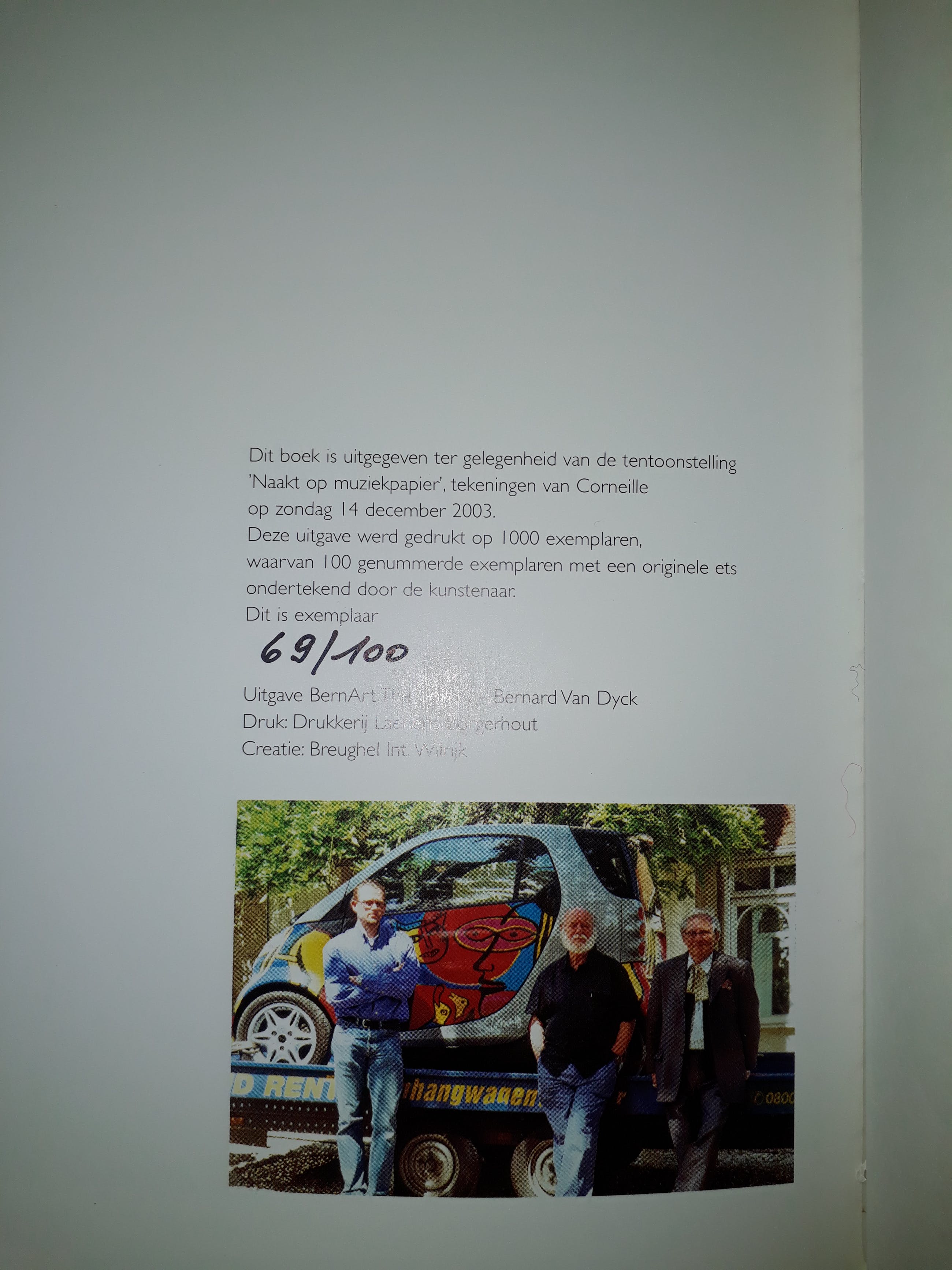Het fraaie boekje bevat vele afbeeldingen van naakt op muziekpapier. Uitgegeven ter gelegenheid van de tentoonstelling 'naakt op muziekpapier' tekeningen van corneille op zondag 14 december 2003. Uitgave :Bern Art The Gallery-Bernard van Dyck..
