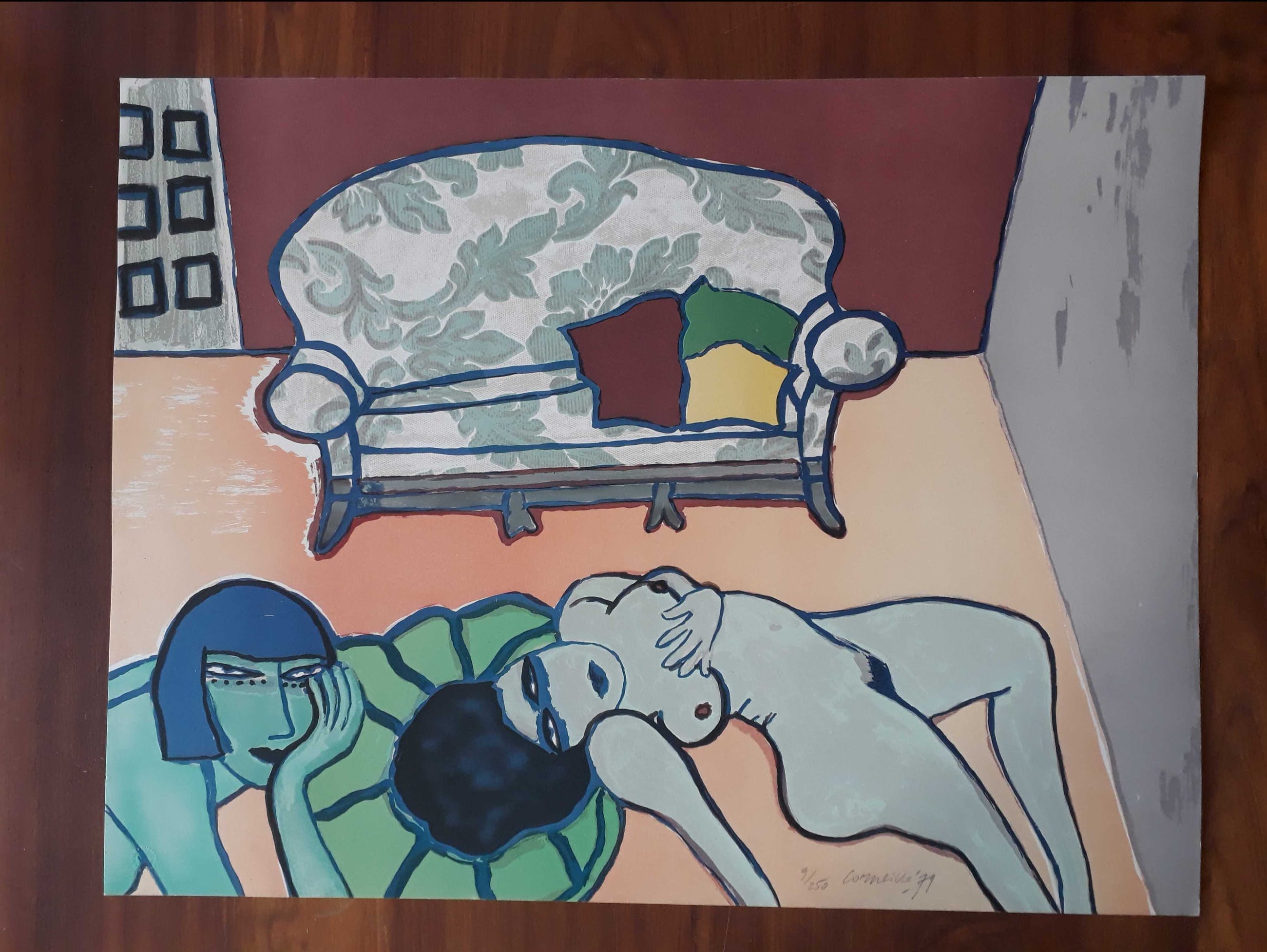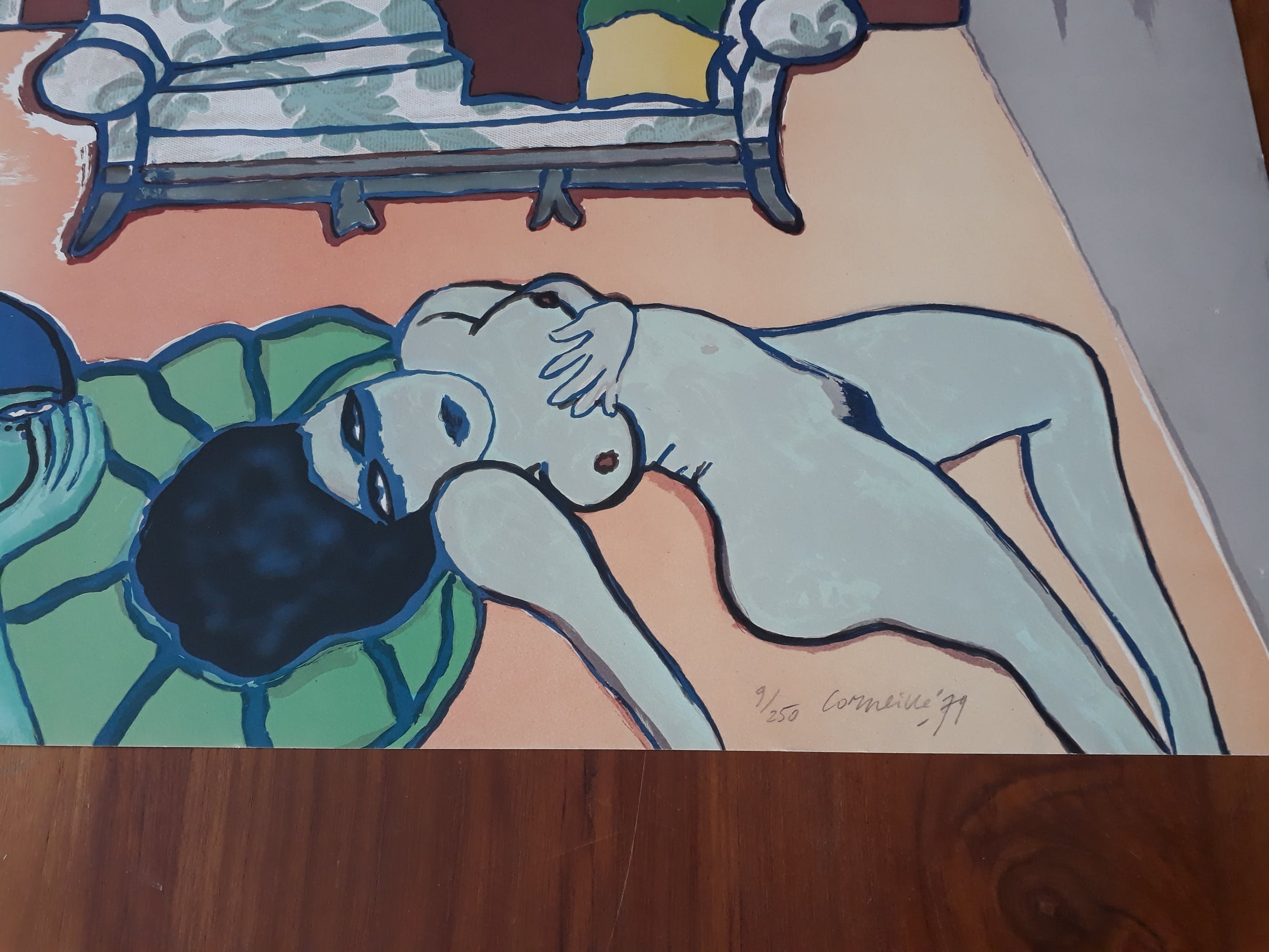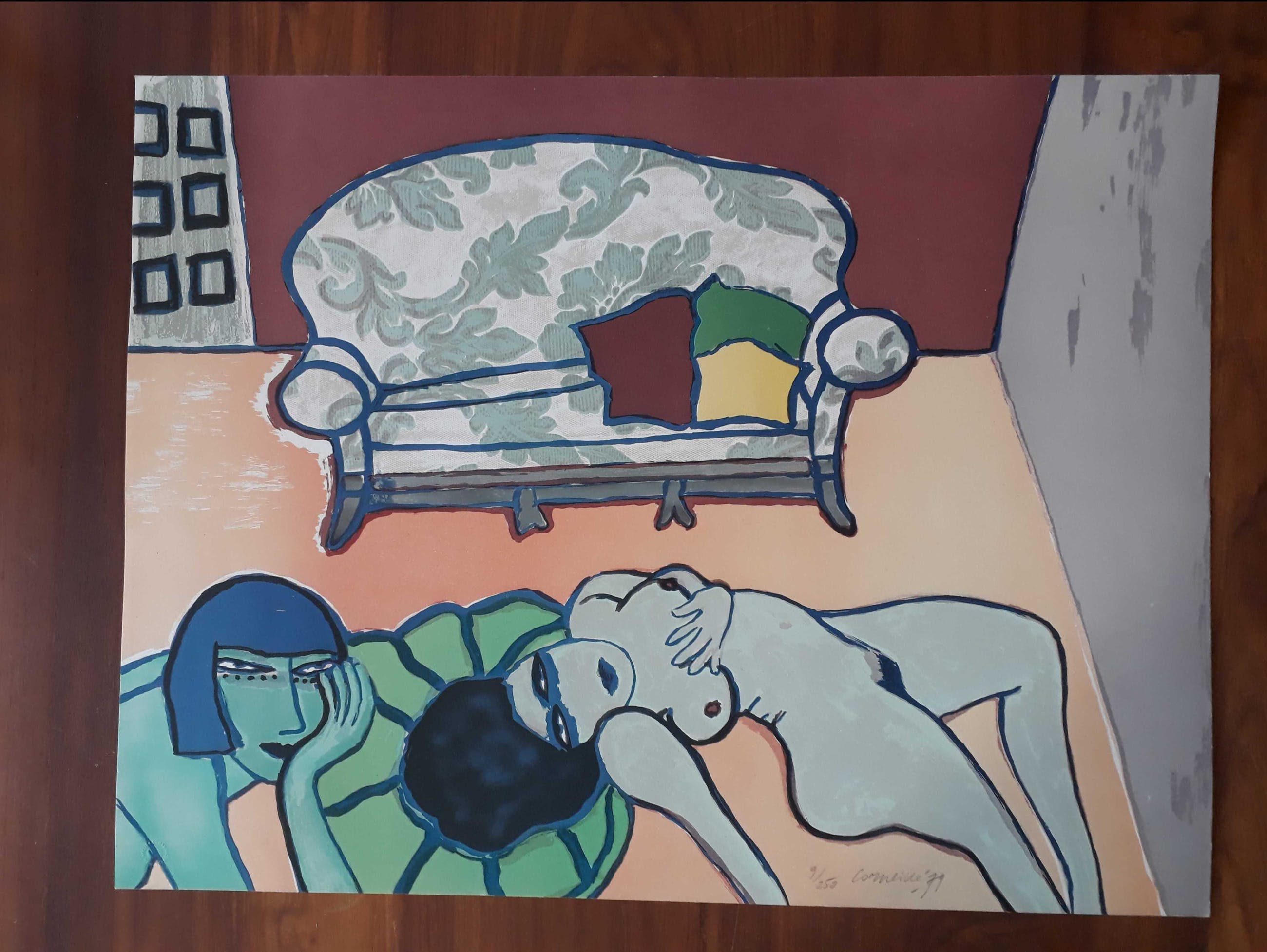 Zeer mooie litho van corneille uit 1979:New York rooms Het werk heeft geen marges en is vol gedrukt op papier Links onder:blindstempel atelier dumas new york Oplage nummer 9/250