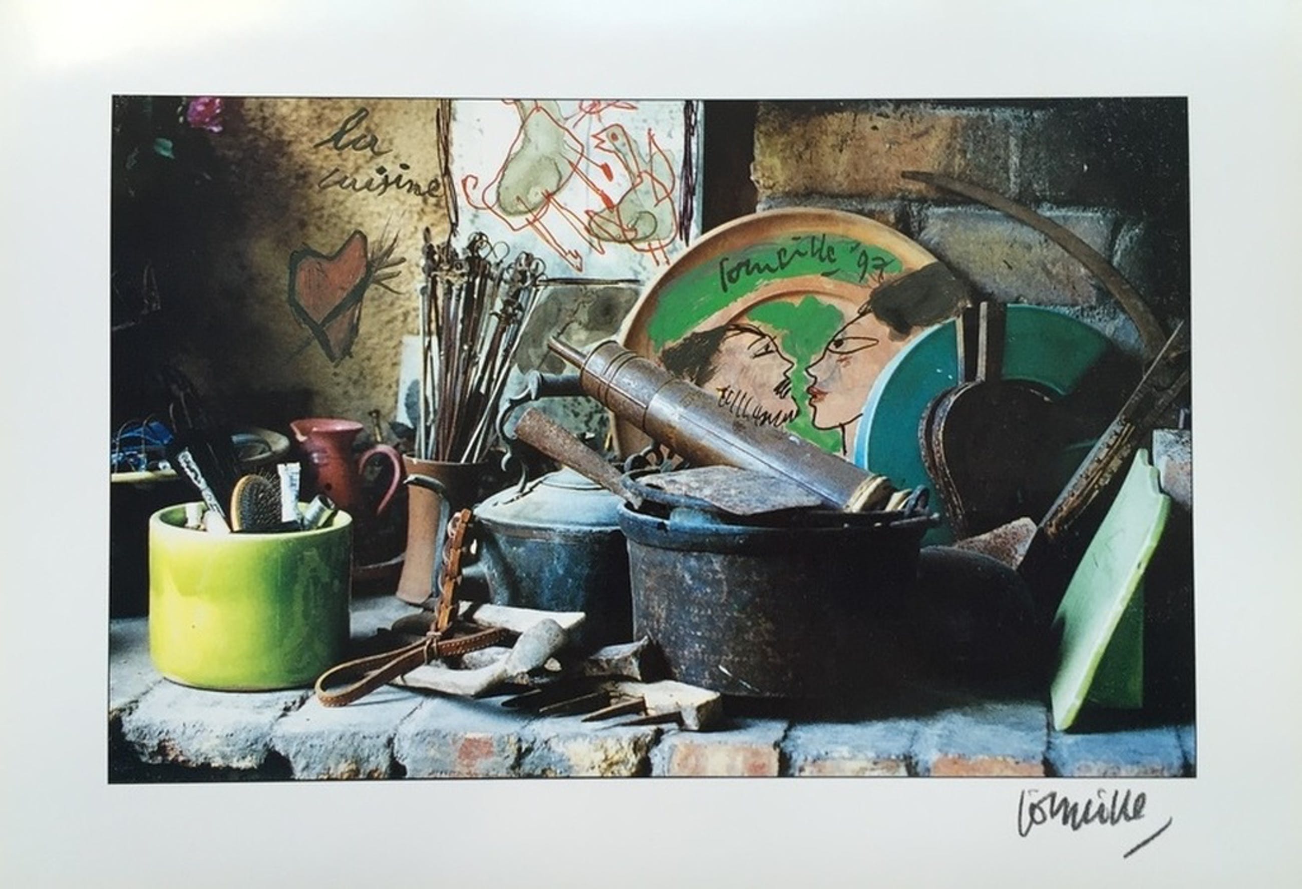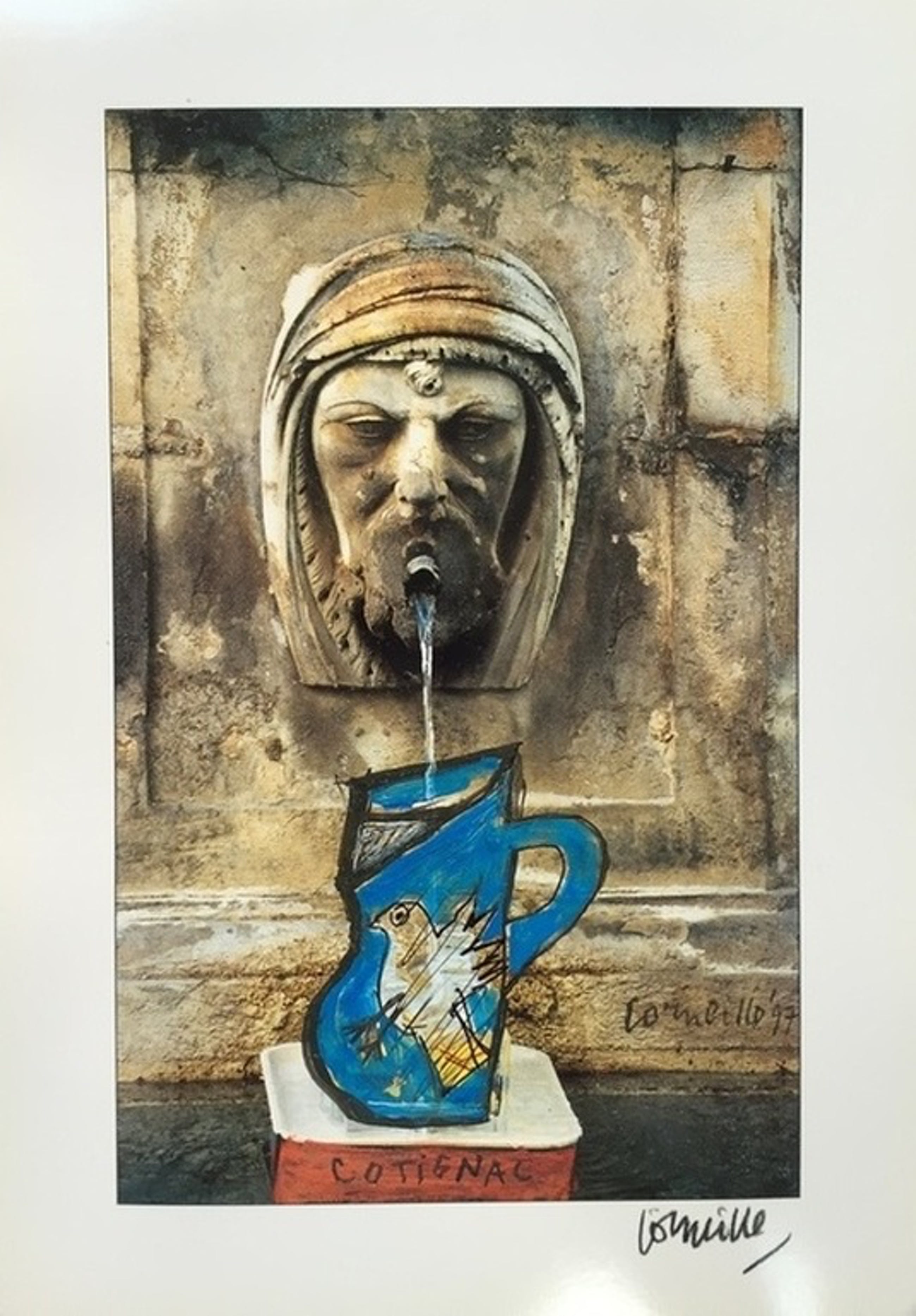 Techniek: foto op papier van Nico Koster met de gedrukte beschildering van Corneille