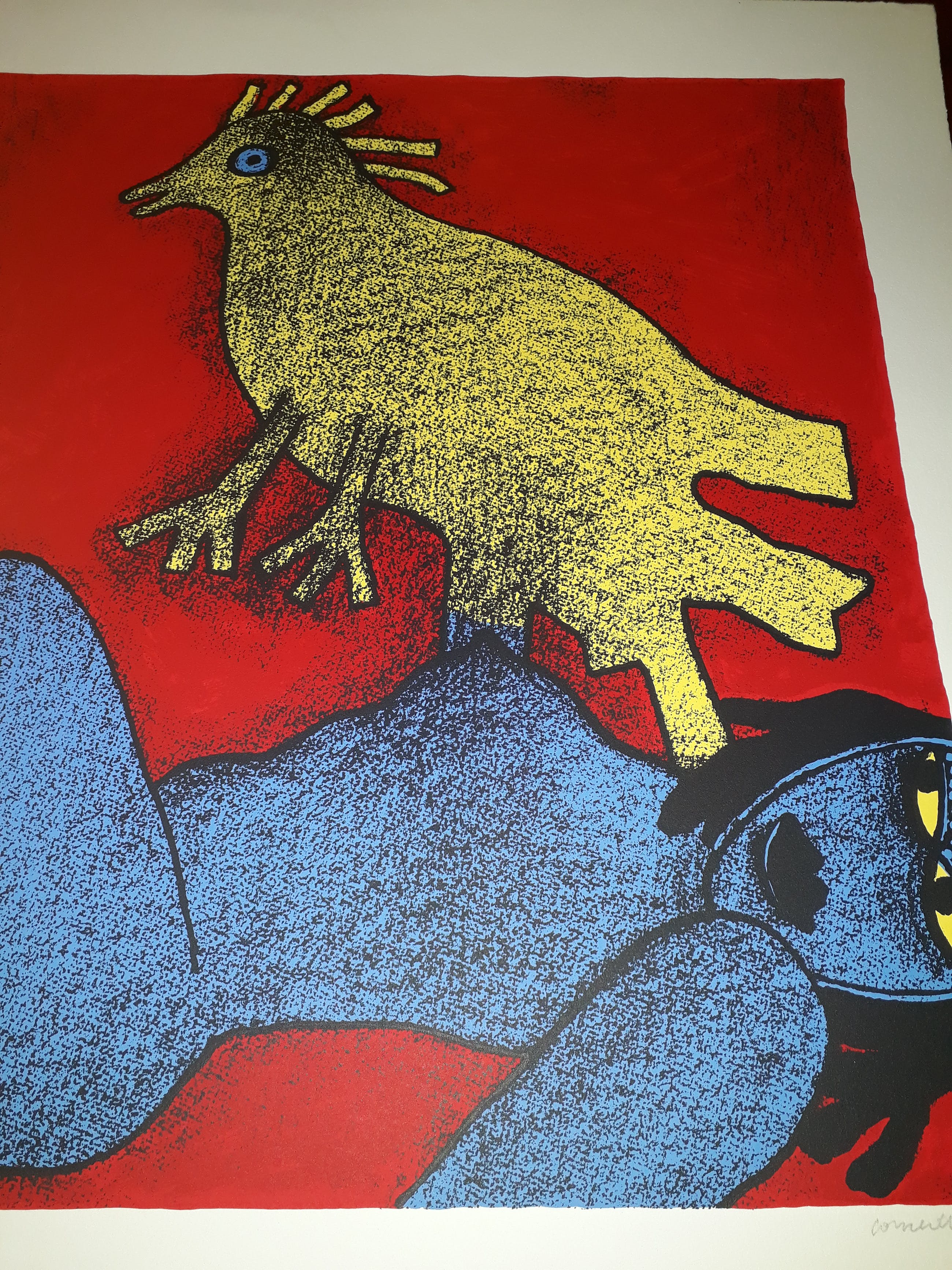 Zeer mooie grote zeefdruk van corneille uit 1991. In werkelijke nieuwstaat,nog nooit ingelijst geweest. Oplagenummer:E/A 10/25 [ Epruve d 'Artist. Blindstempel links onderaan in het blad. Publised:GKM Zweden