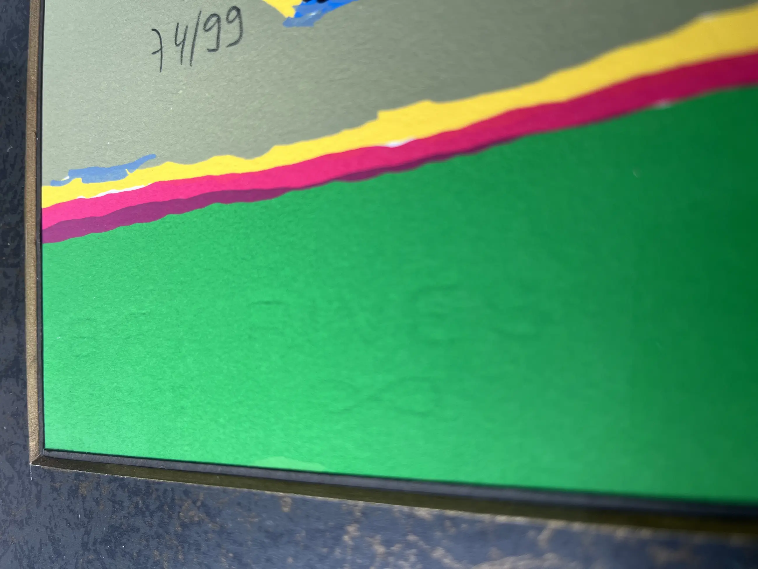 Werk zit achter ontspiegeld glas, voor minimalisatie van reflecties,