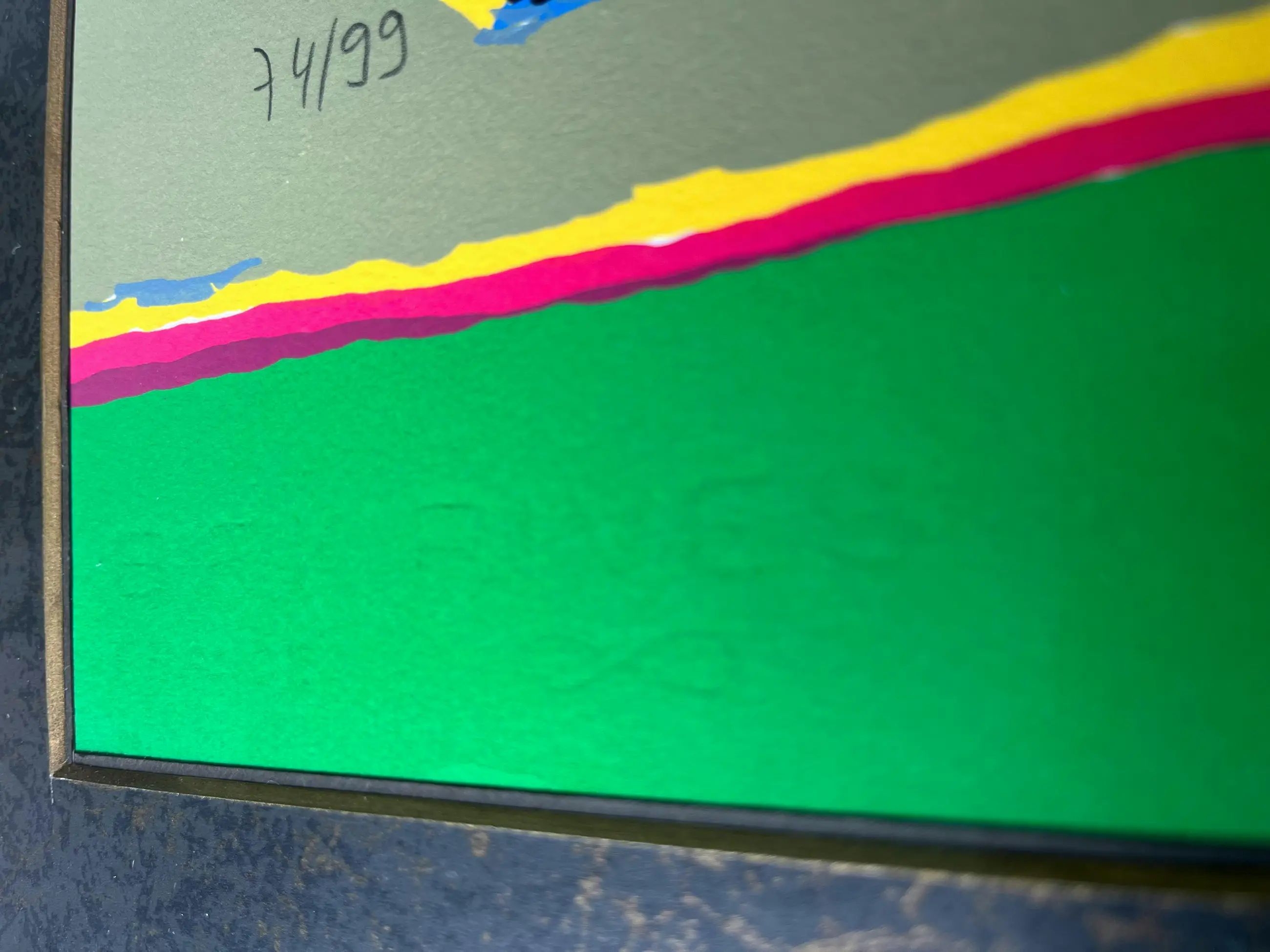 Werk zit achter ontspiegeld glas, voor minimalisatie van reflecties,