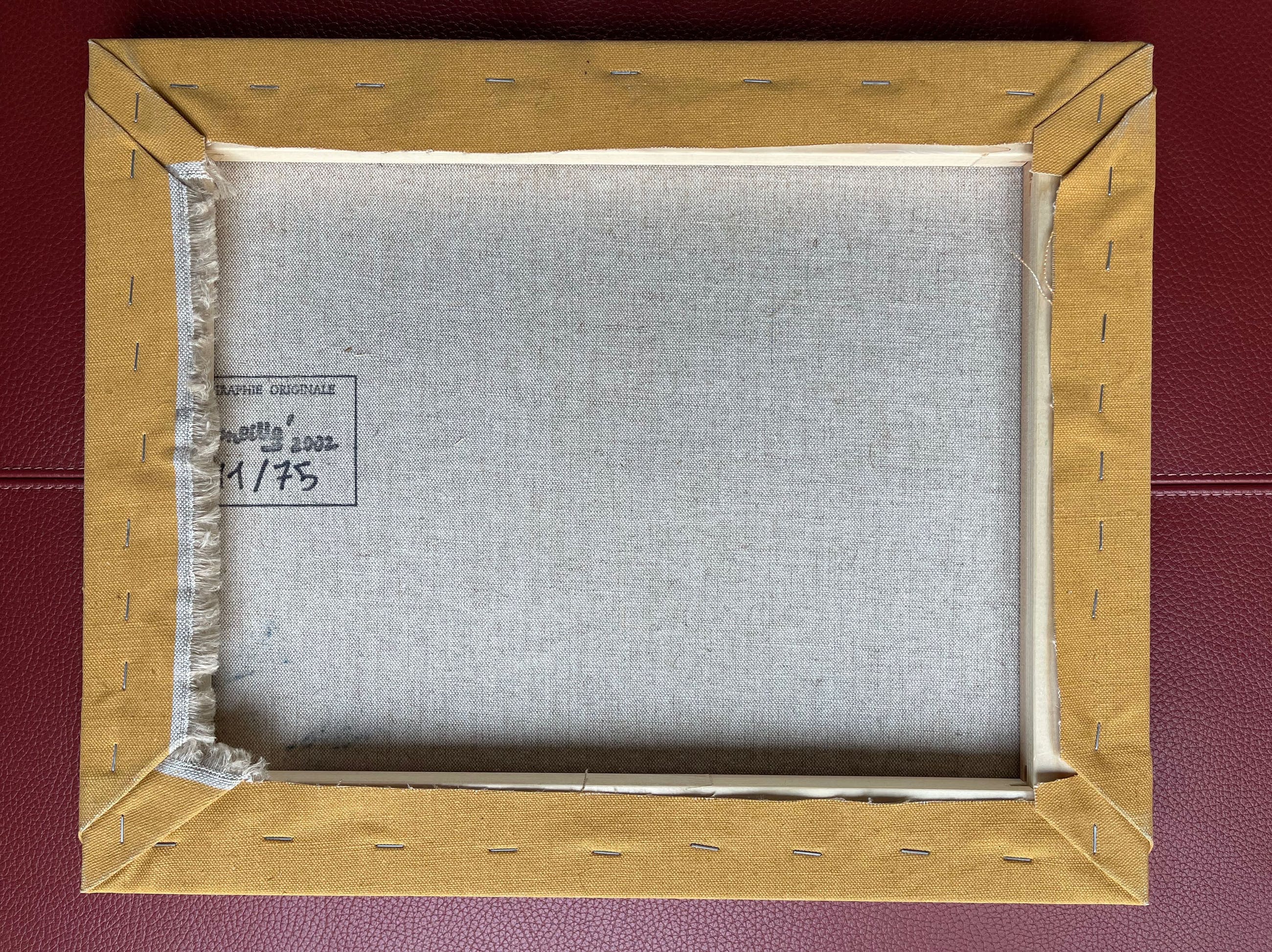 Het betreft een editie op 75 exemplaren, gehandtekend en gedateerd door Corneille vooraan met zwarte marker. Achteraan gestempeld en genummerd 11/75. Het doek is op een houten chassis getrokken met afmetingen 41 x 33,5 cm