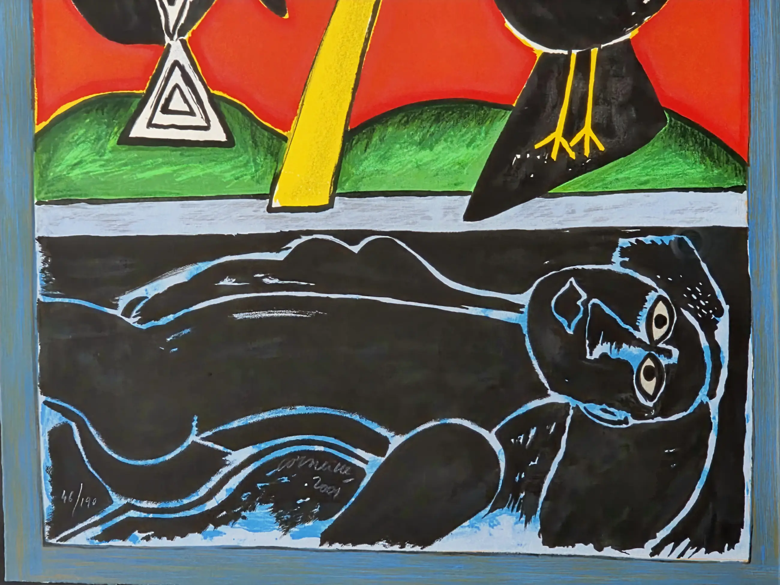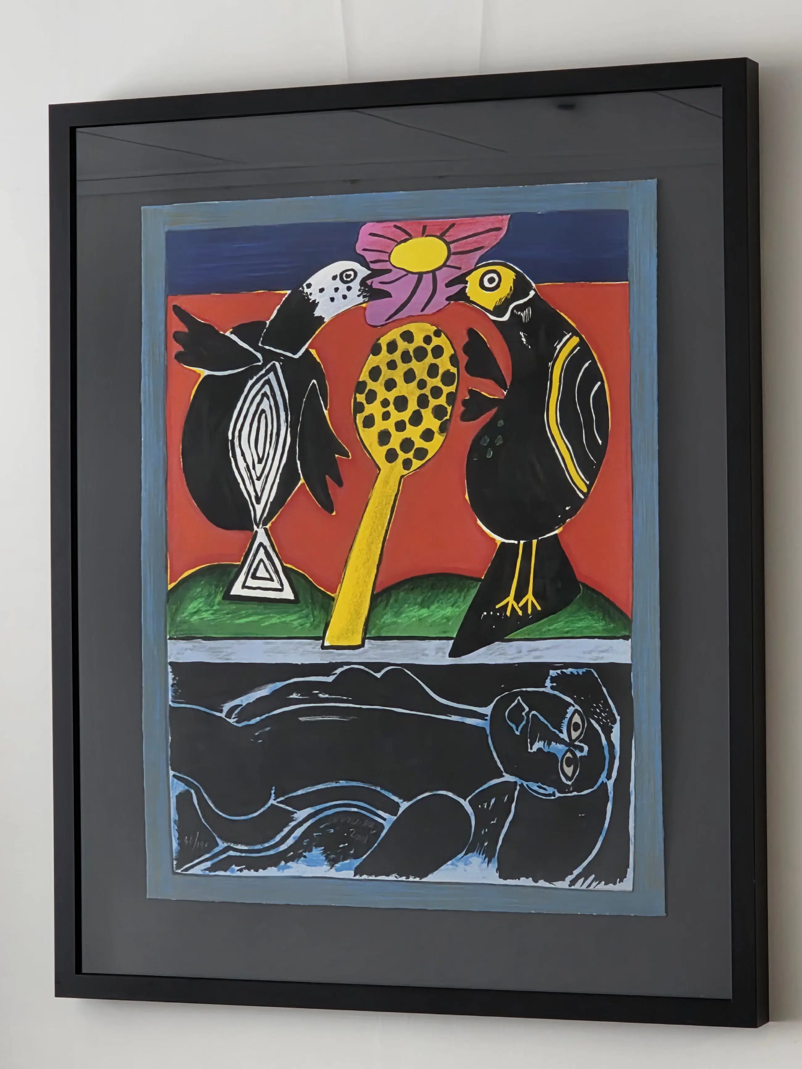 Origineel en gelimiteerd werk. Mooie lijst. Zwevend Ingelijst Handgesigneerd, Genummerd en gedateerd door Corneille.