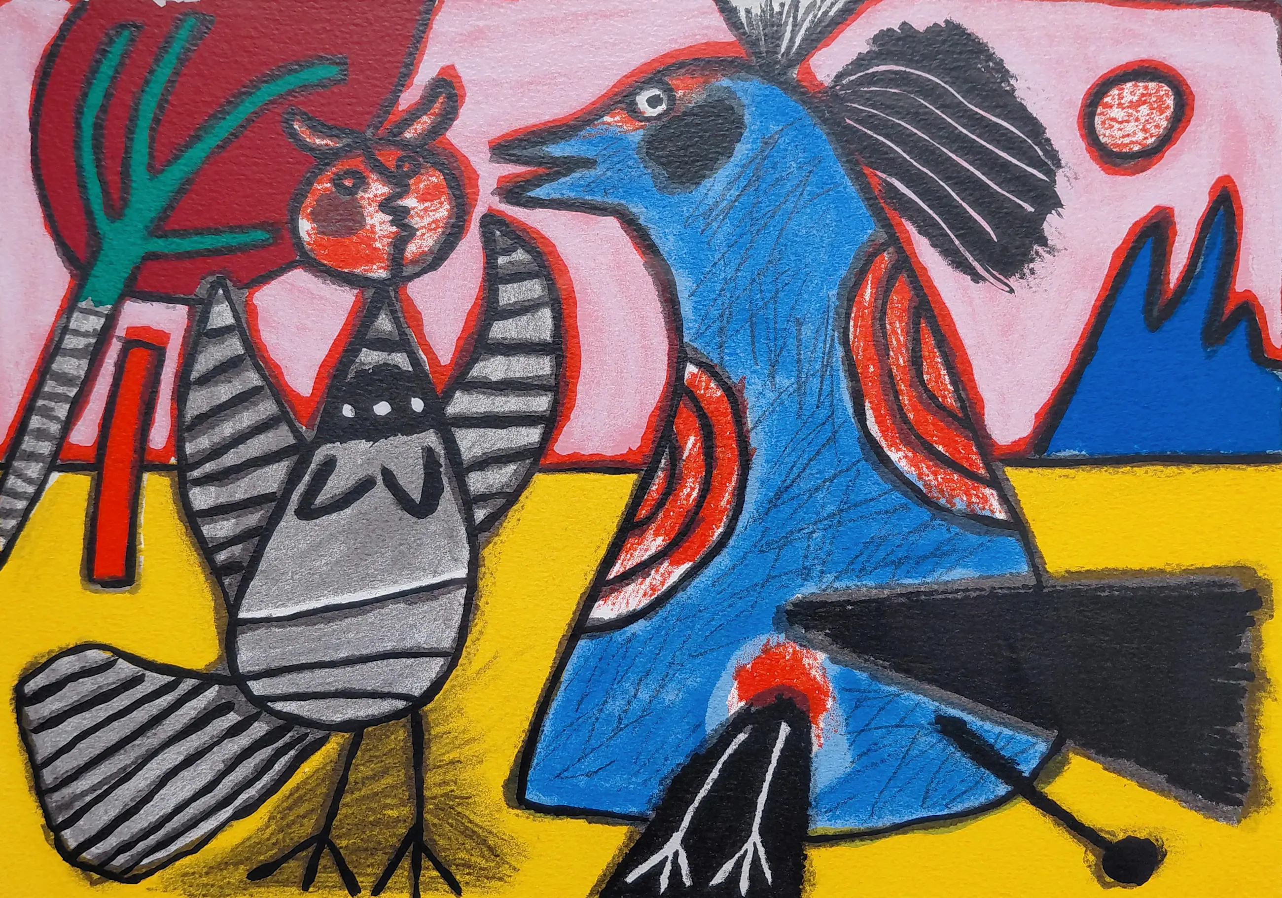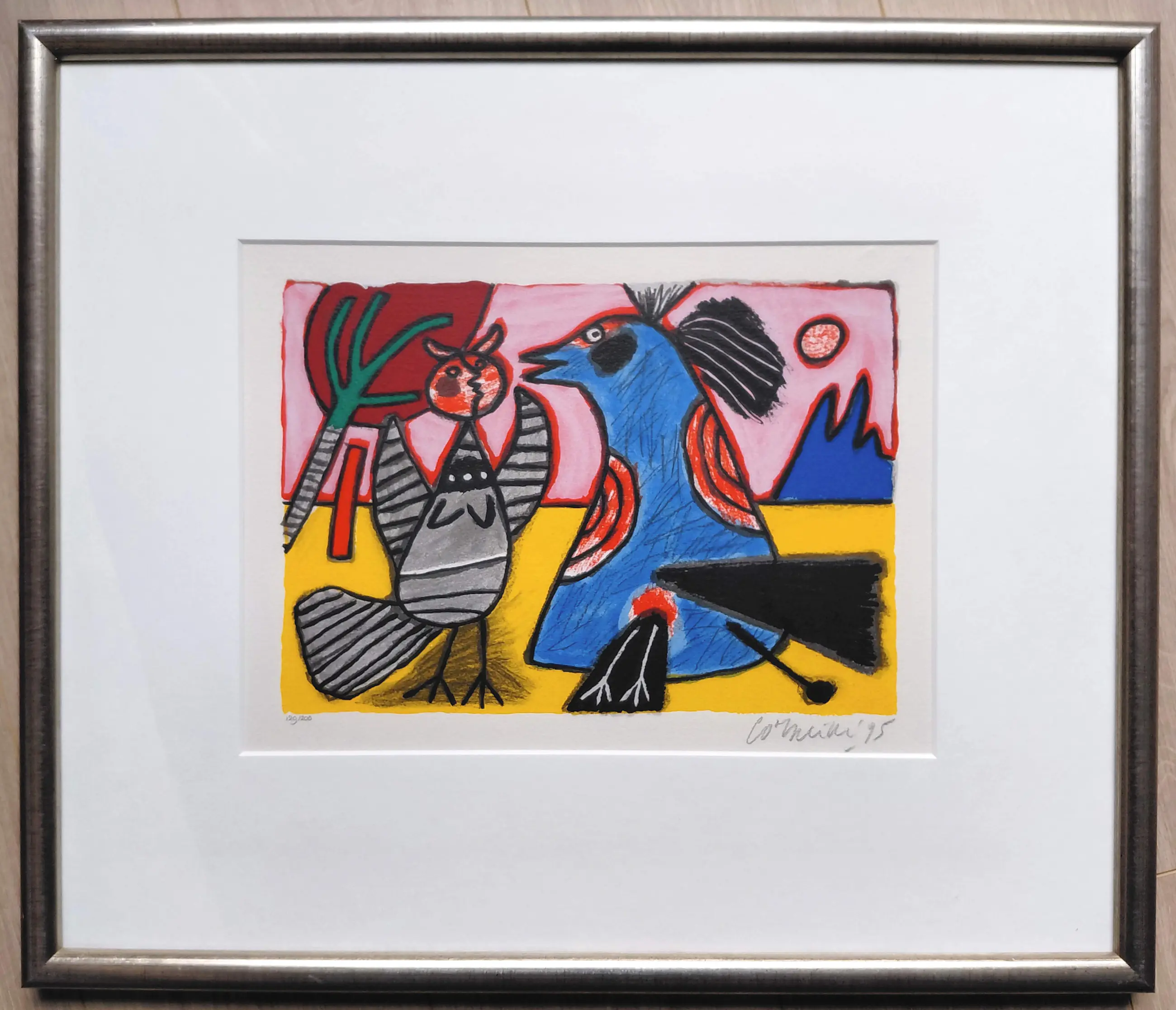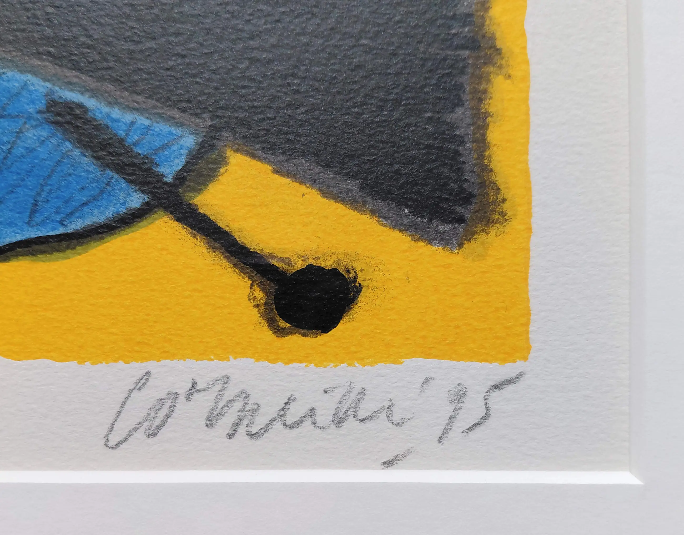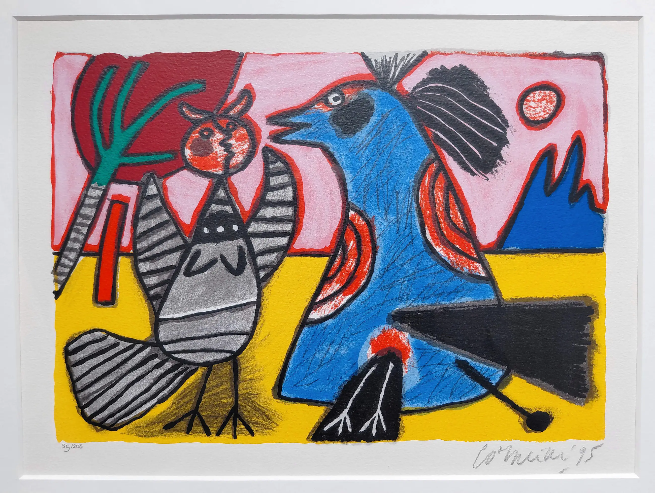 Mooi, kleurrijk werk van Corneille. Zeefdruk op geschept papier, met potlood gesigneerd, gedateerd (‘95) en genummerd (129/200). In nette lijst, achter glas en met smetteloos, zuurvrij passe-partout. Alles in zeer goede conditie.