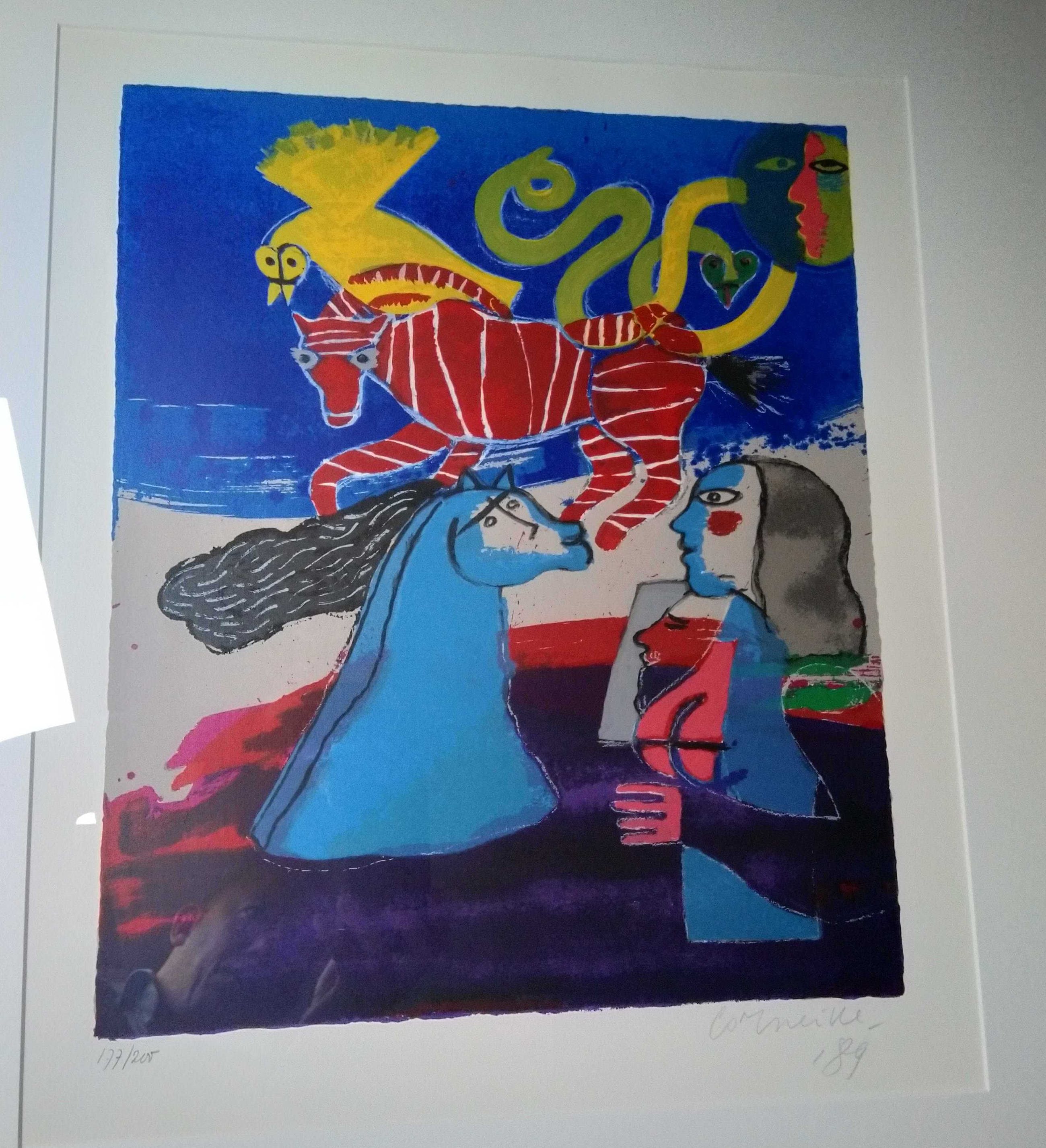 Zeer kleurrijke zeefdruk van Corneille, gesigneerd en genummerd.