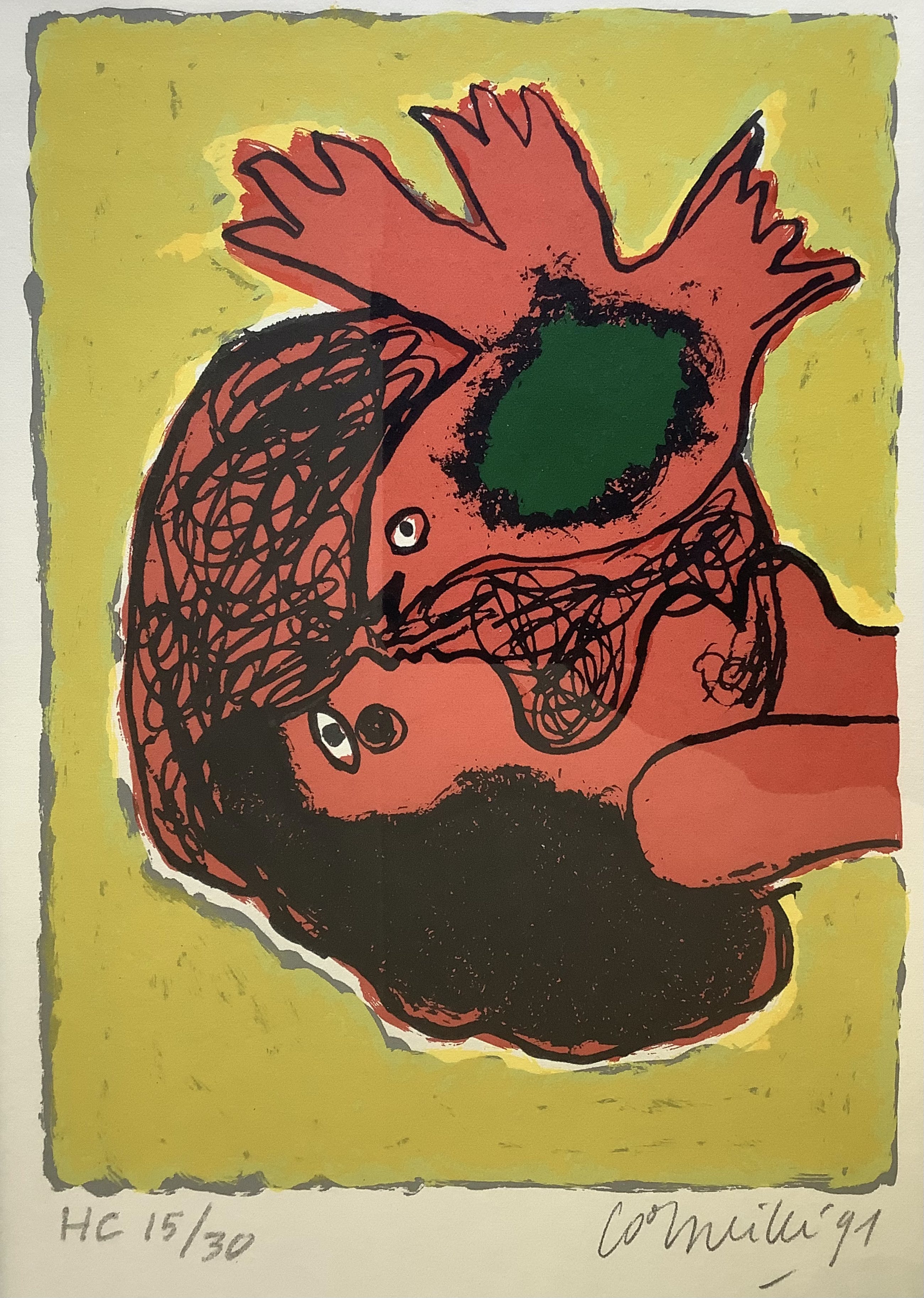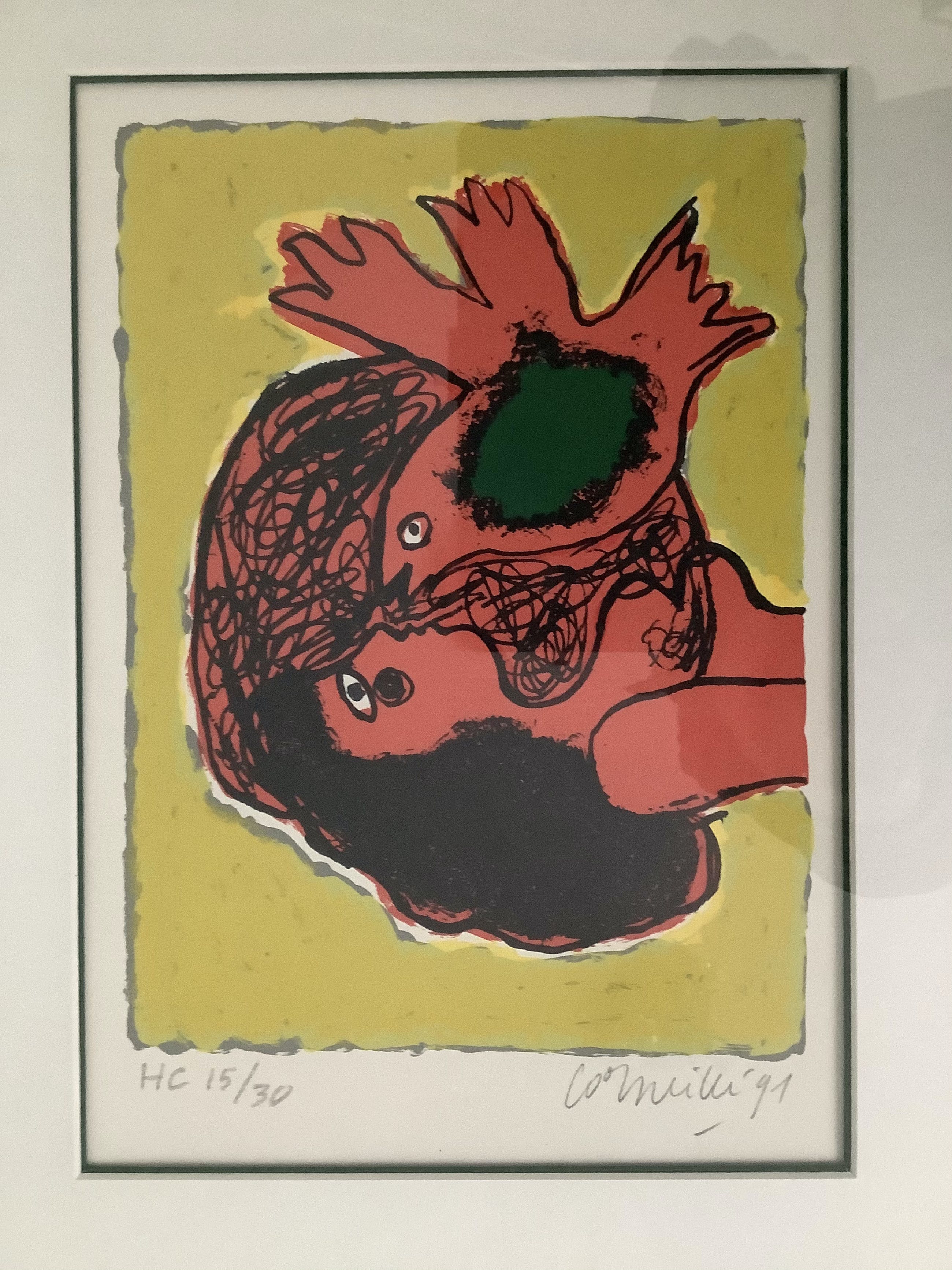 Betreft kleine zeefdruk van Corneille, wordt niet vaak aangeboden.