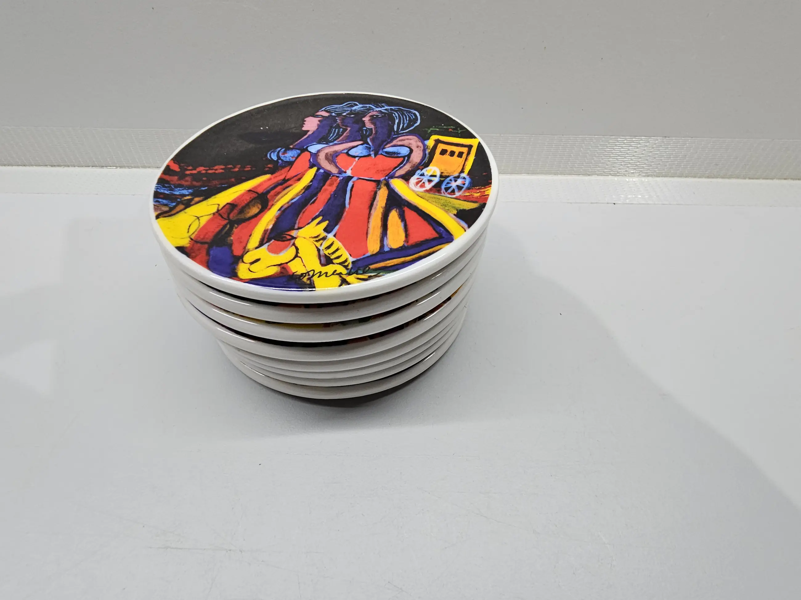 8 onderzetters met diverse afbeeldingen uit het werk van Corneille.
