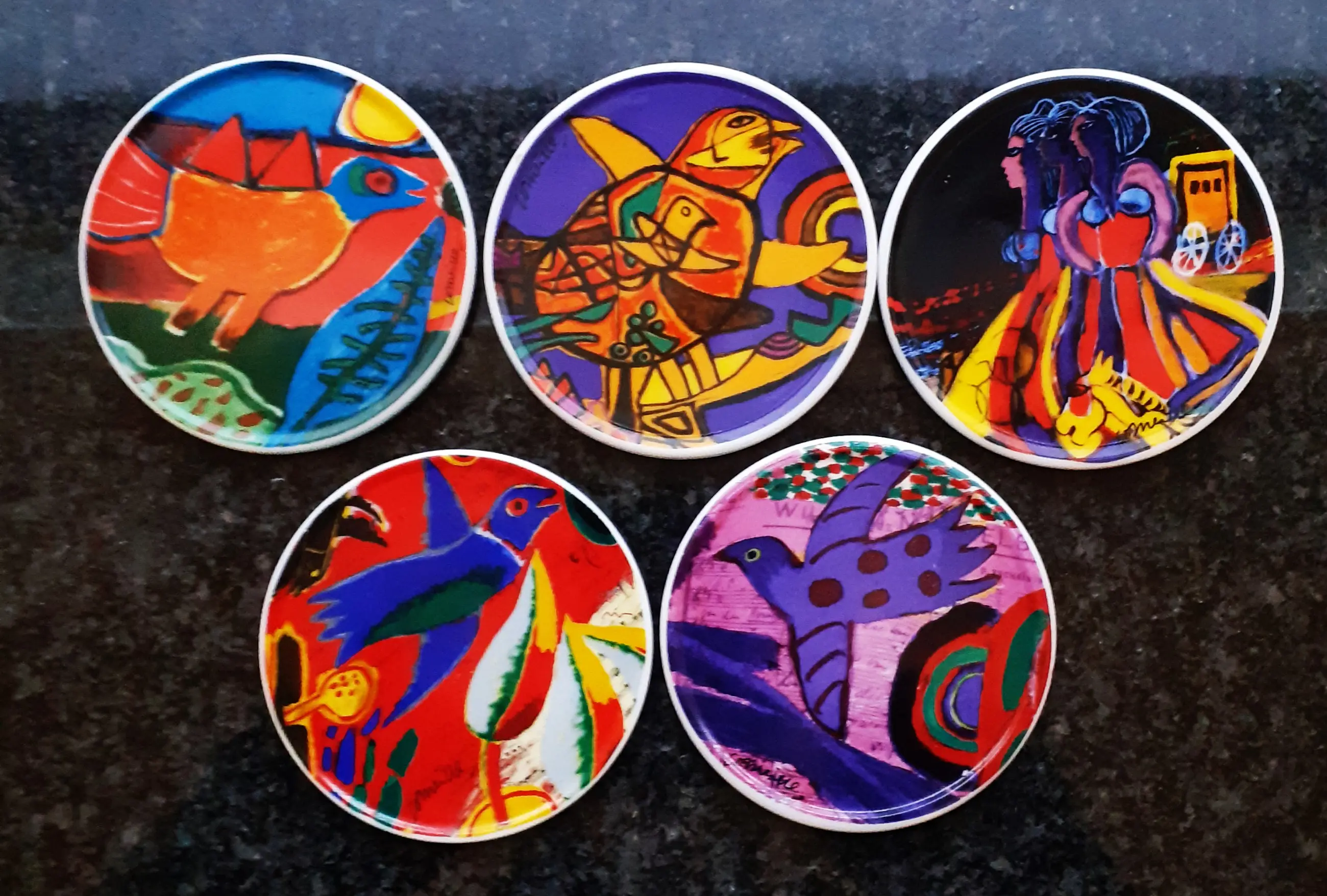 Vijf prachtige, kleurrijke, verschillende onderzetters ontwerp Corneille