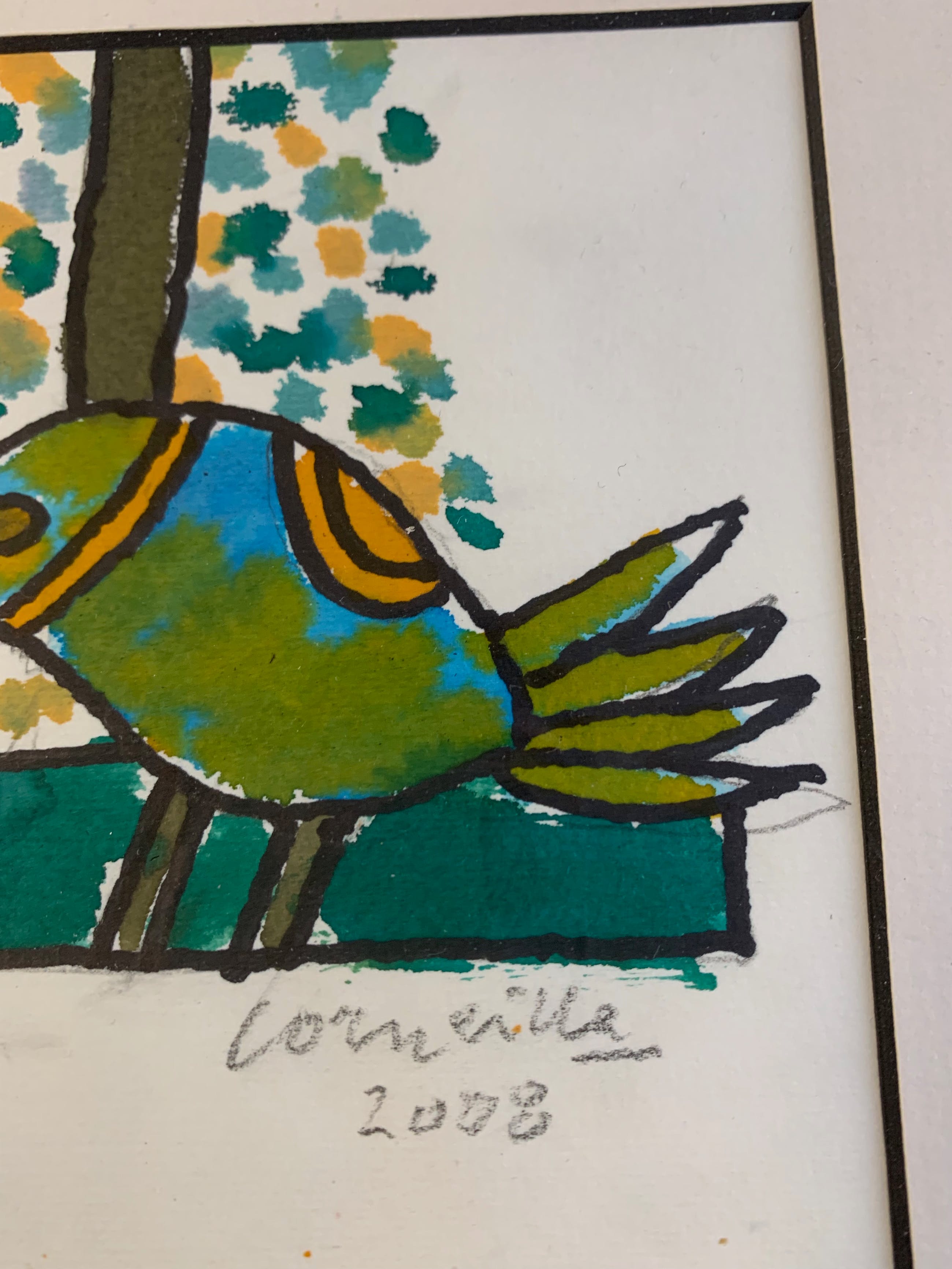Following in the footsteps of Miro, Matisse or Gauguin, Guillaume Corneille here creates a colorful work between figuration and abstraction.
