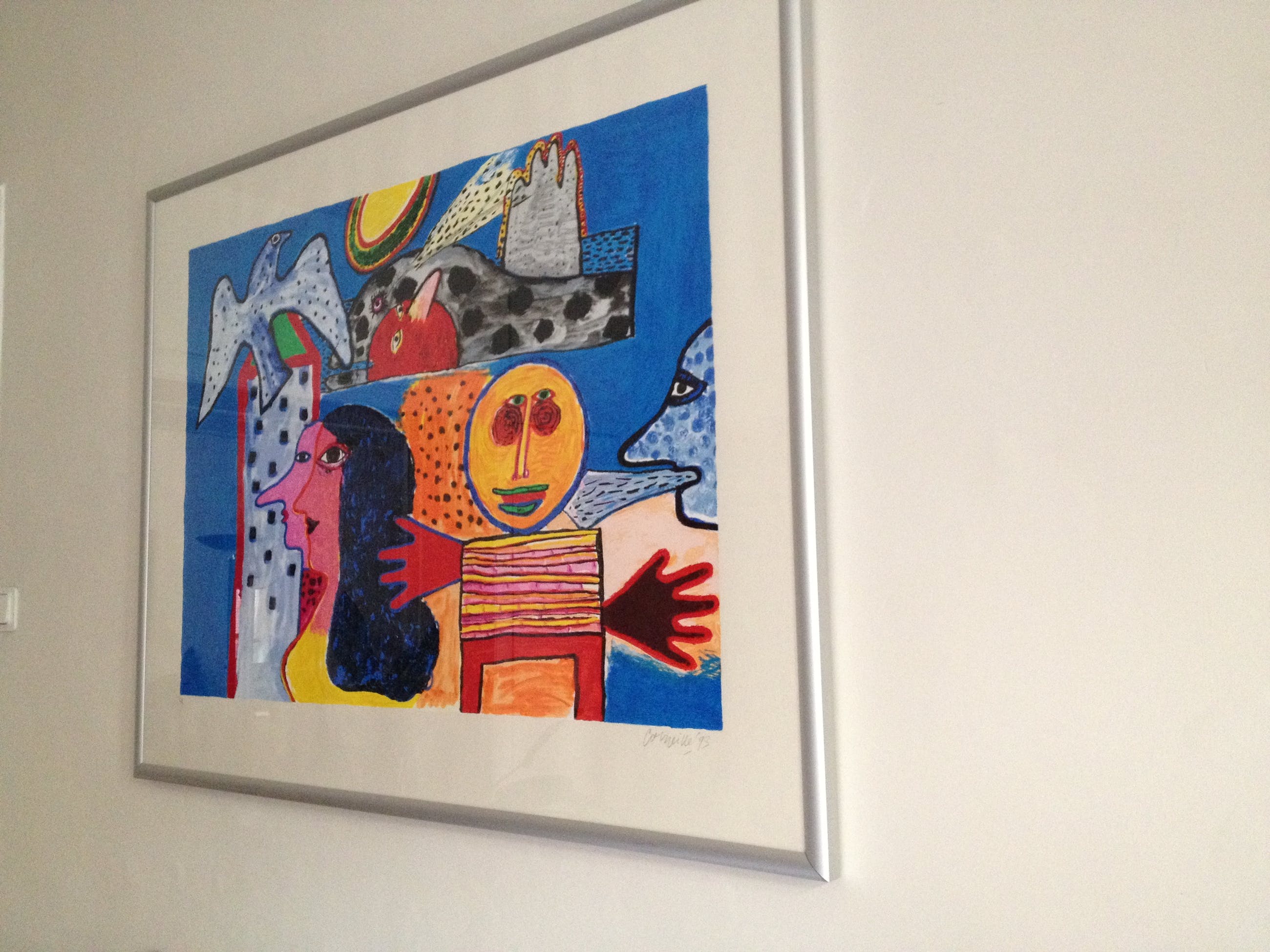 Gedrukt op zwaar handgeschept papier in aluminium lijst. Kan direct aan de muur.