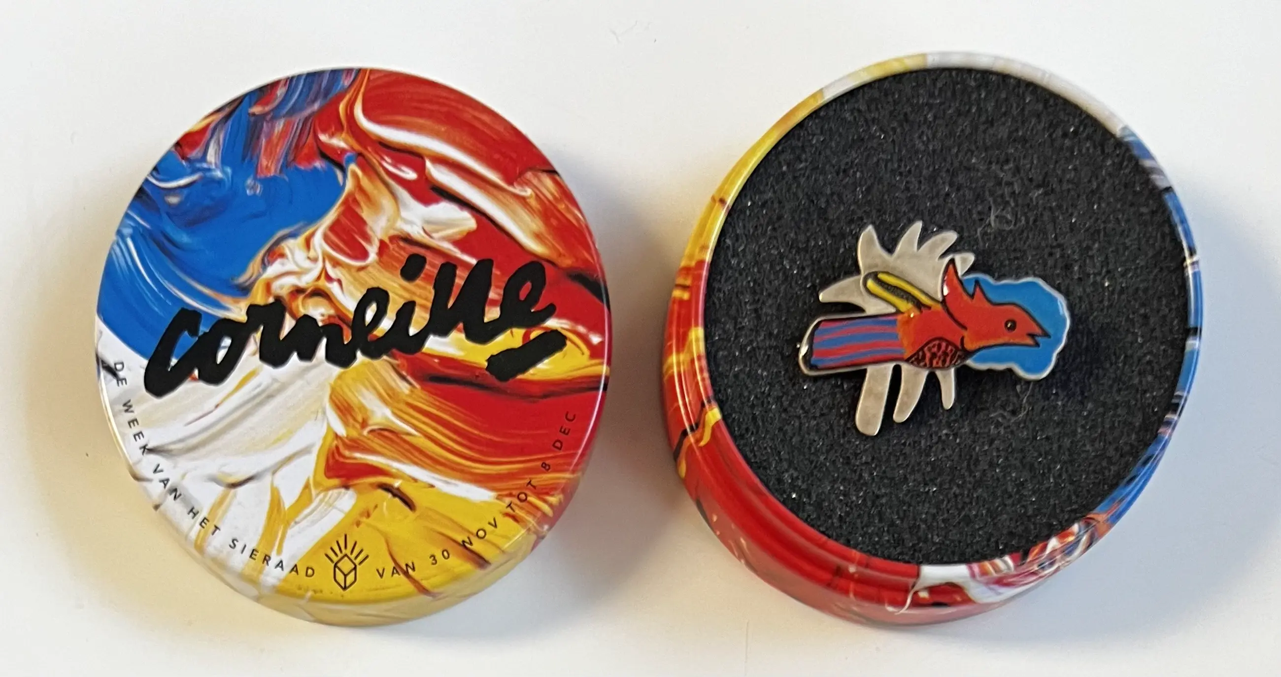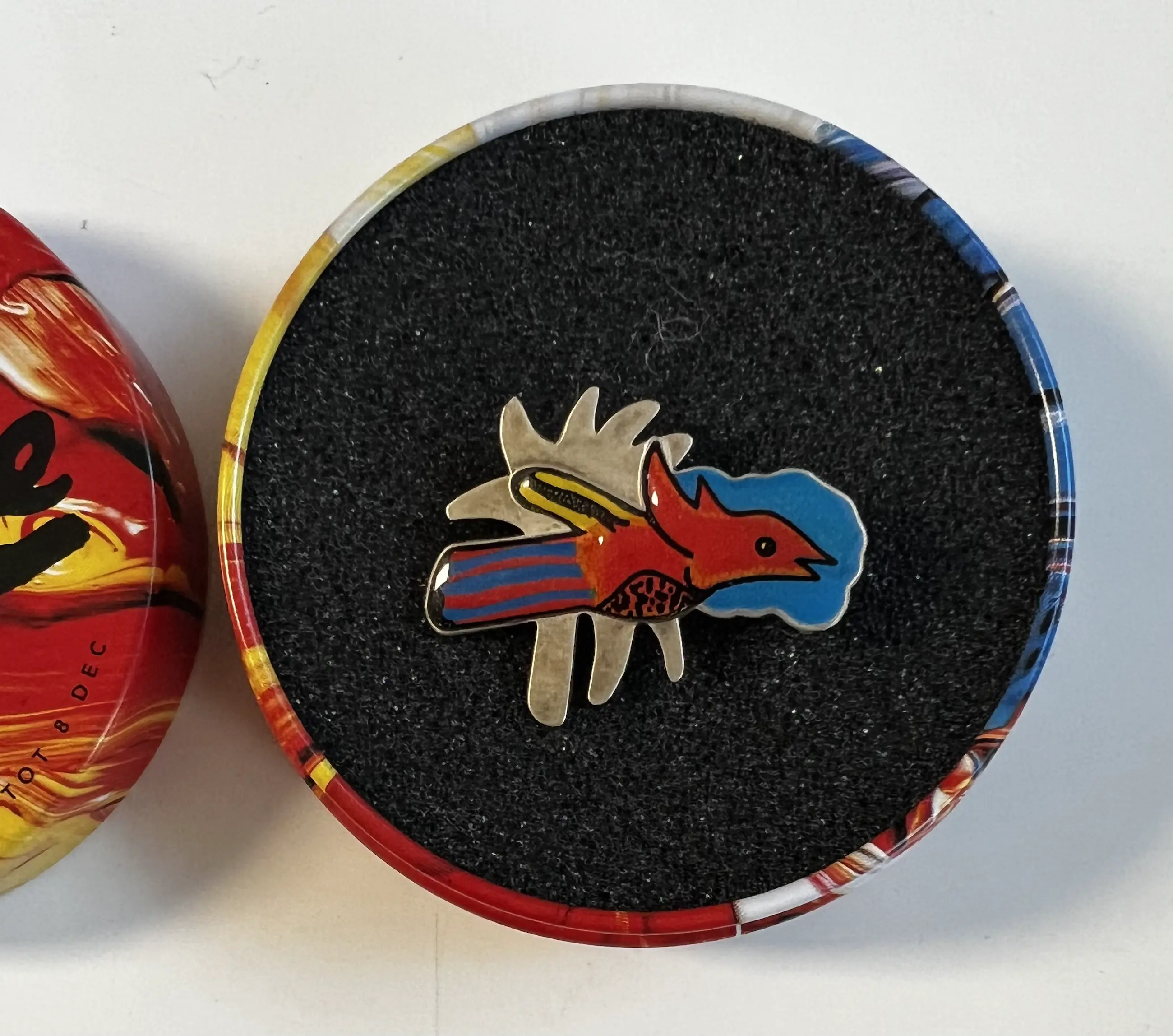 PIN'S Guillaume Corneille (1922-2010) De rode vogel Gegraveerde signatuur 2002 Cobra Zeldzaam - Afmetingen: 3,7 x 2,8 cm. Naaldmaat: 1,7 cm - Goede staat met verdonkering op de rug. Doos : 7,5 x 3 cm.