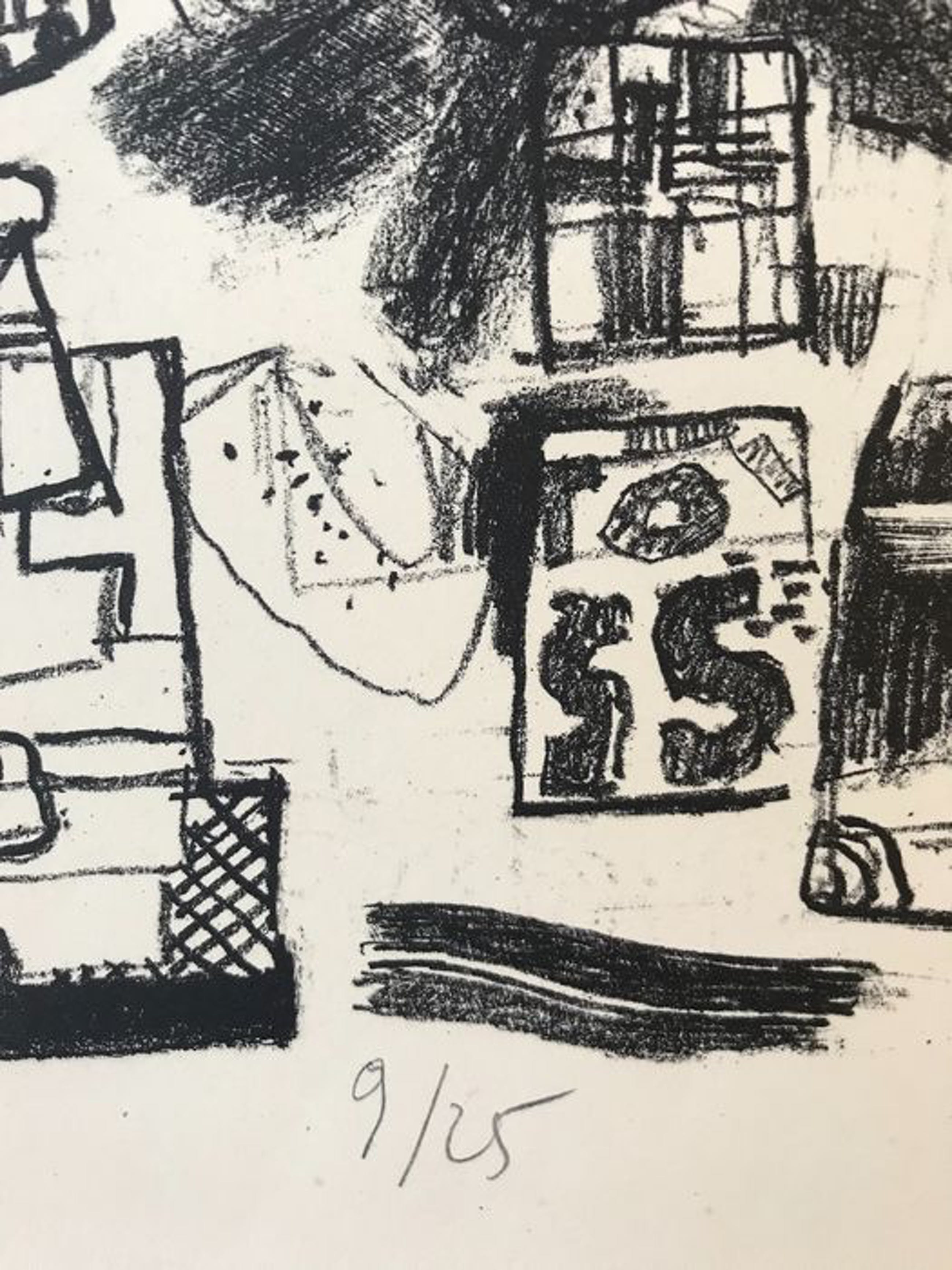 Zeldzame originele litho in zwart-wit, genummerd, met de hand gesigneerd, getiteld, gedateerd en met referentie.