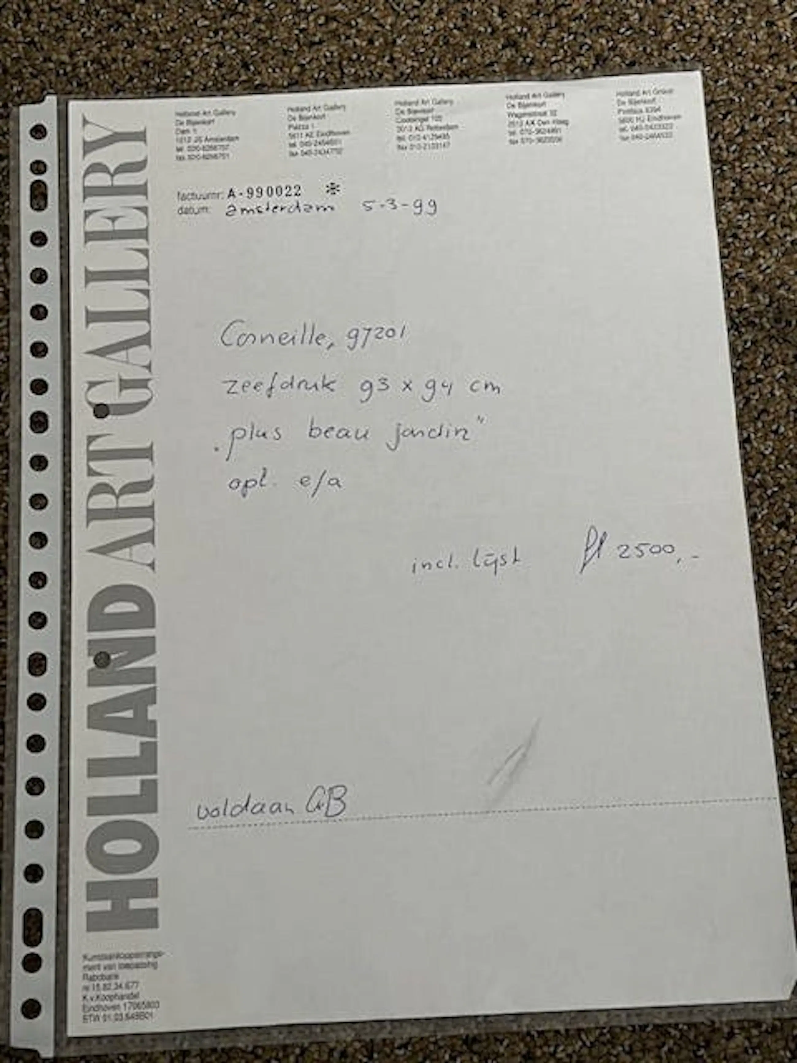 Ben u niet in staat om een werk zelf af te halen, dan kunt u een koeriersdienst inschakelen om het werk te laten afhalen. Klik hier voor meer informatie over hoe dit werkt en bekijk de tarieven.