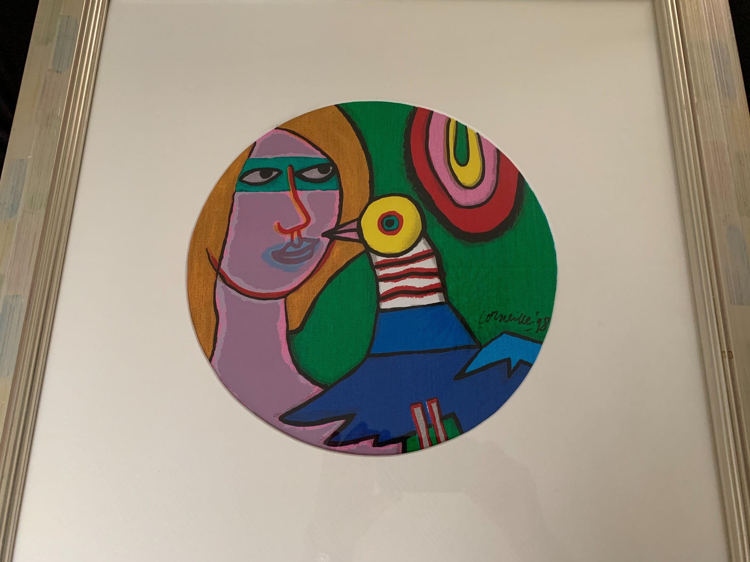 Kleurrijk werk van Corneille, Poeme au Soleil gedrukt op linnen. Zeer beperkte oplage en professioneel ingelijst.
