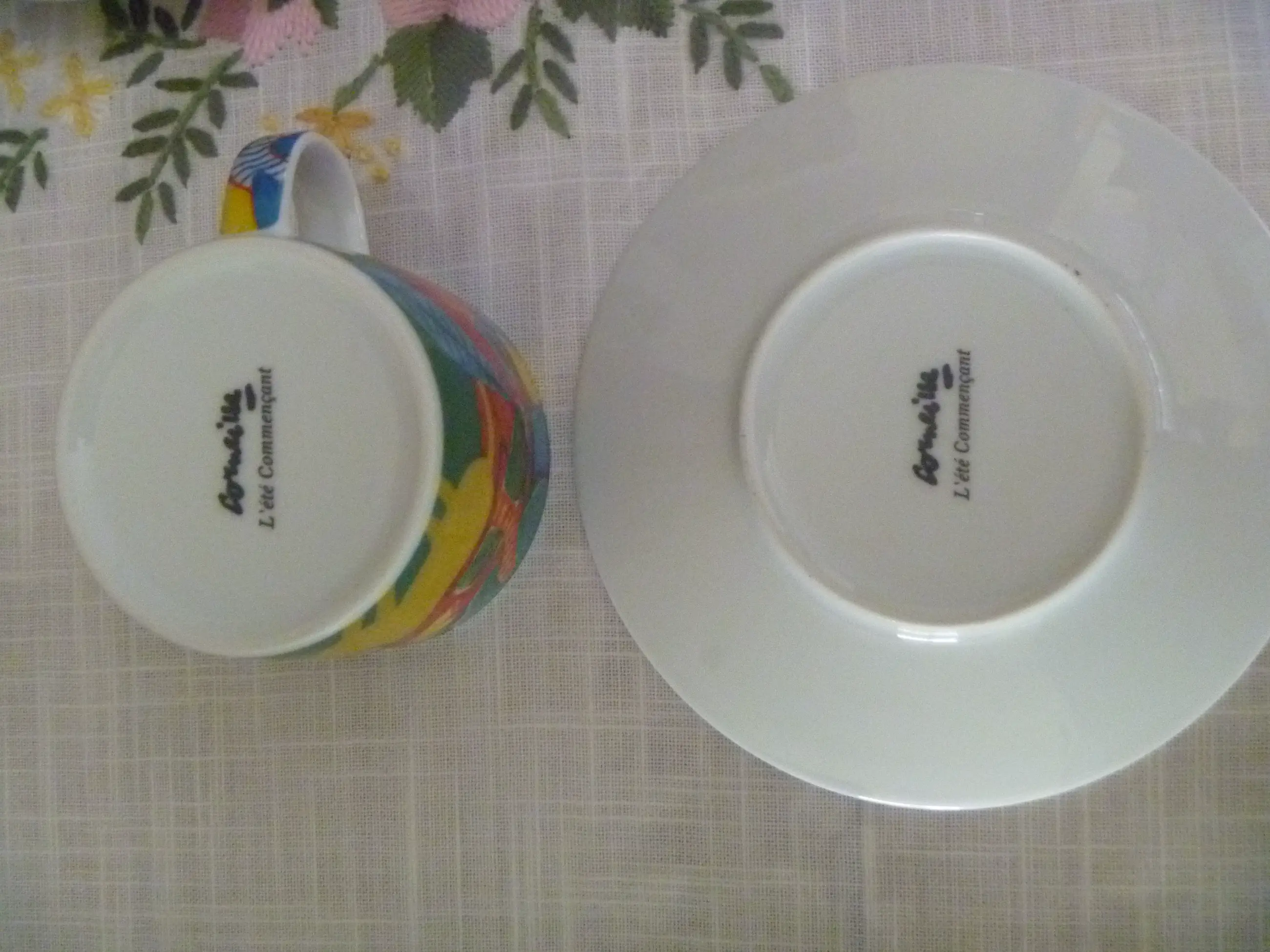 -Drukgesigneerd en getiteld in de afbeelding en op de onderkant van de kopjes