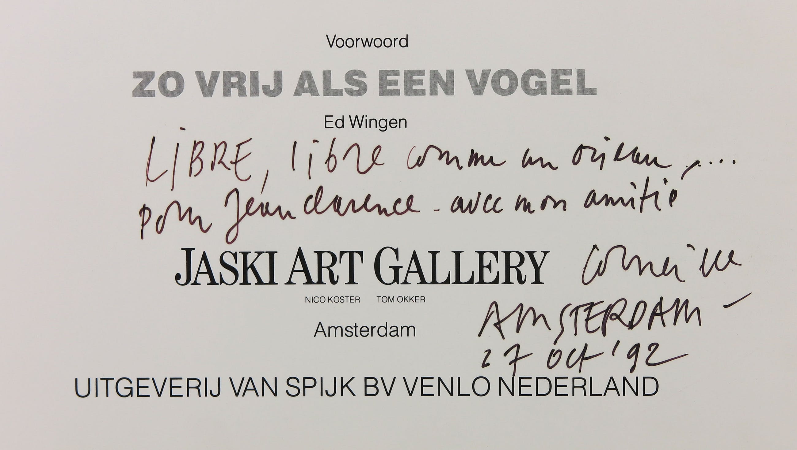 Met op de eerste pagina van het boek een handgeschreven, gedateerde en gesigneerde persoonlijke boodschap door Corneille.