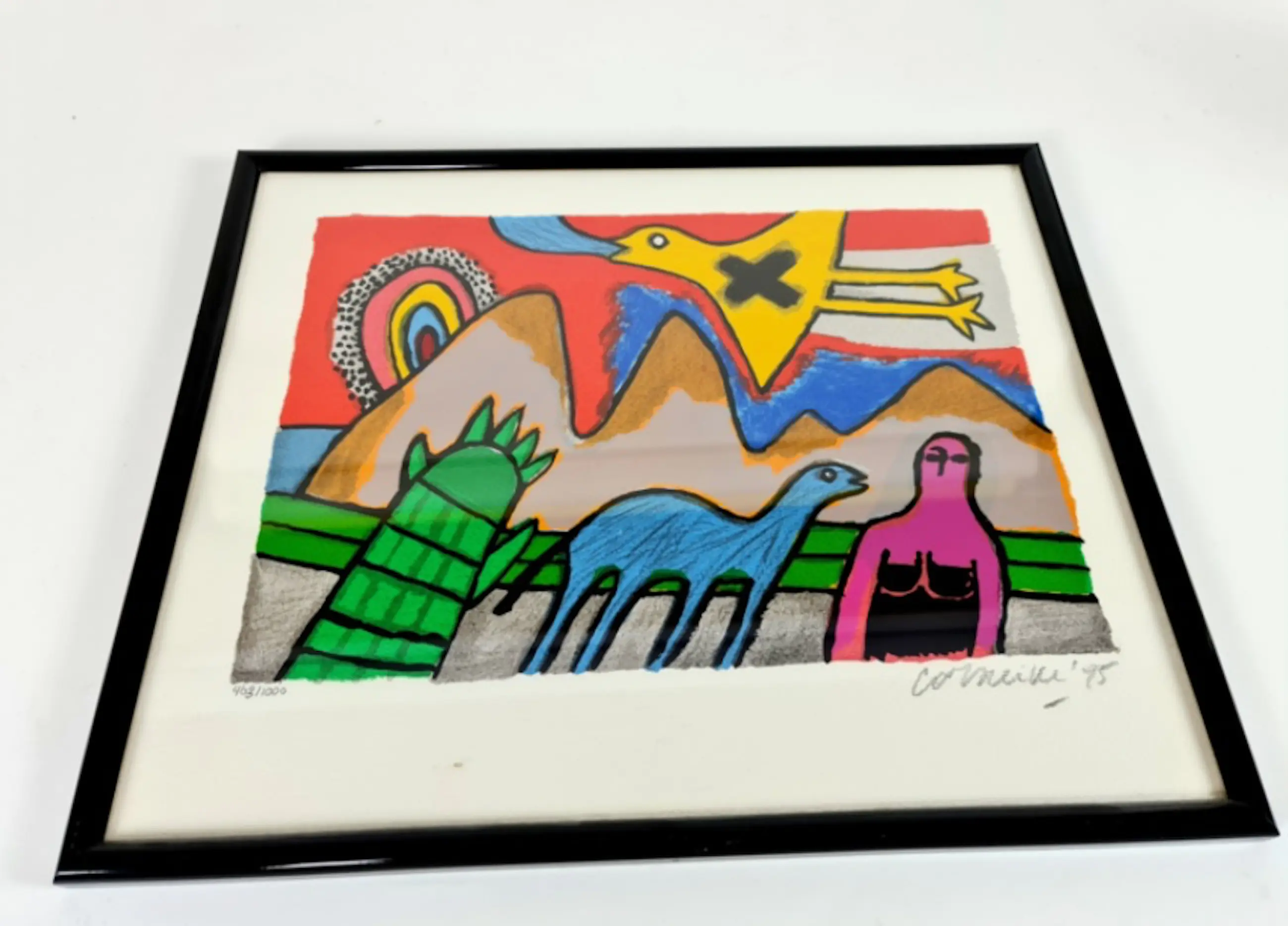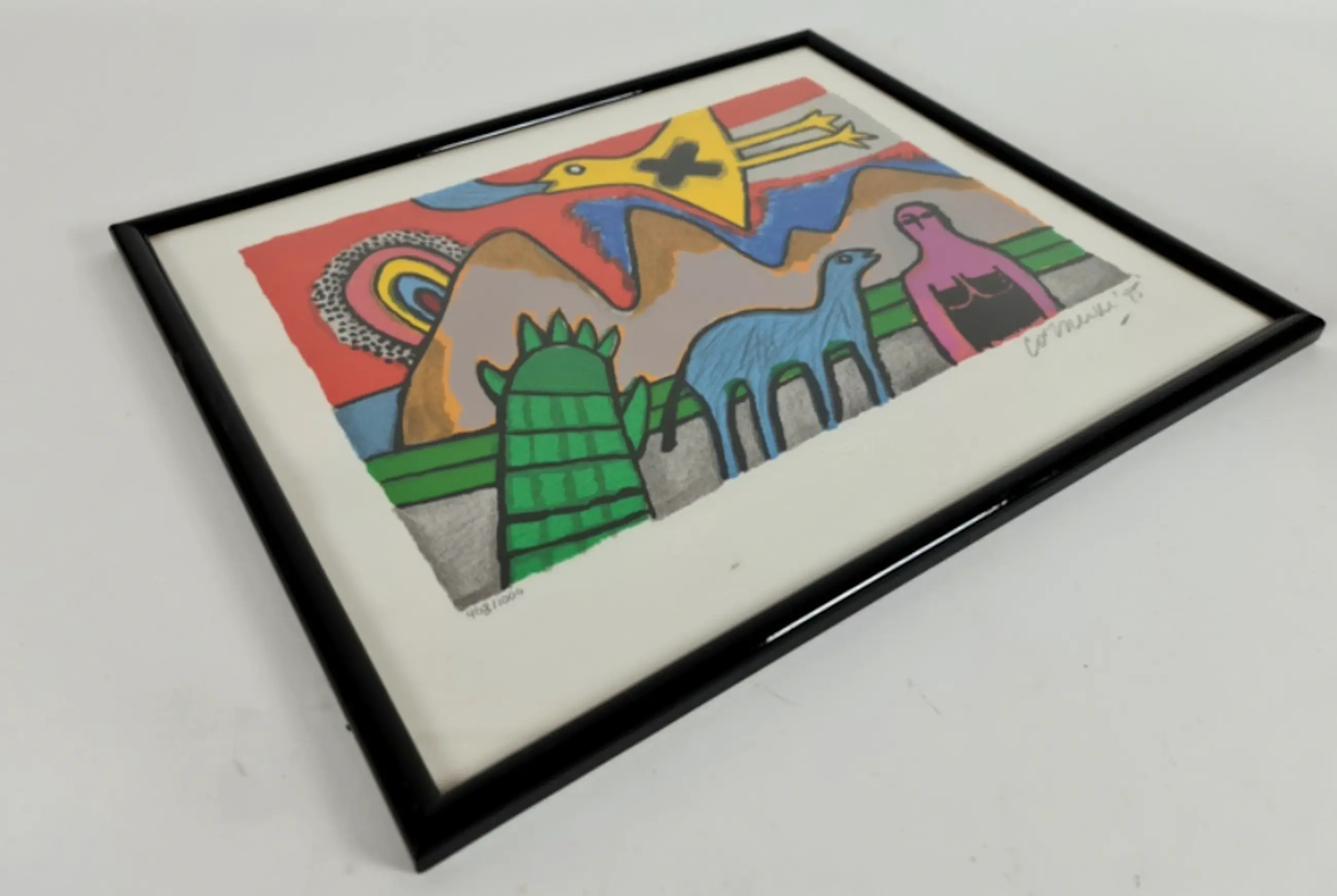 "Le Voyage" is een meesterwerk van de bekende Nederlandse kunstenaar Corneille. Zijn kenmerkende stijl, geïnspireerd door Cobra-kunstbeweging, komt volledig tot uiting in dit kleurrijke kunstwerk. De levendige kleuren en speelse vormen creëren een visuele ervaring die zowel boeiend als intrigerend is.