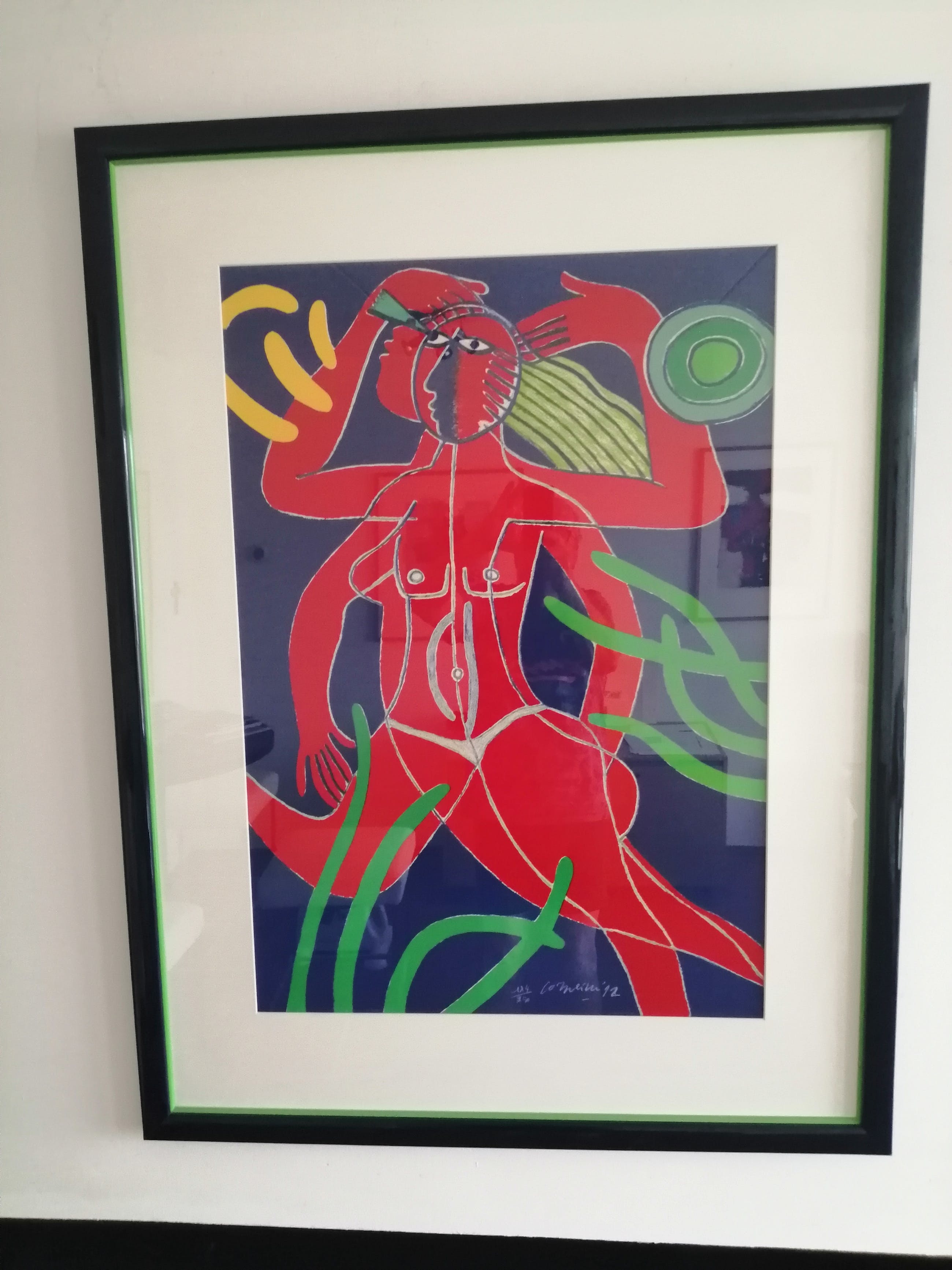 Zeer mooie grote zeefdruk in prachtige lijst, echt puntgaaf