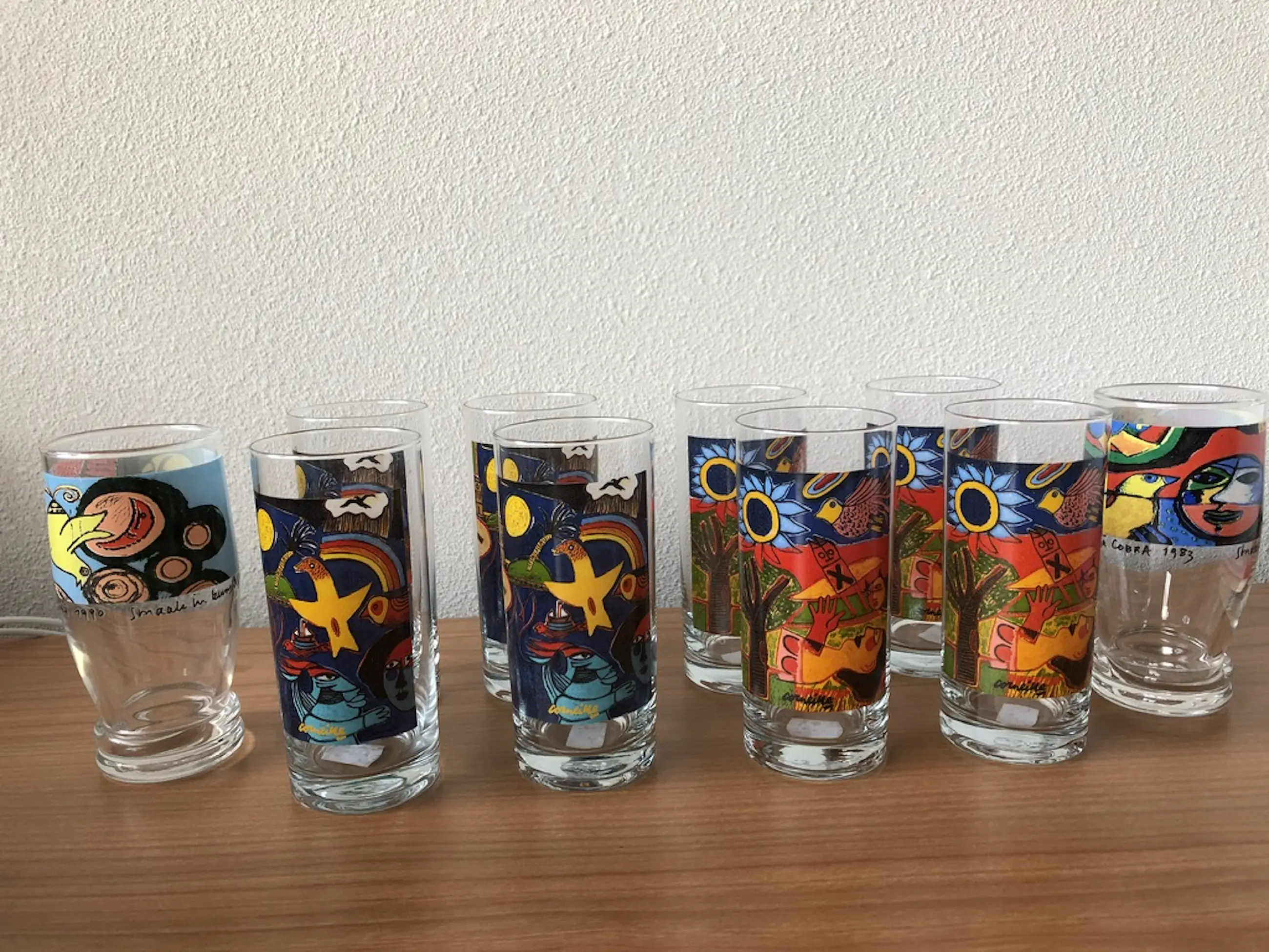 De glazen zijn 13 cm hoog en 6 cm breed.