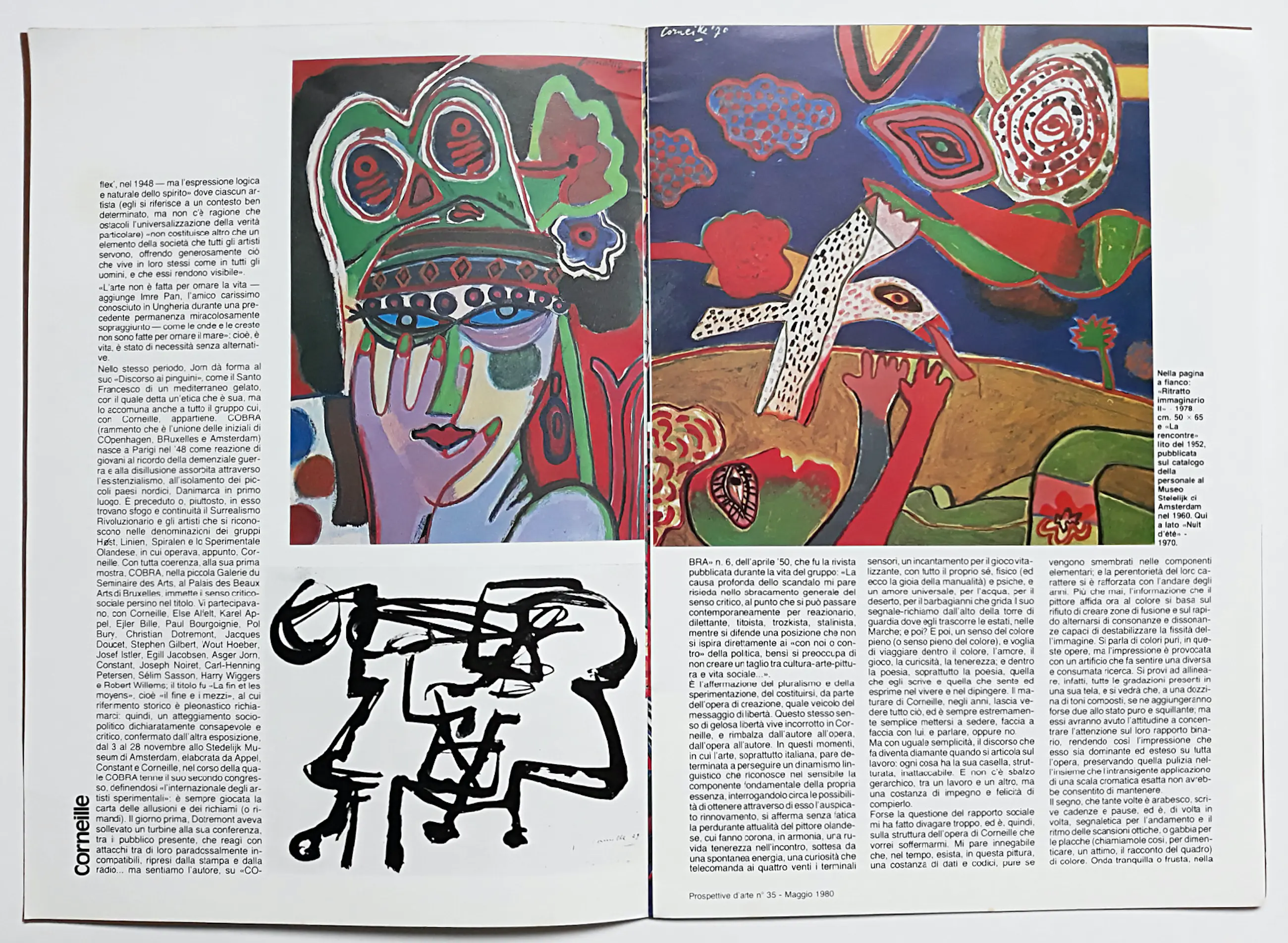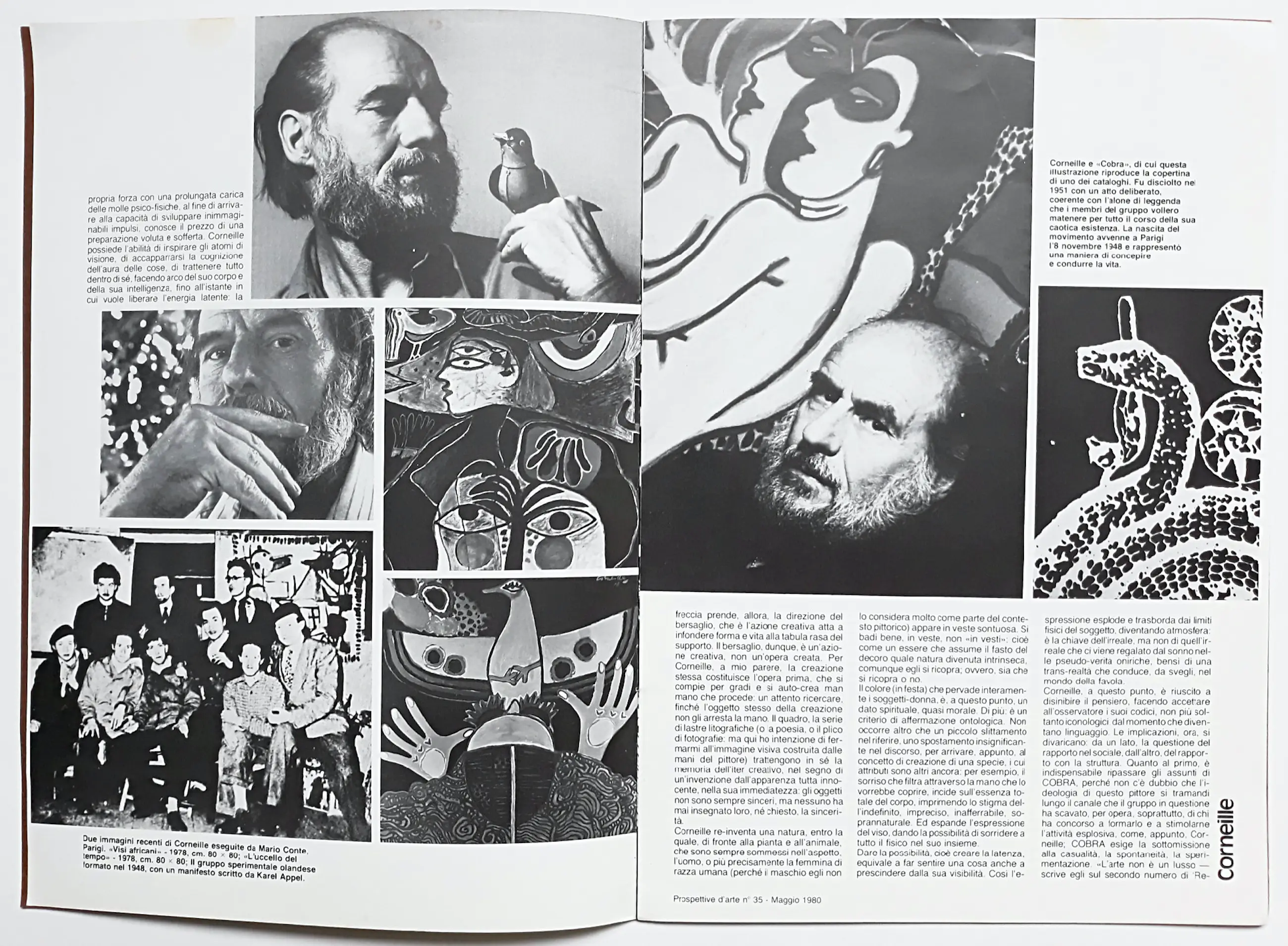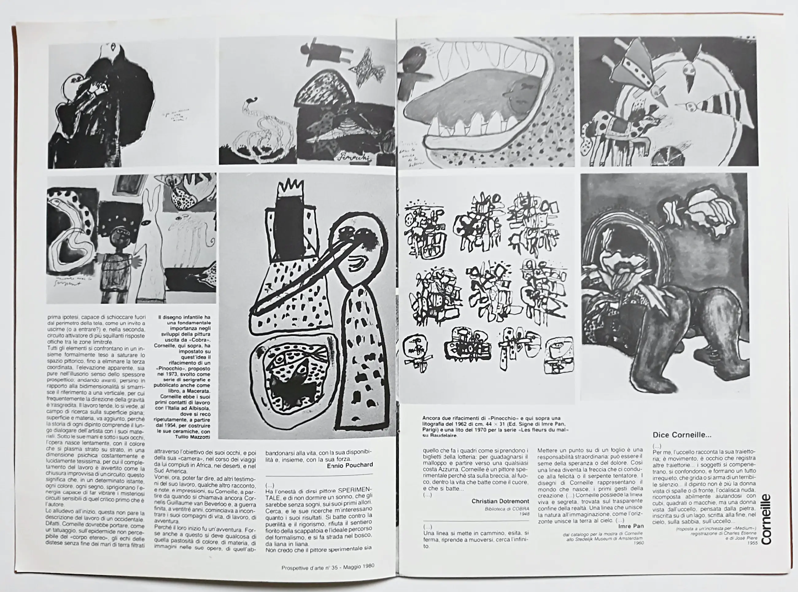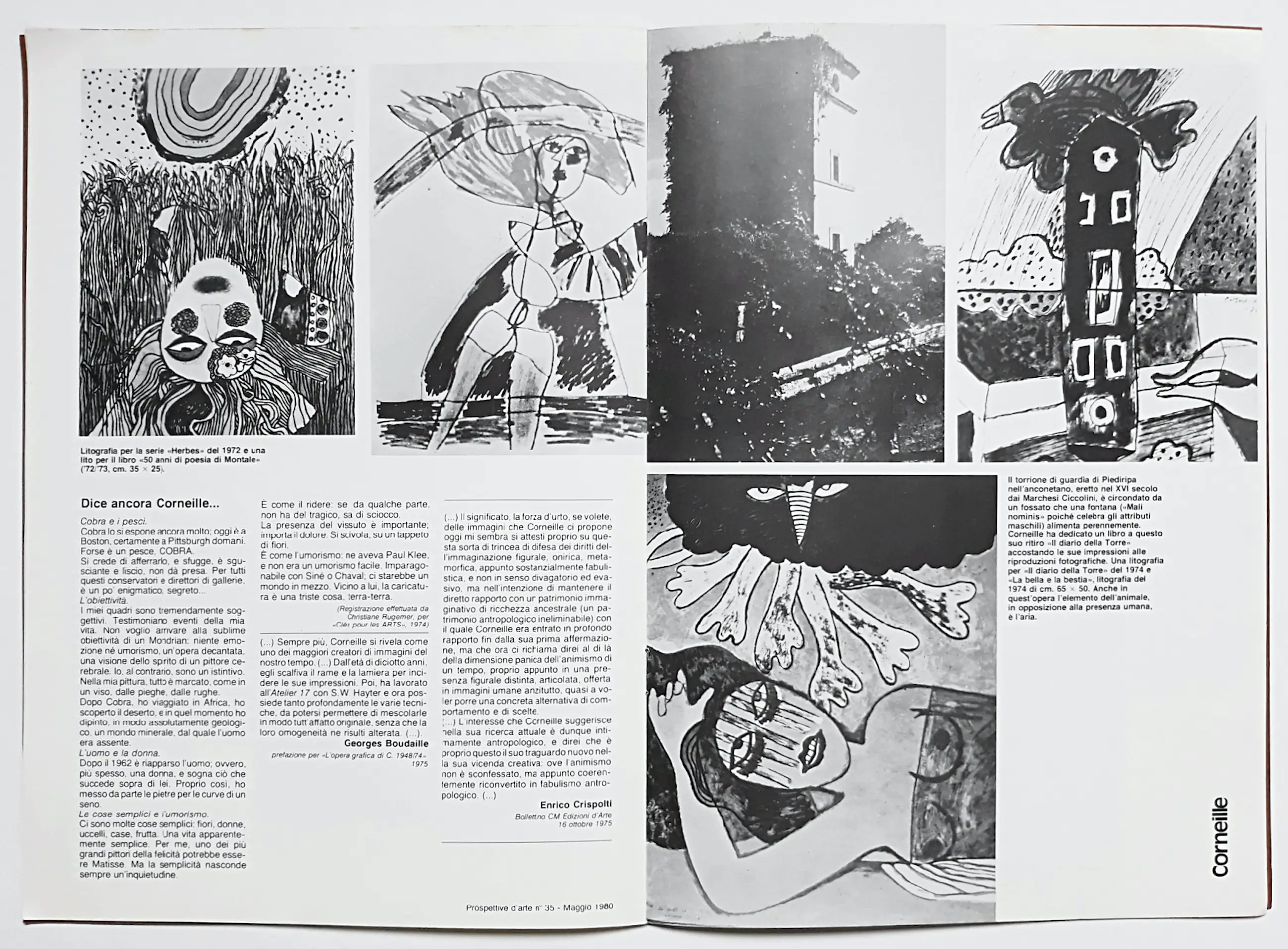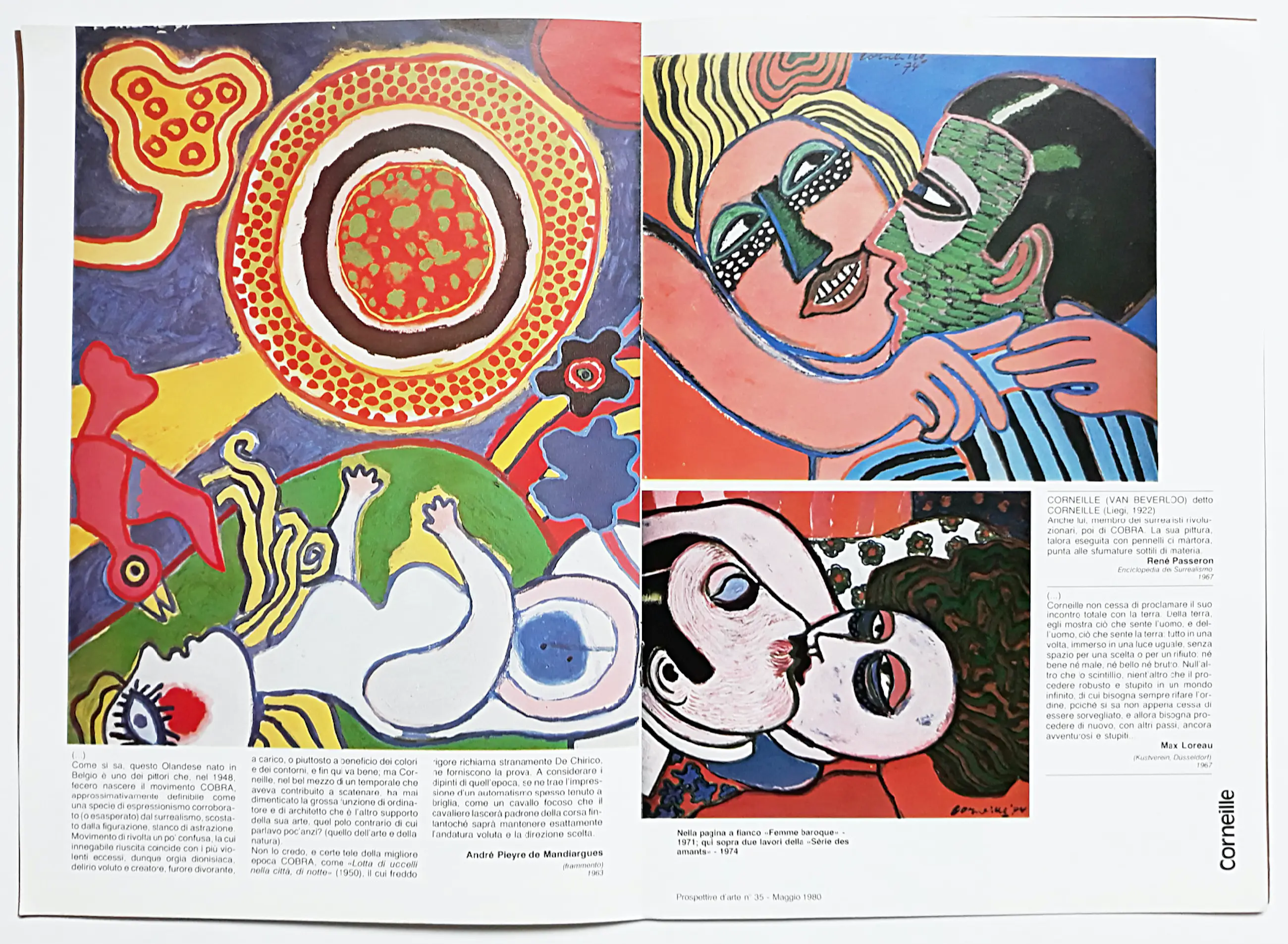 Italiaanse publicatie uit 1980 met veel foto’s van Corneille en zijn werk. Als bonus is dit exemplaar gesigneerd door Corneille, inclusief zijn adres in Parijs en met “hart. gegroet”. In goede conditie, slechts lichte verkleuring van de omslag en een paar kleine vlekjes op sommige bladzijden.