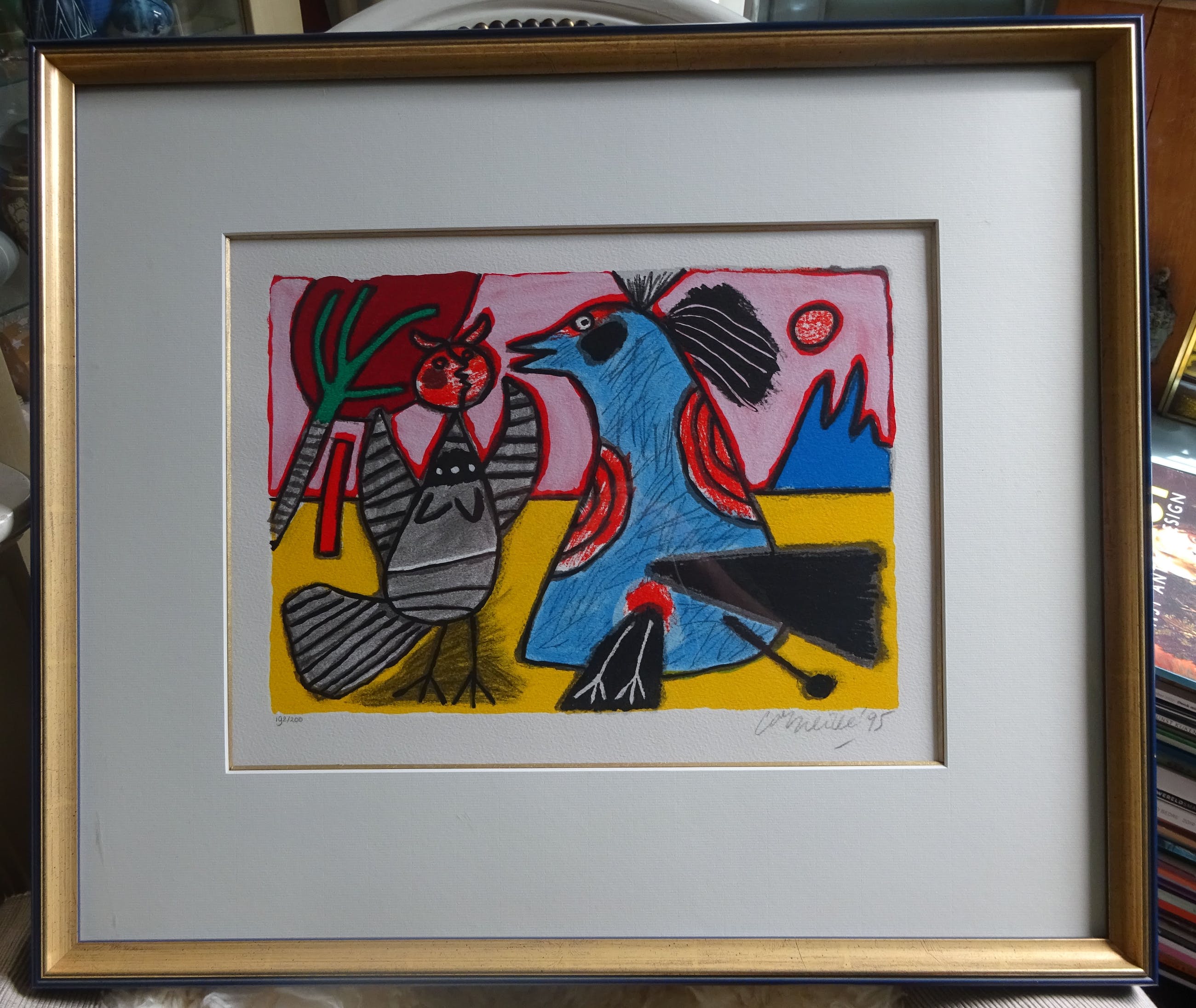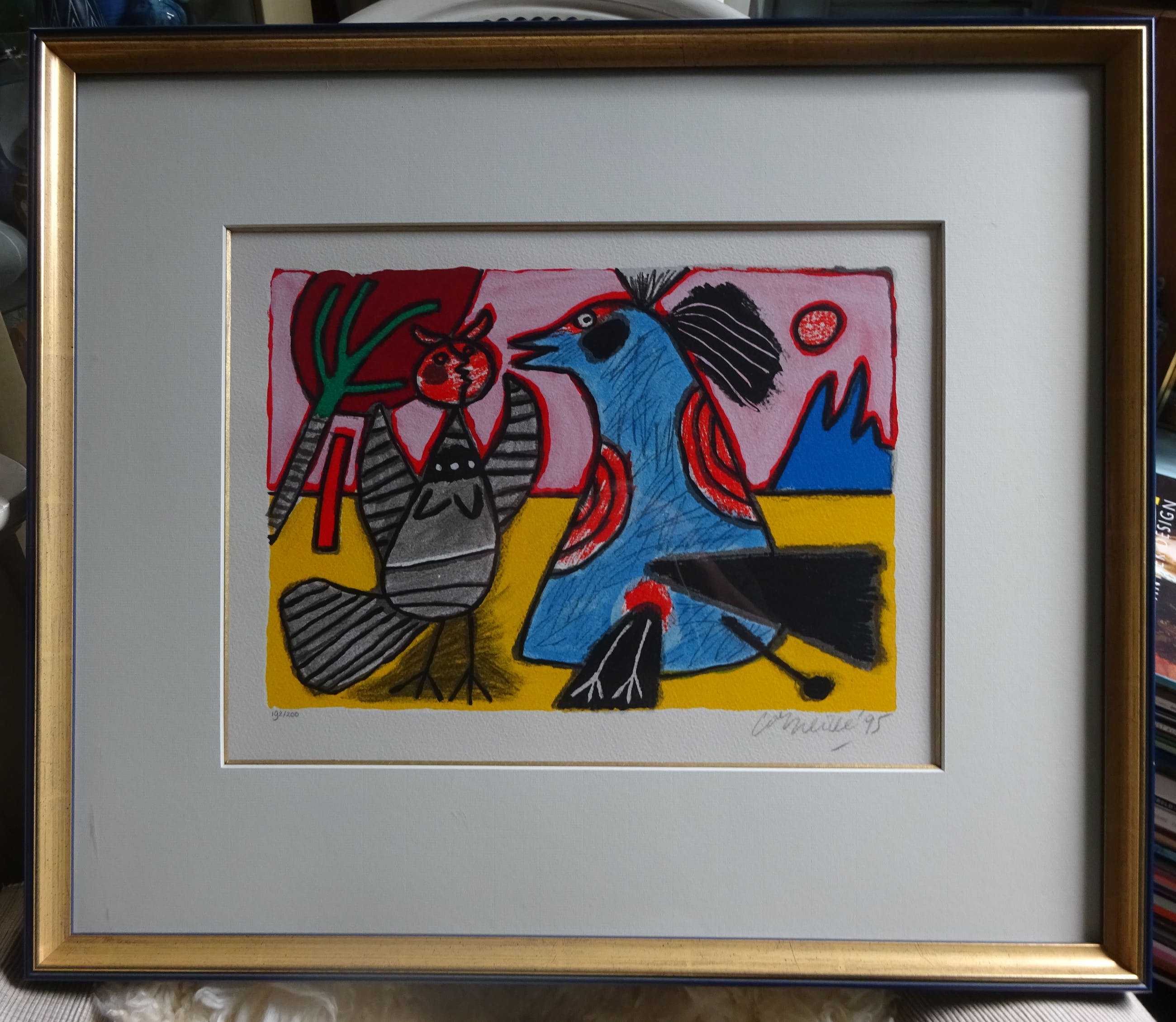 Naam: Rencontre-blauwe vogel in gesprek met grijze vogel Kunstenaar: Corneille 1922- 2010