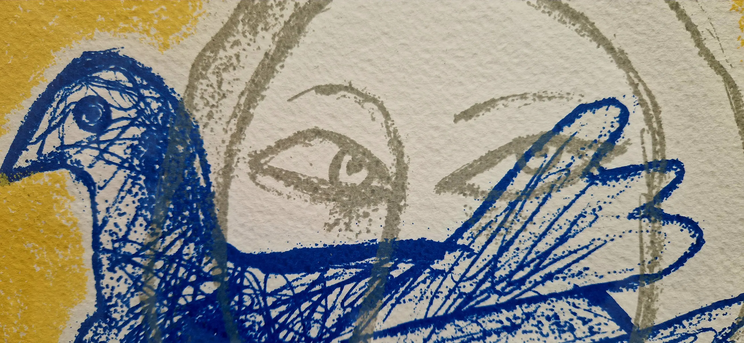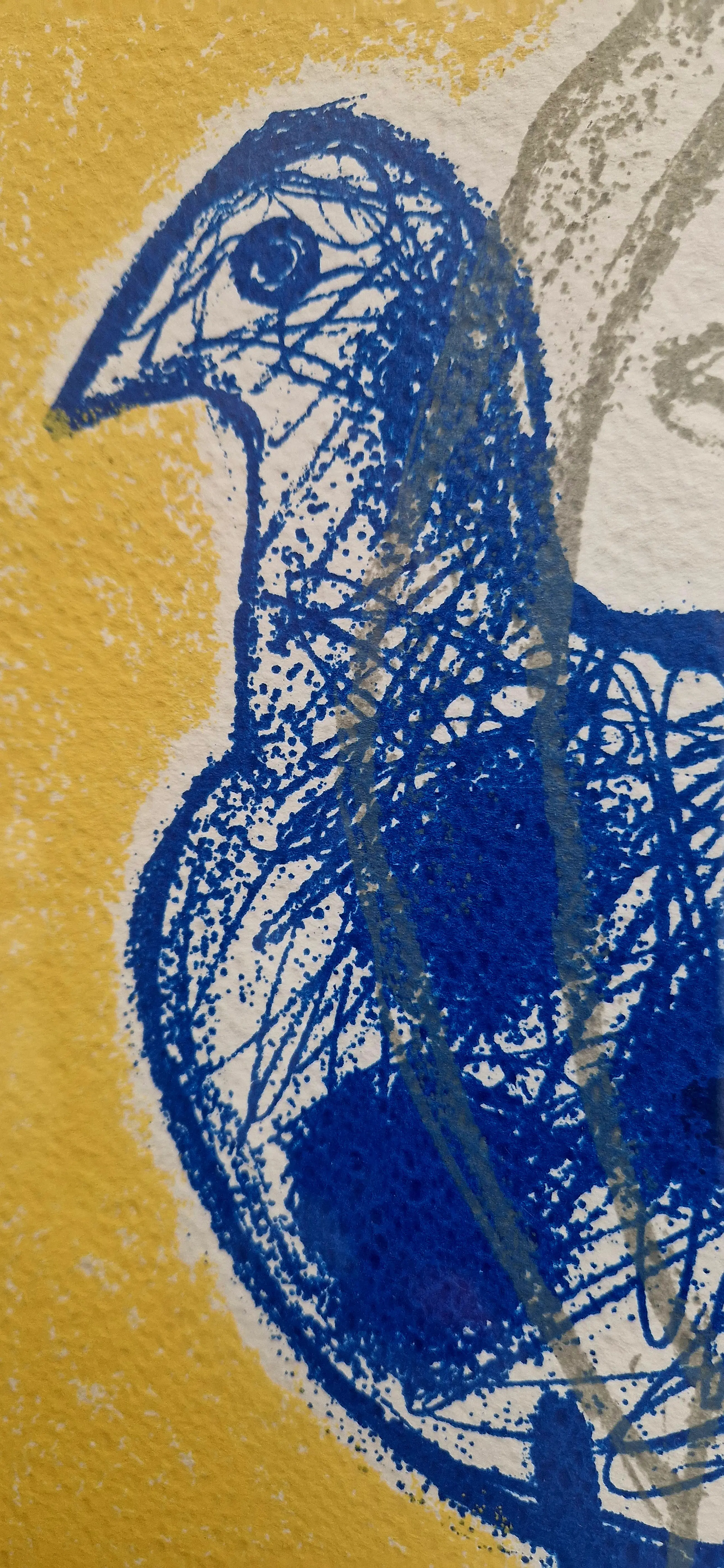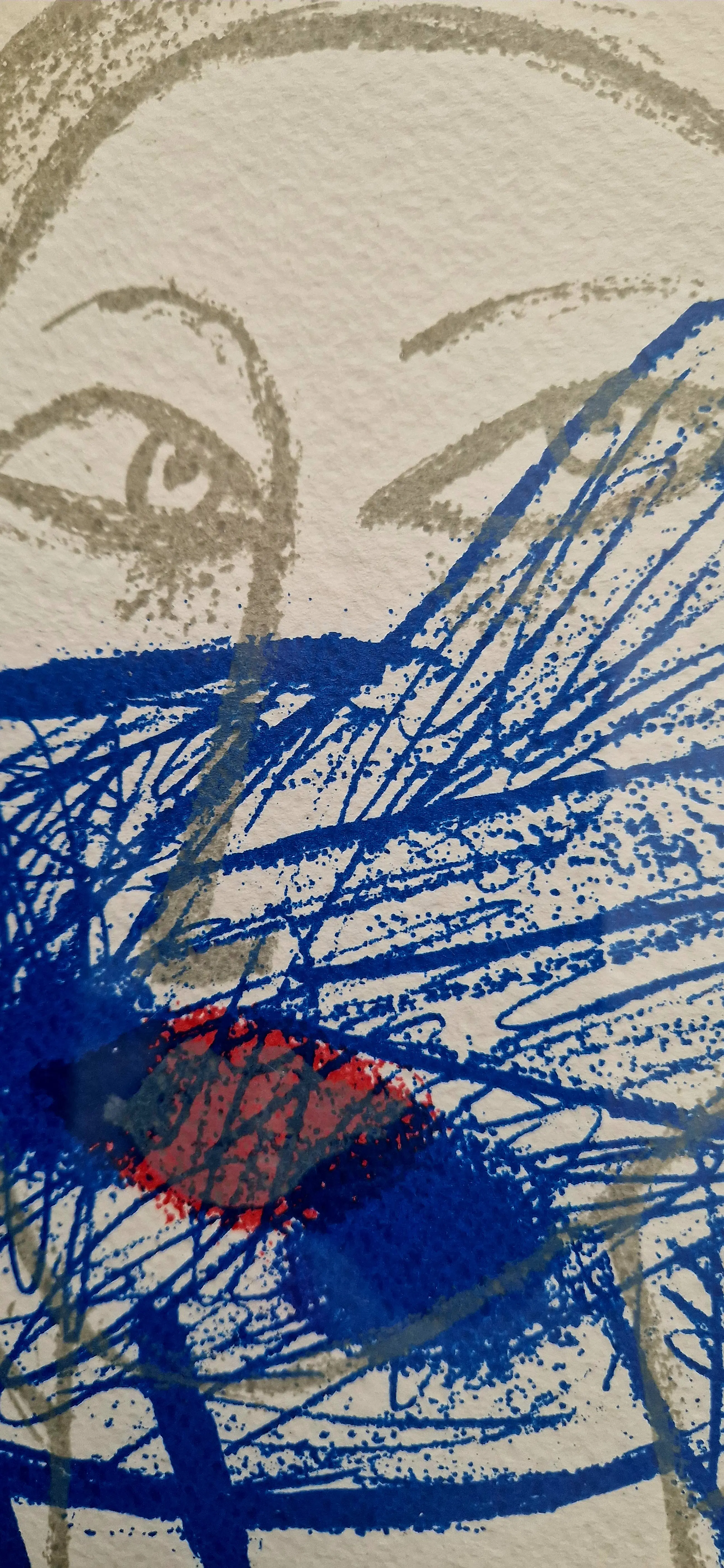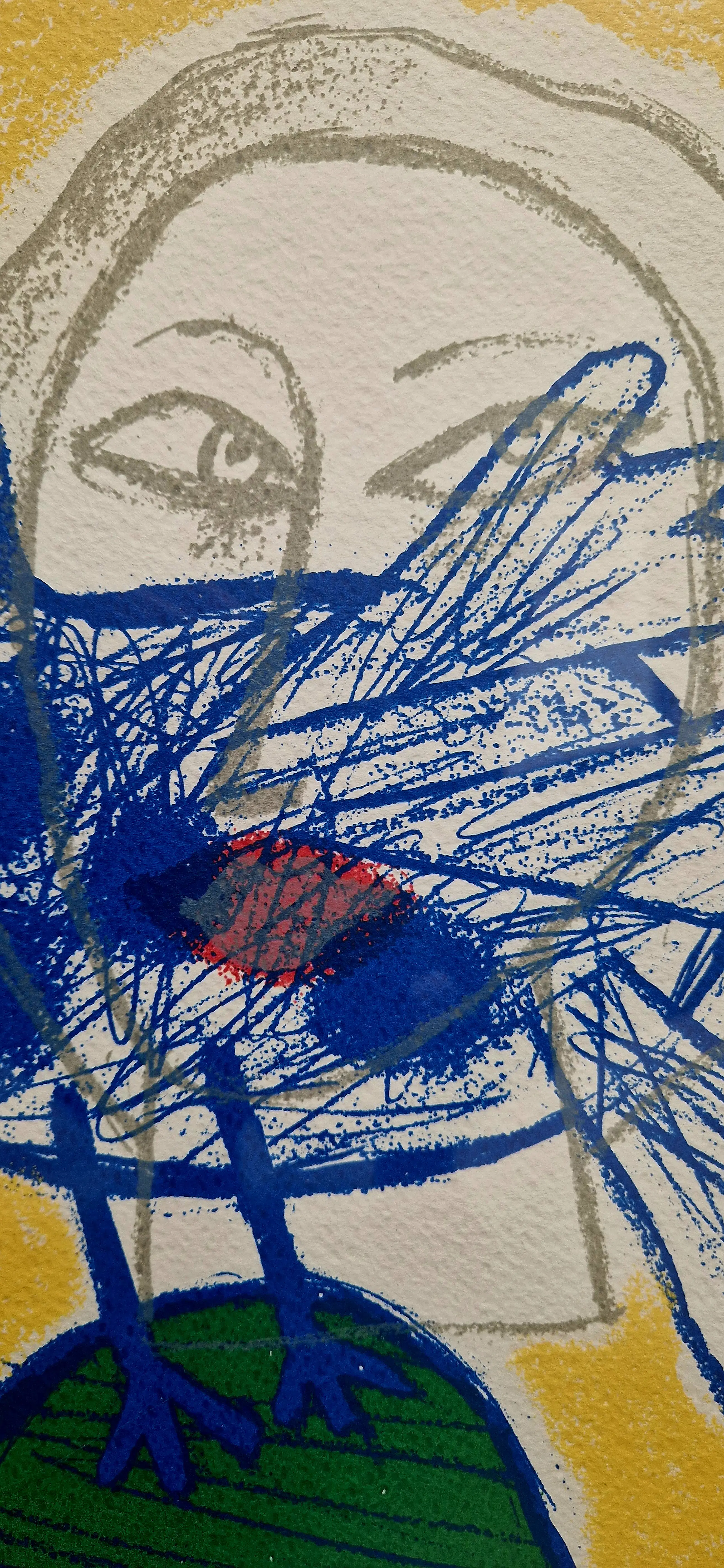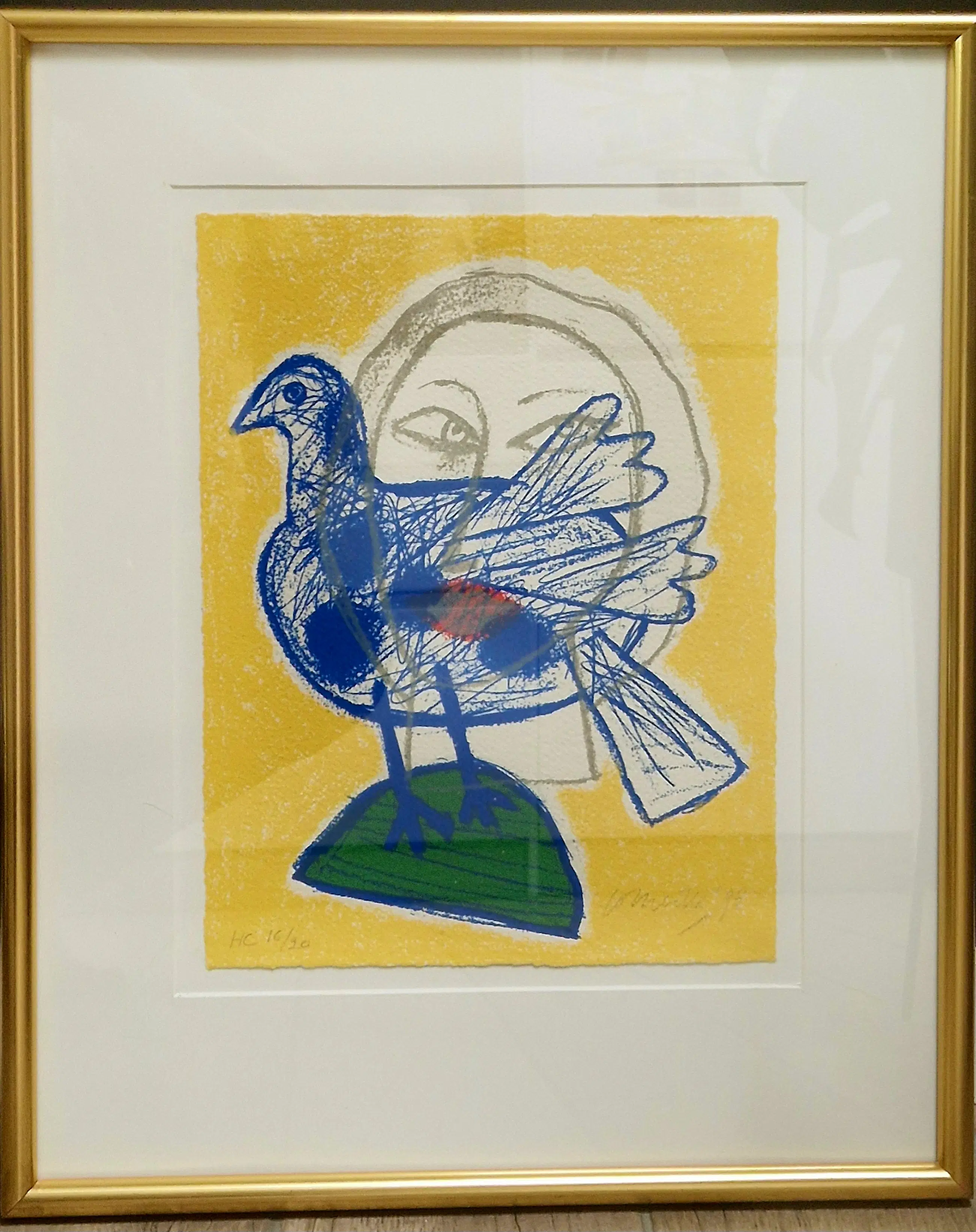 Fraaie kleurrijke lithografie van de Belgisch/Nederlandse kunstenaar Corneille uit 1998. Titel Regard sur L'oiseau of Blik op de Vogel.