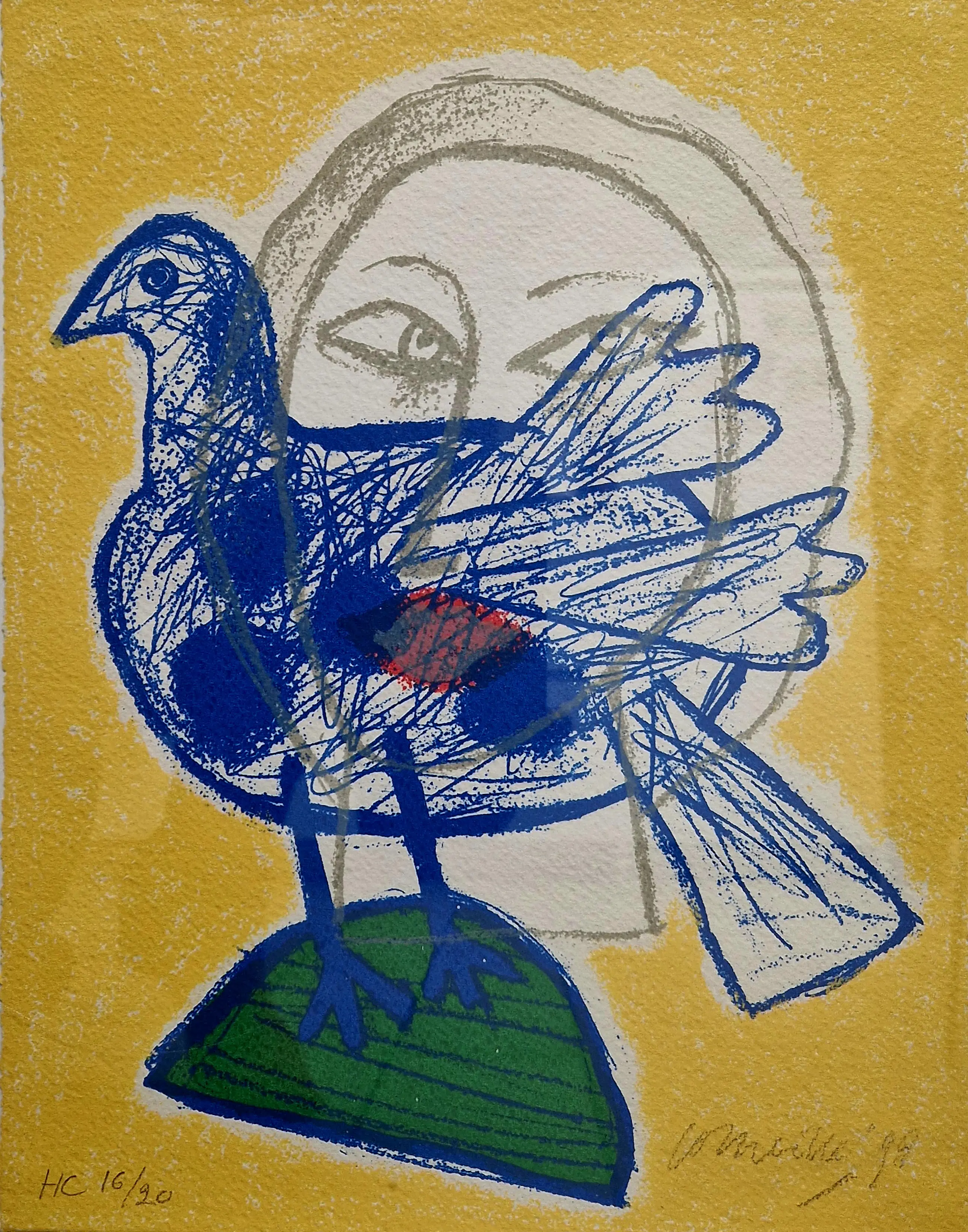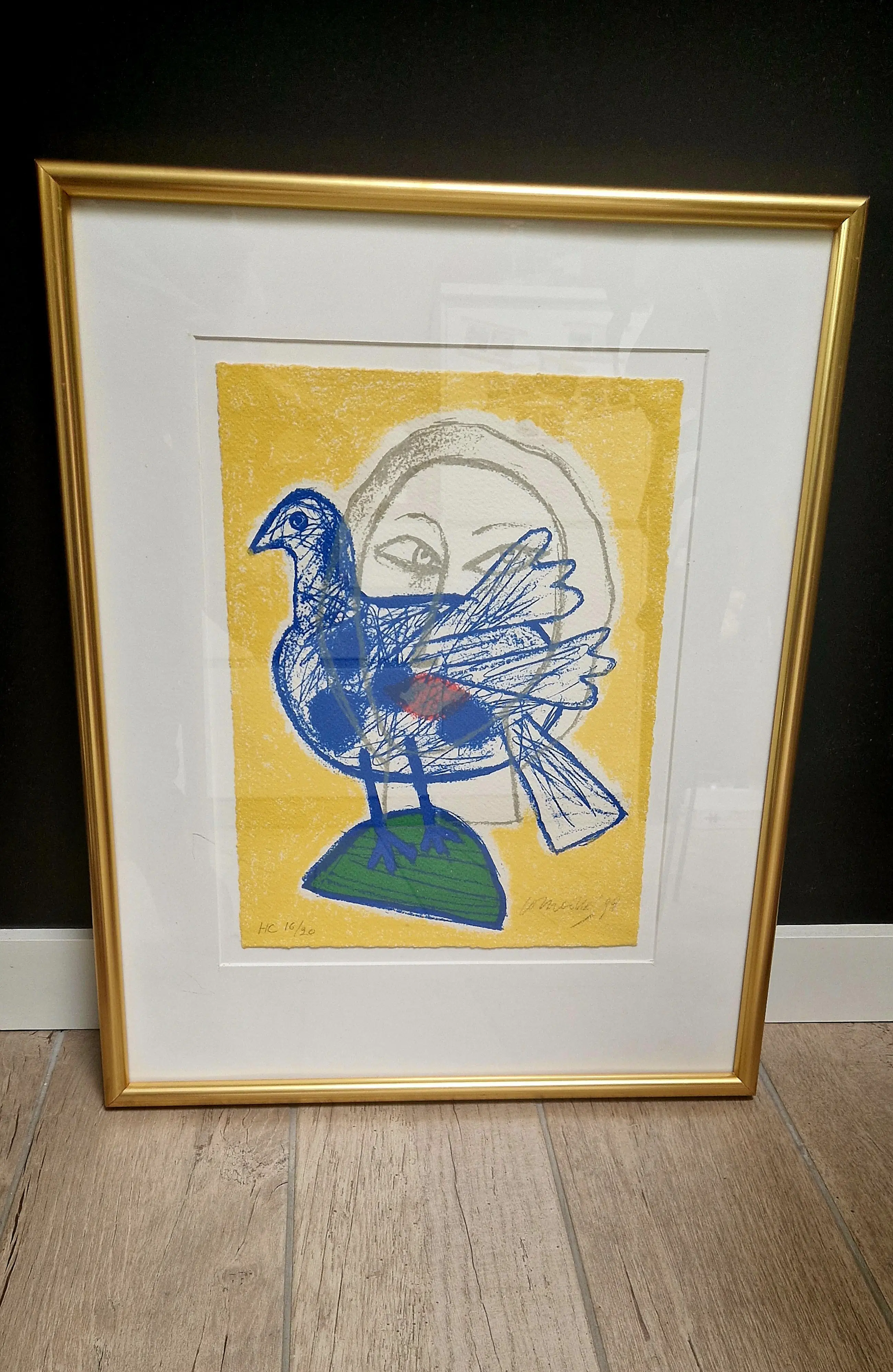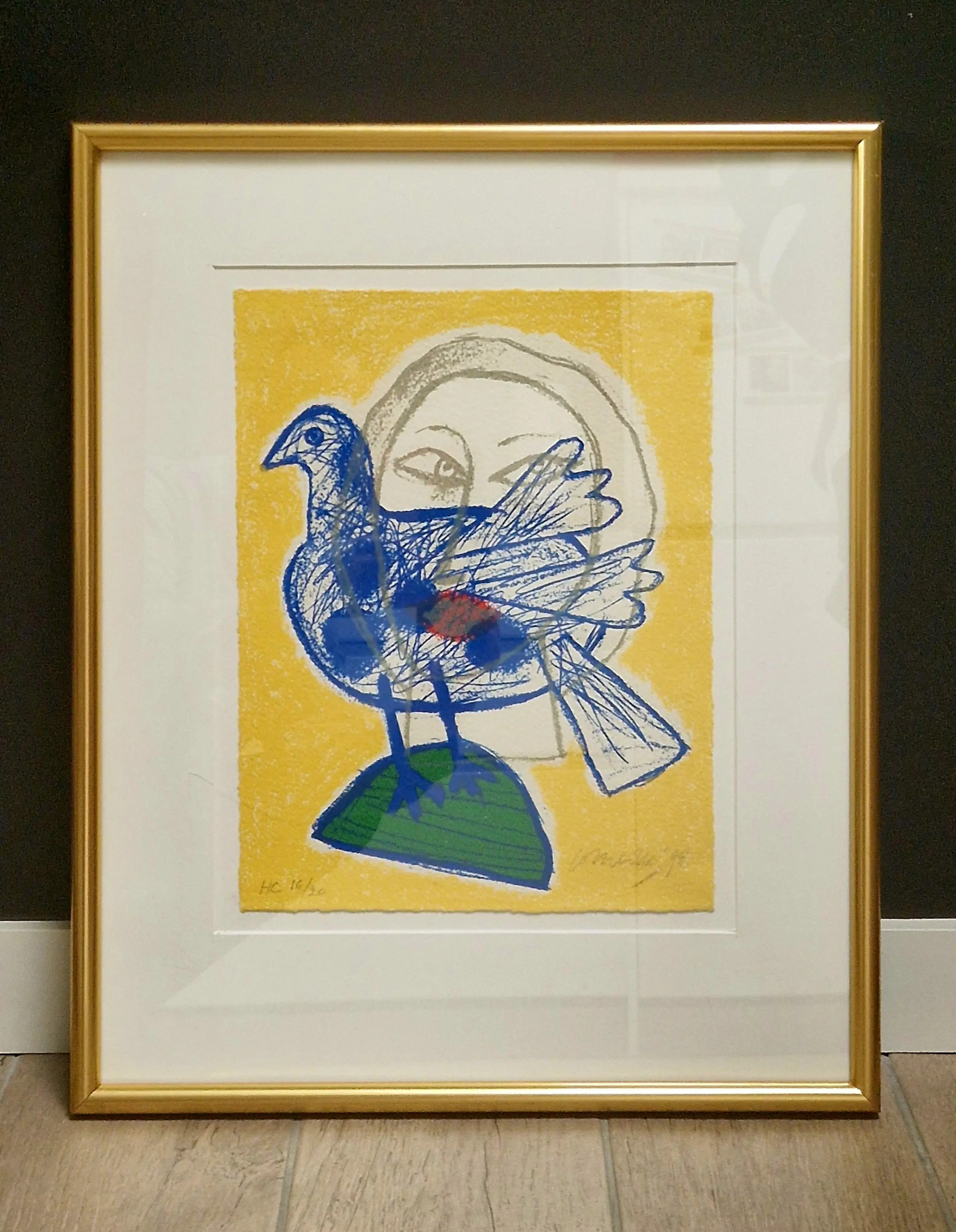 Gesigneerd, genummerd en gedateerd. In professionele lijst achter glas met passe-partout. Mooie staat. Let op: klein krasje in het glas ter hoogte van de poten van de duif.
