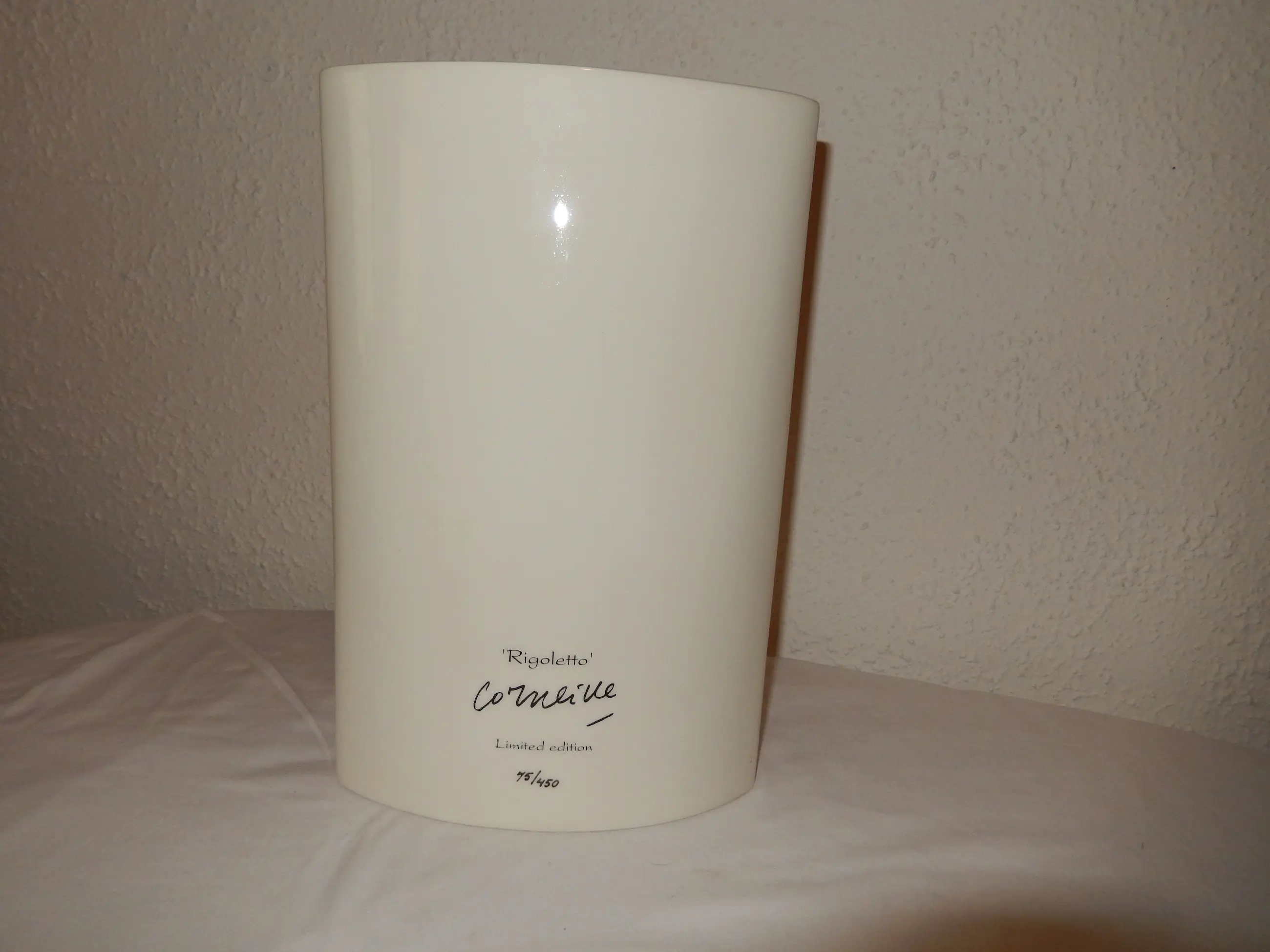 Mooie grote (beperkte oplage) vaas van Corneille, genaamd Rigoletto. In druk gesigneerd en genummerd. Dit is nummer 75 van 450. Gemaakt bij Schoonhoven Keramiek. De vaas wordt zorgvuldig verpakt, aangetekend verzonden.
