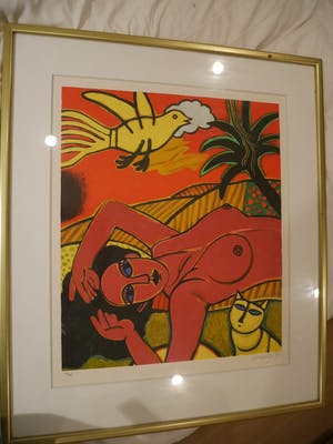 Gesigneerd door Corneille in 1994 met "63/200". Sticker achterkant: "REFLEX MODERN ART GALLERY Weteringschans 79A 1017 RX Amsterdam.
