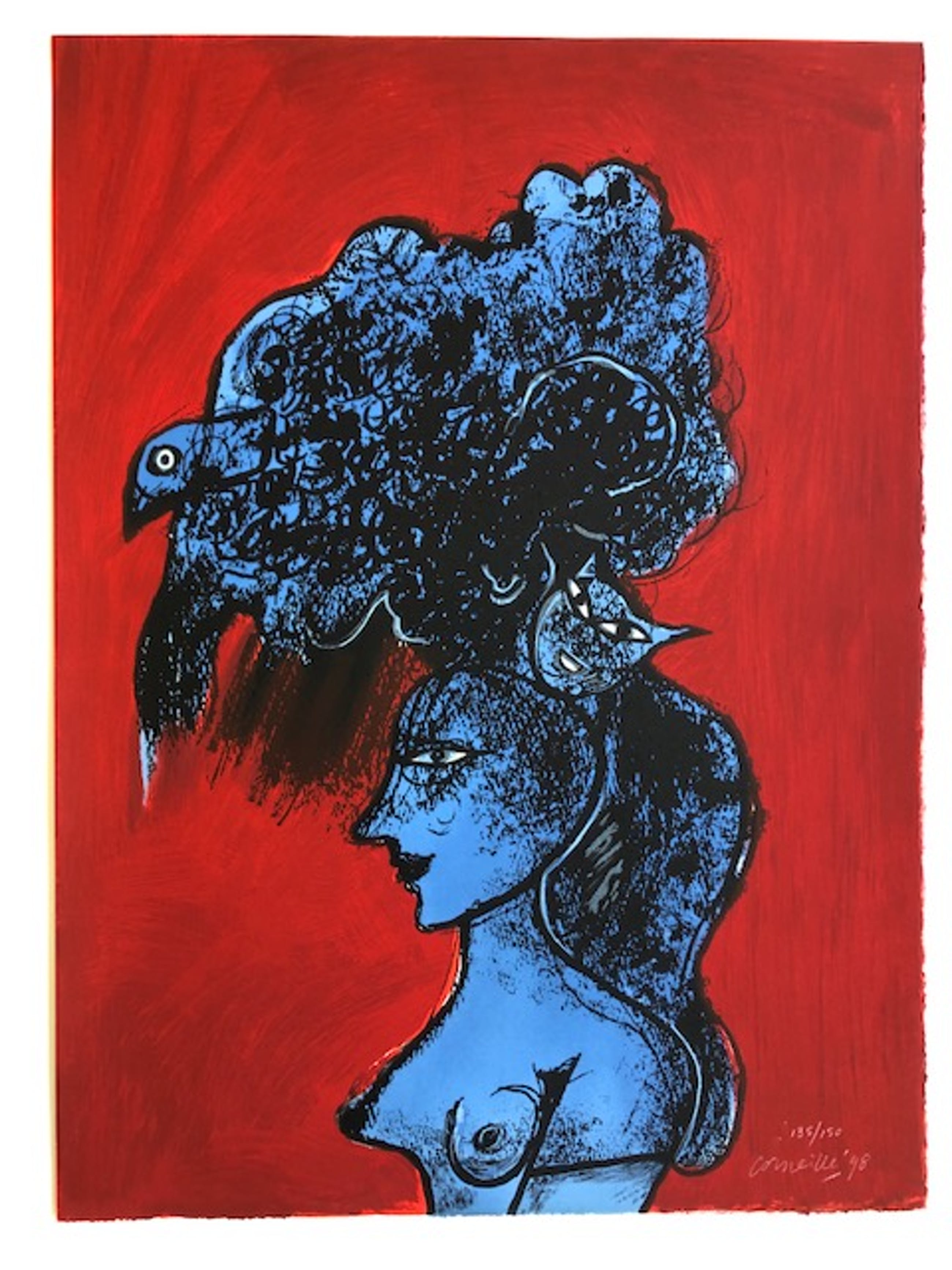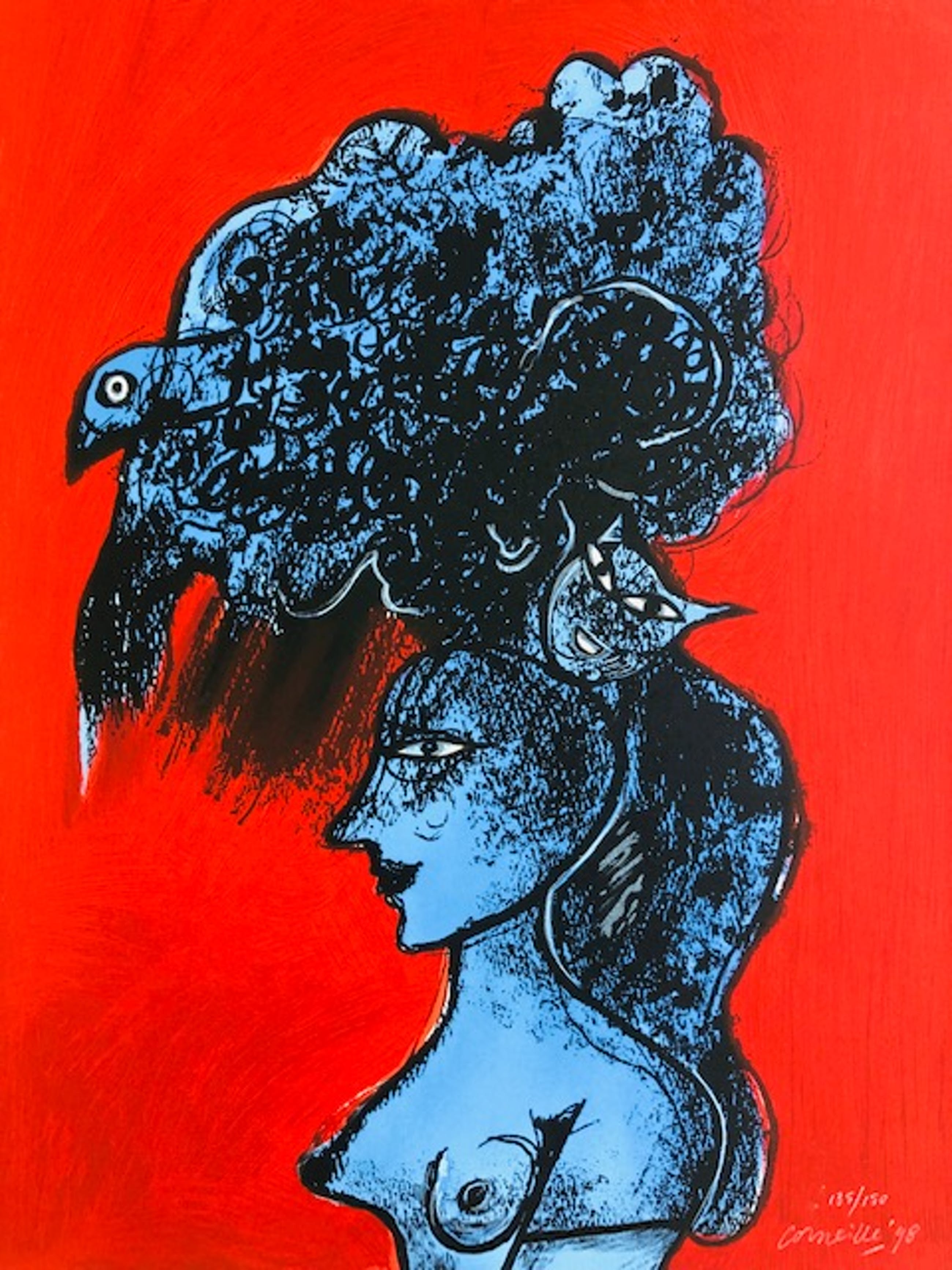 Fraai gedrukte litho in nieuwstaat van Corneille. Zeer helder kleurgebruik.