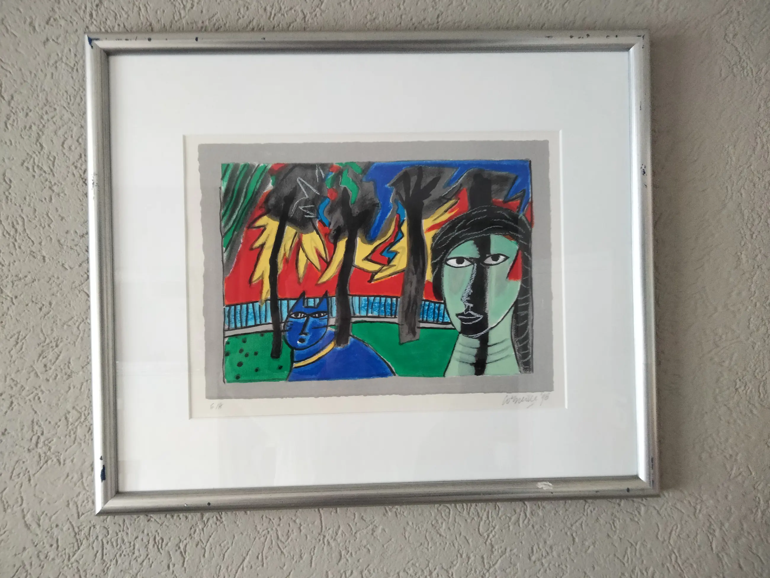 Note:De lijst is licht beschadigd zie foto,s Uiteraard potlood gesigneerd gedateerd en genummerd door corneille Gezien de kwetsbaarheid is het werk niet op te sturen afhalen kan in Eindhoven . Een eventuele bezorging is bespreekbaar [kosten koper] [0,30/km]